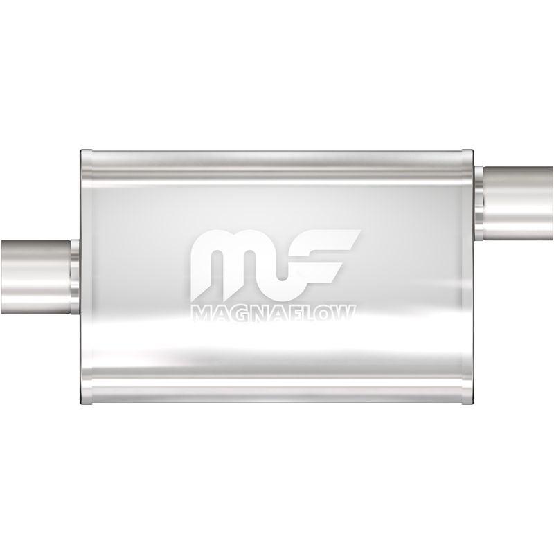SIGNATURE MAGNAFLOW SOUND – Engineered to deliver the deep, resonating sound that MagnaFlow mufflers are famous for. DYNO-PROVEN PERFORMANCE – Extensive dyno testing is used to ensure that this performance muffler increases engine power and performance by improving the flow dynamics and evacuation of exhaust gases. OPTIMAL ARCHITECTURE & CONSTRUCTION – The internal architecture of this muffler features a straight-through perforated core with two-stage acoustic packing which maintains the velocity of exhaust flow while generating a smooth, deep exhaust tone. Proudly . UNIVERSAL FITMENT – Universal design enables custom muffler placement and orientation to meet the particular spacing and mechanical requirements of your vehicle. Professional installation is highly recommended. LIMITED LIFETIME CONSTRUCTION WARRANTY – Performance that lasts. Enjoy worry-free ownership knowing that youre backed by MagnaFlows limited lifetime construction warranty.