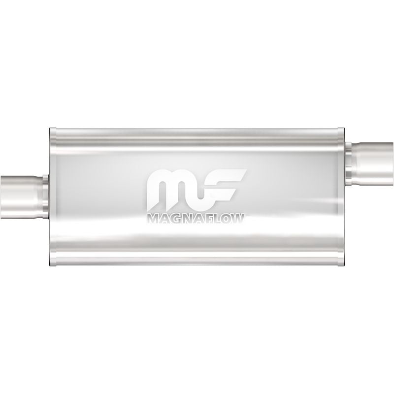 MagnaFlow Oval Stainless Steel Muffler Additional Features Finish:Satin Inlet Diameter:3.000 in. Muffler Type:Straight-Through Outlet Diameter:3.000 in.