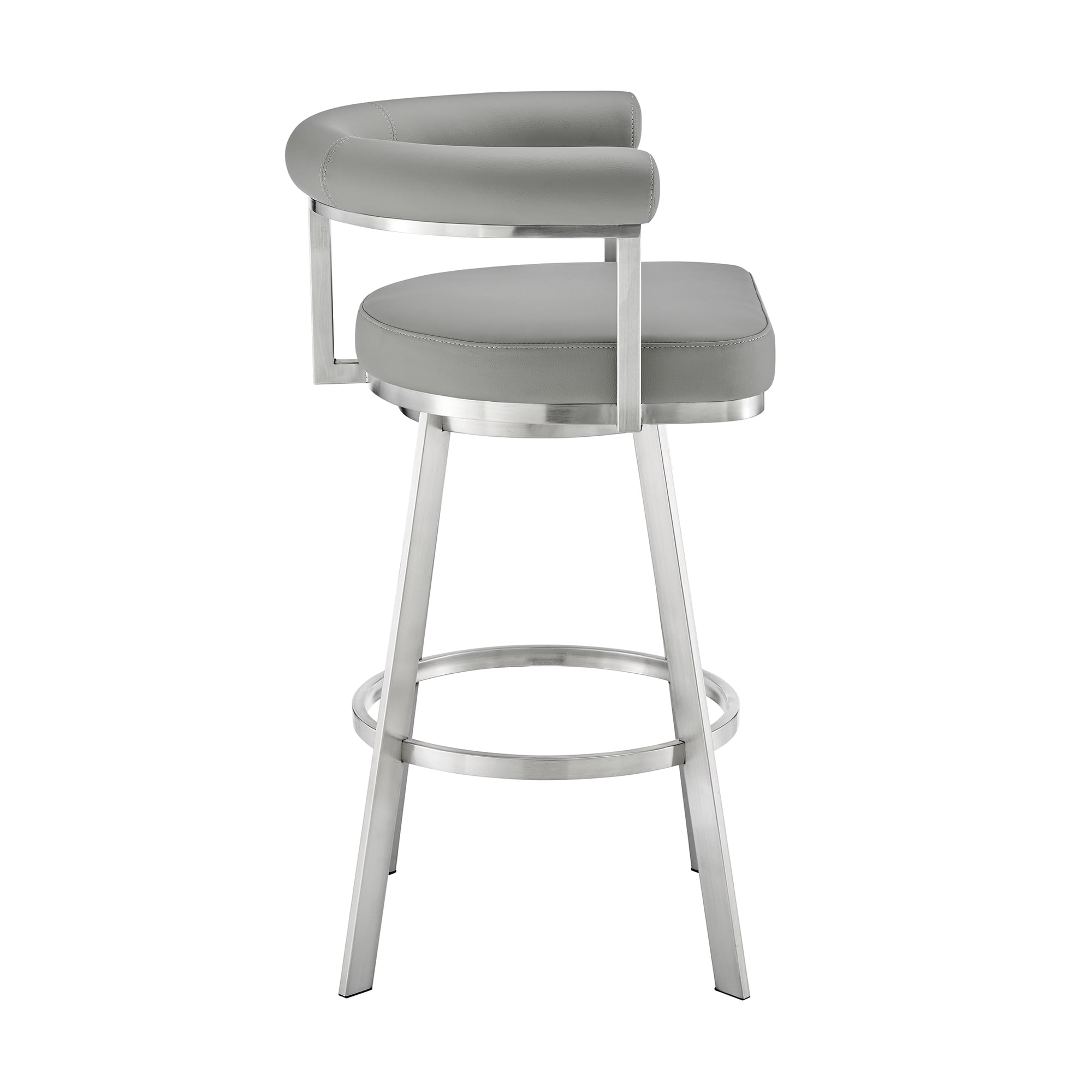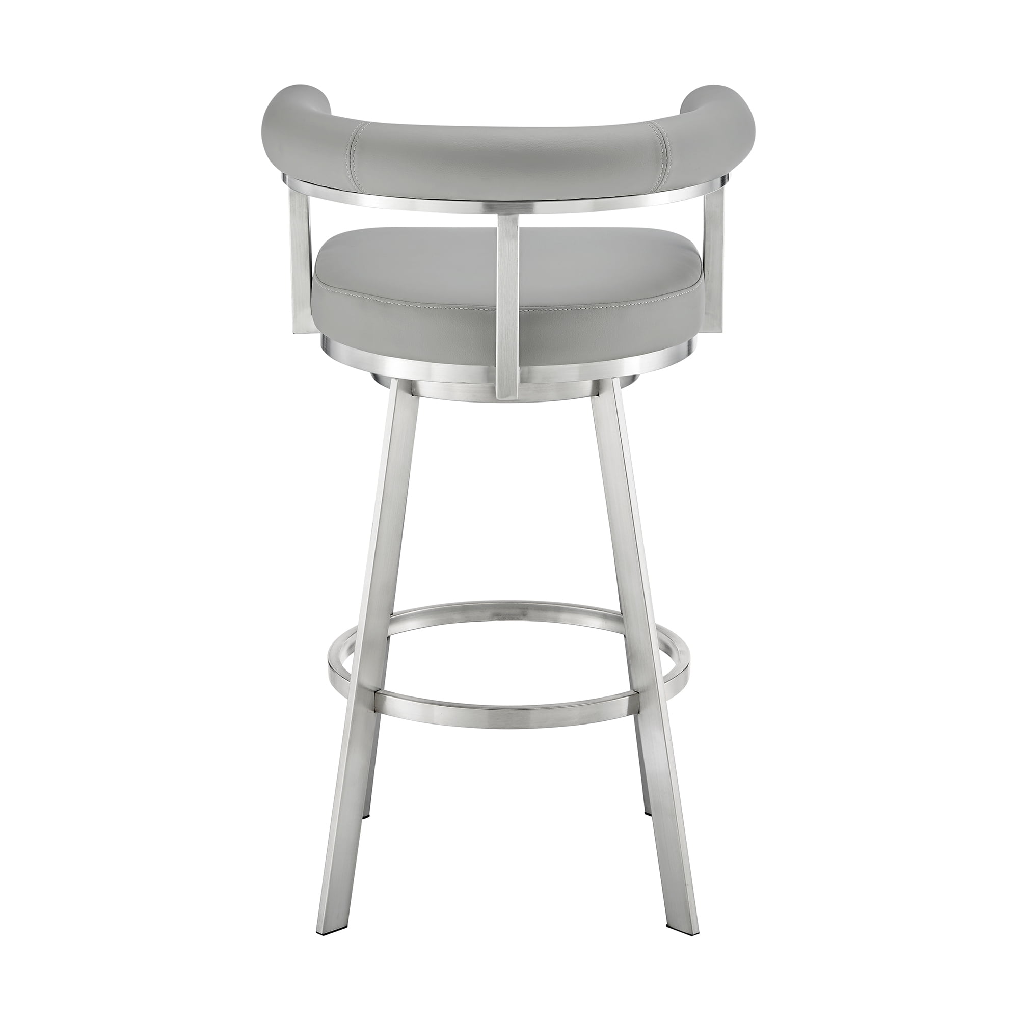 Magnolia 26″ Swivel Counter Stool in Brushed Stainless Steel with Light Gray Faux Leather
