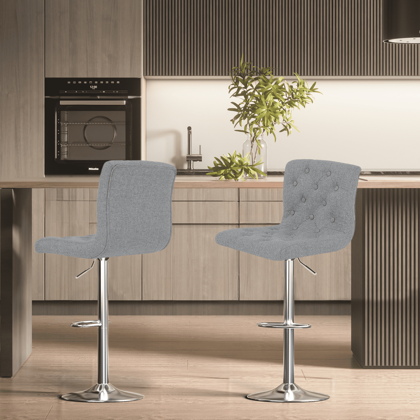 Magshion Bar Stools Set of 2 Adjustable Counter Height Bar Stools with Back and Button Decor, Swivel Kitchen Counter Island Bar Stools, Grey