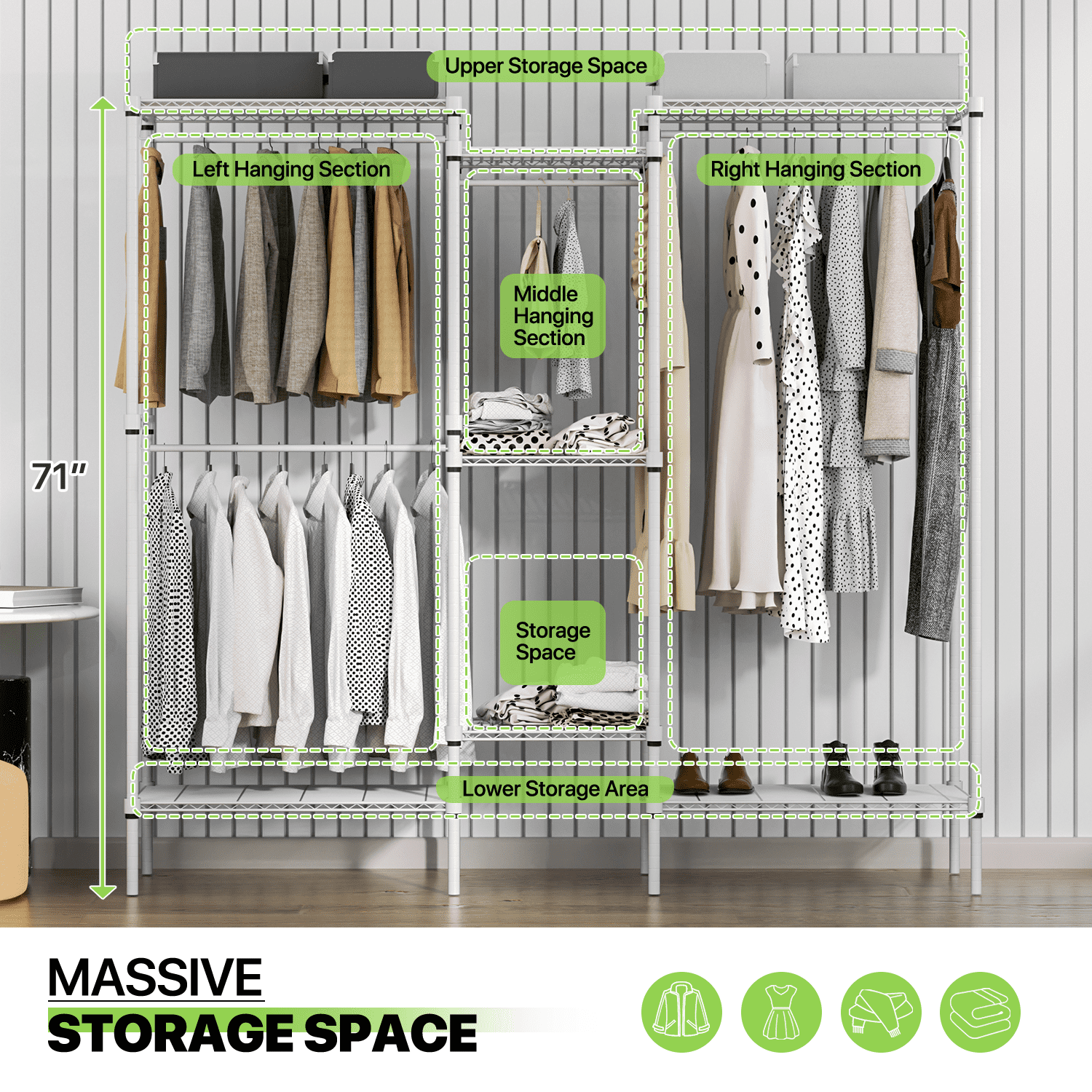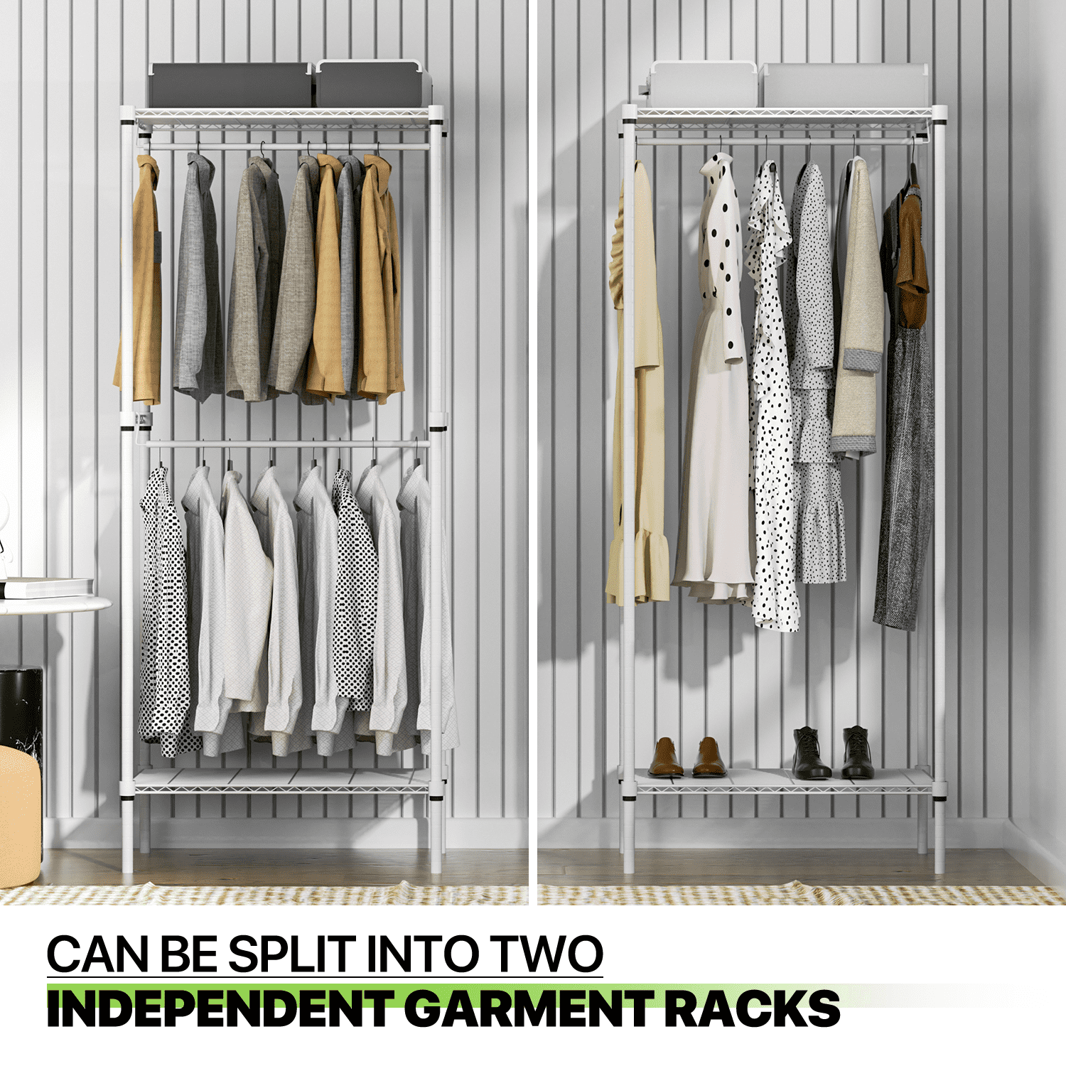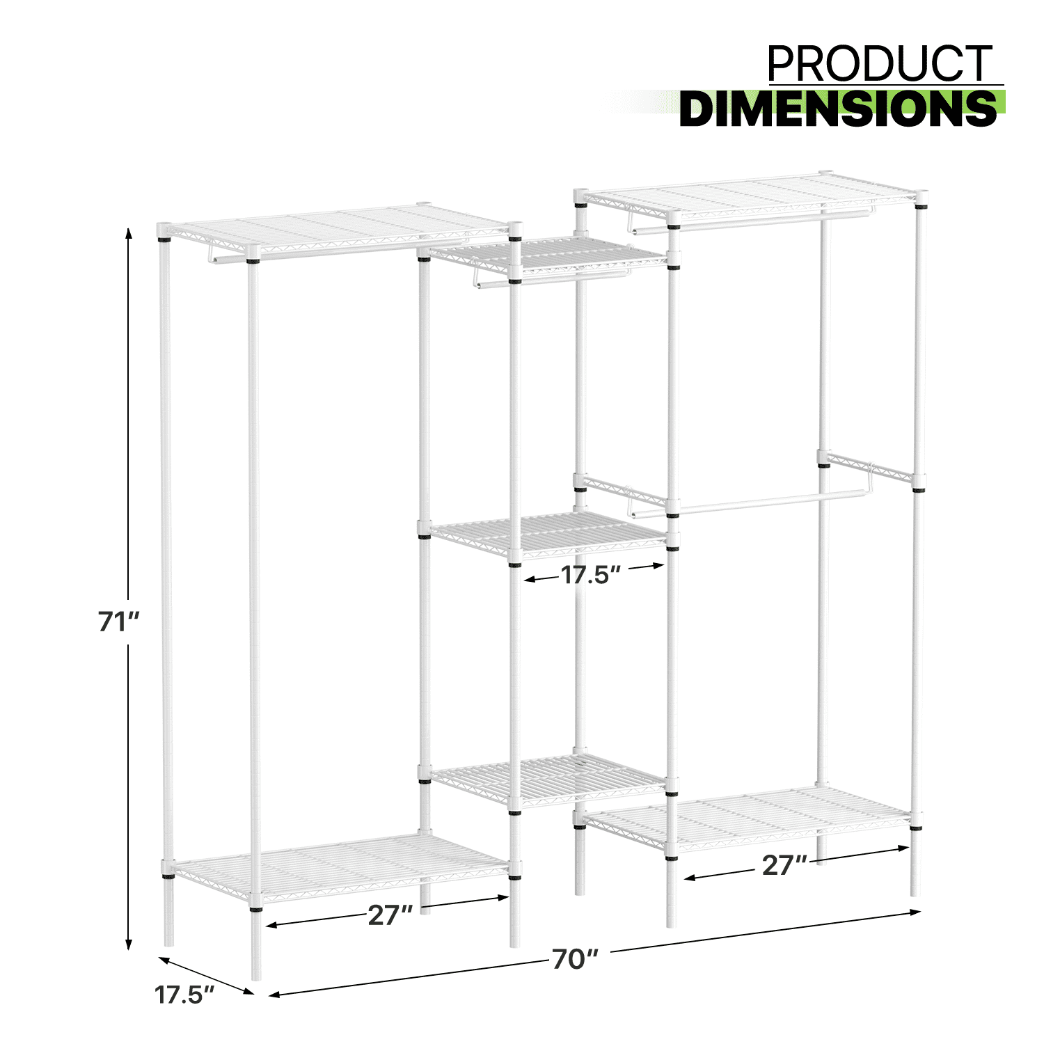 Magshion Heavy Duty Closet Garment Rack, Adjustable Carbon Steel Freestanding Expandable Clothing Storage with 4 Hanger Rods, Large Capacity Wardrobe, 70″Lx17.5″Wx71″H, White