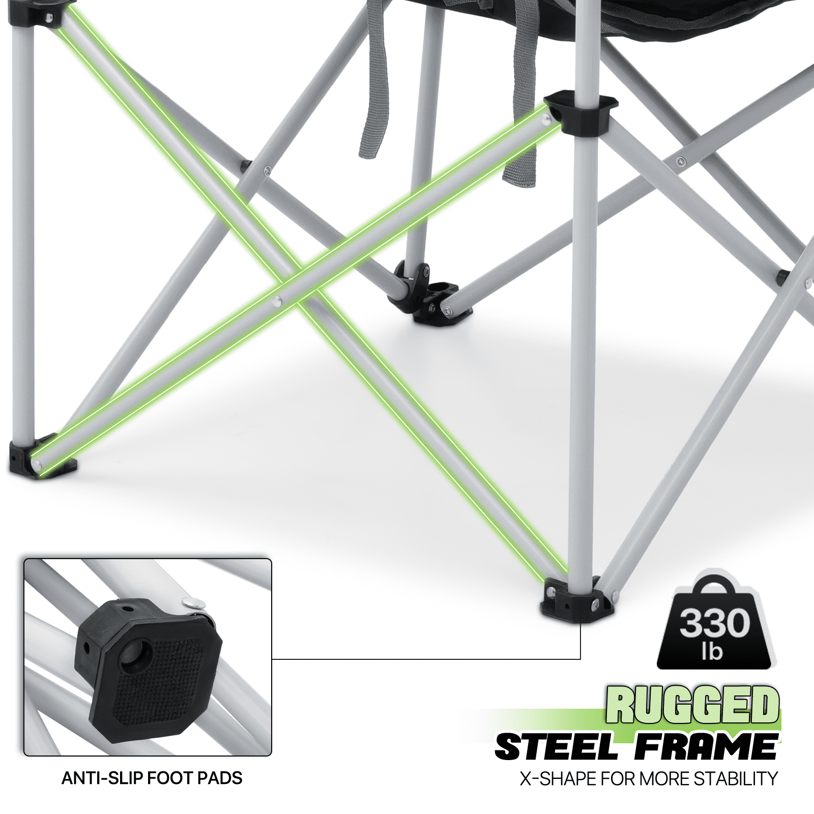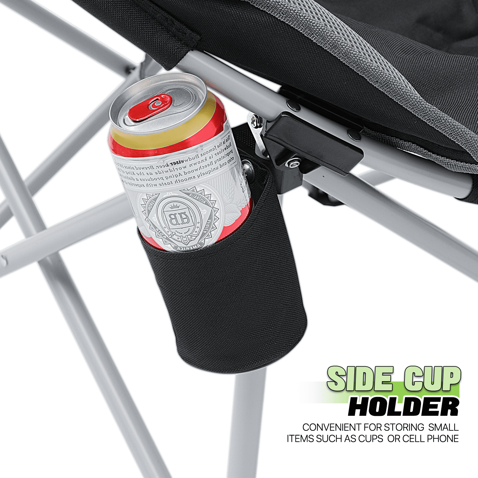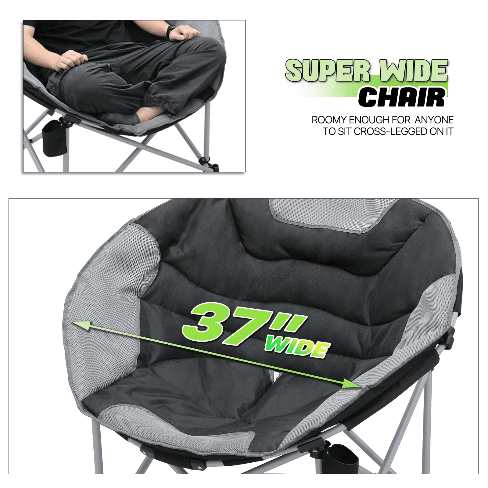 Magshion Padded Camping Chair, Oversized Camping Chair with Cup Holder and Carry Bag, Outdoor Folding Chair Moon Round Chair for Camping Hiking Fishing Picnic, Black/Grey