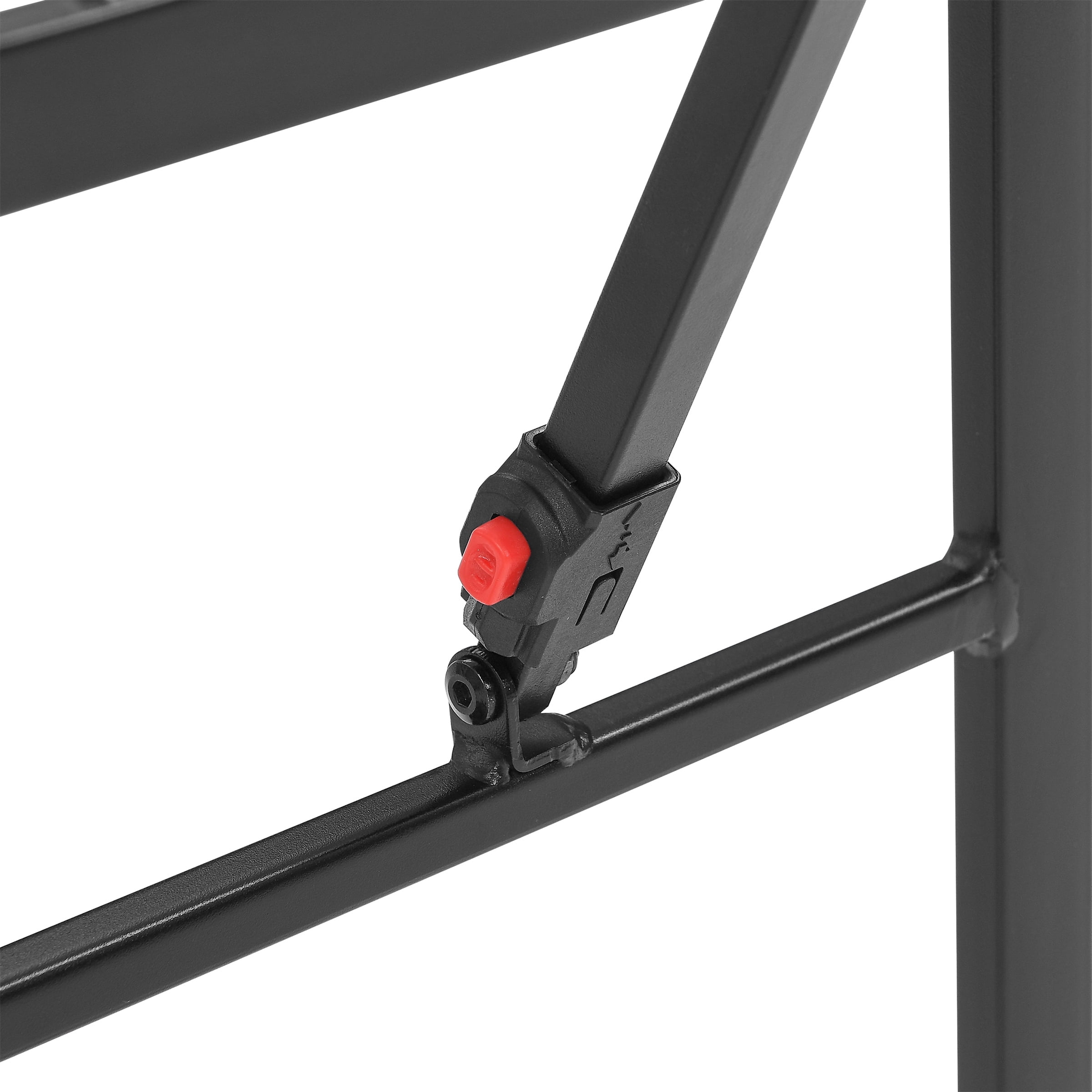 Introducing our Mainstays 14” Quad folding bed frame that is constructed of powder-costed heavy-duty steel that creates a strong and solid platform bed frame allowing you to place your mattress directly onto the frame without a box spring. Sets up in minutes with no tools needed, this bed frame is 14” high creating plenty of storage space and features built in solid leg caps that will protect your floors from damage. With a Quad fold design, this bed frame allows for easy storage when not in use but still a sturdy and comfortable platform bed that will provide you with a good night’s sleep. Ideal for use in a guest, child, or teen bedroom, or in your master bedroom.