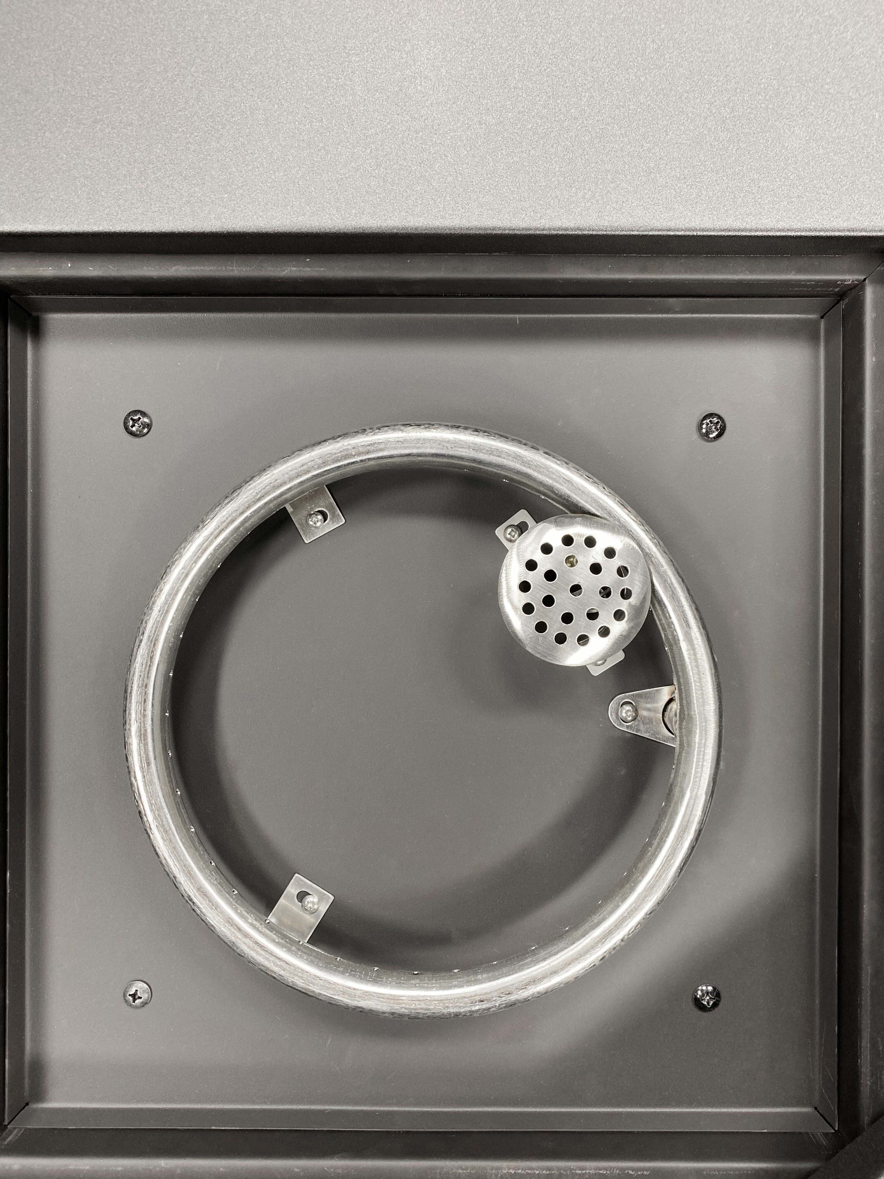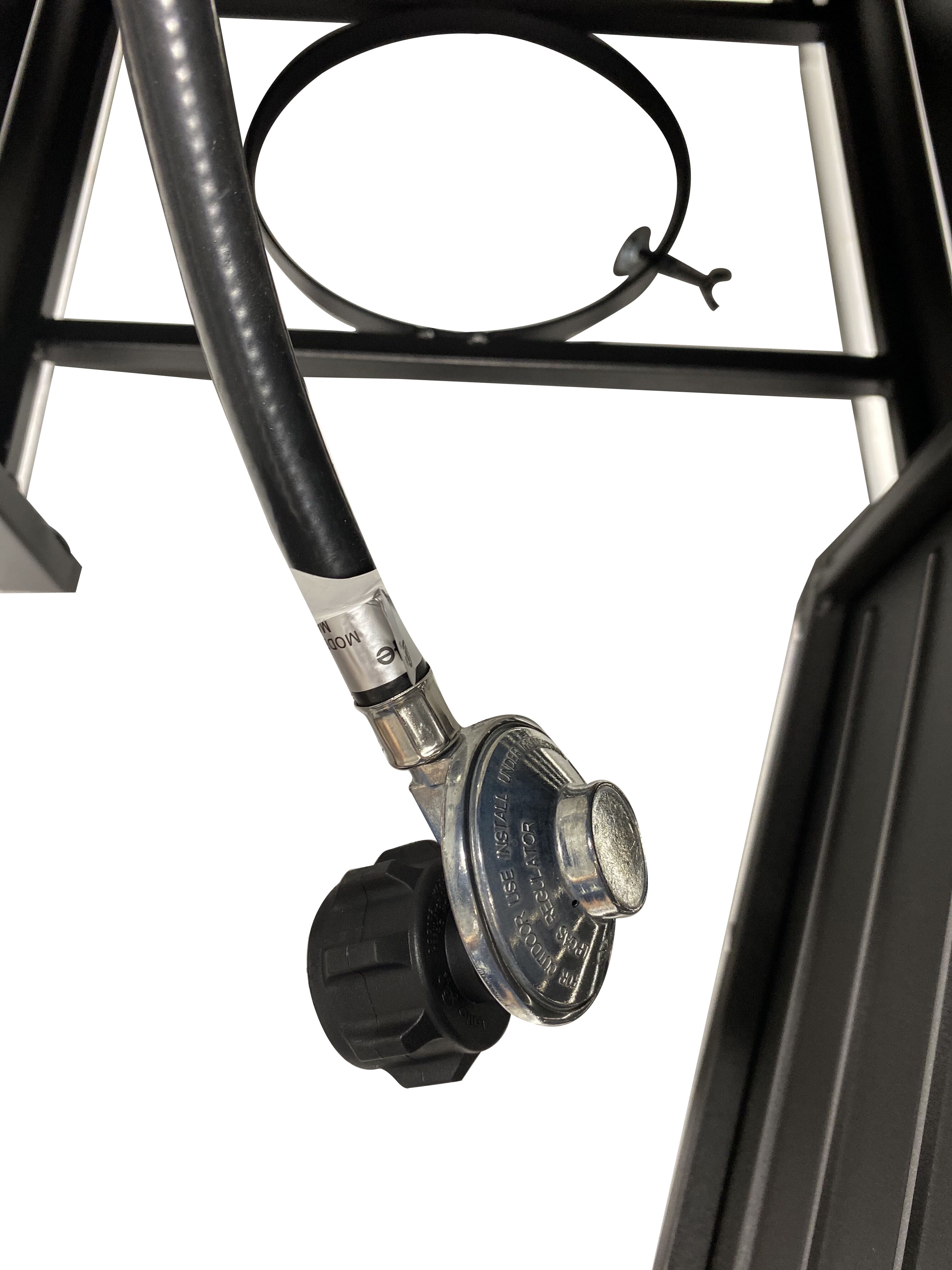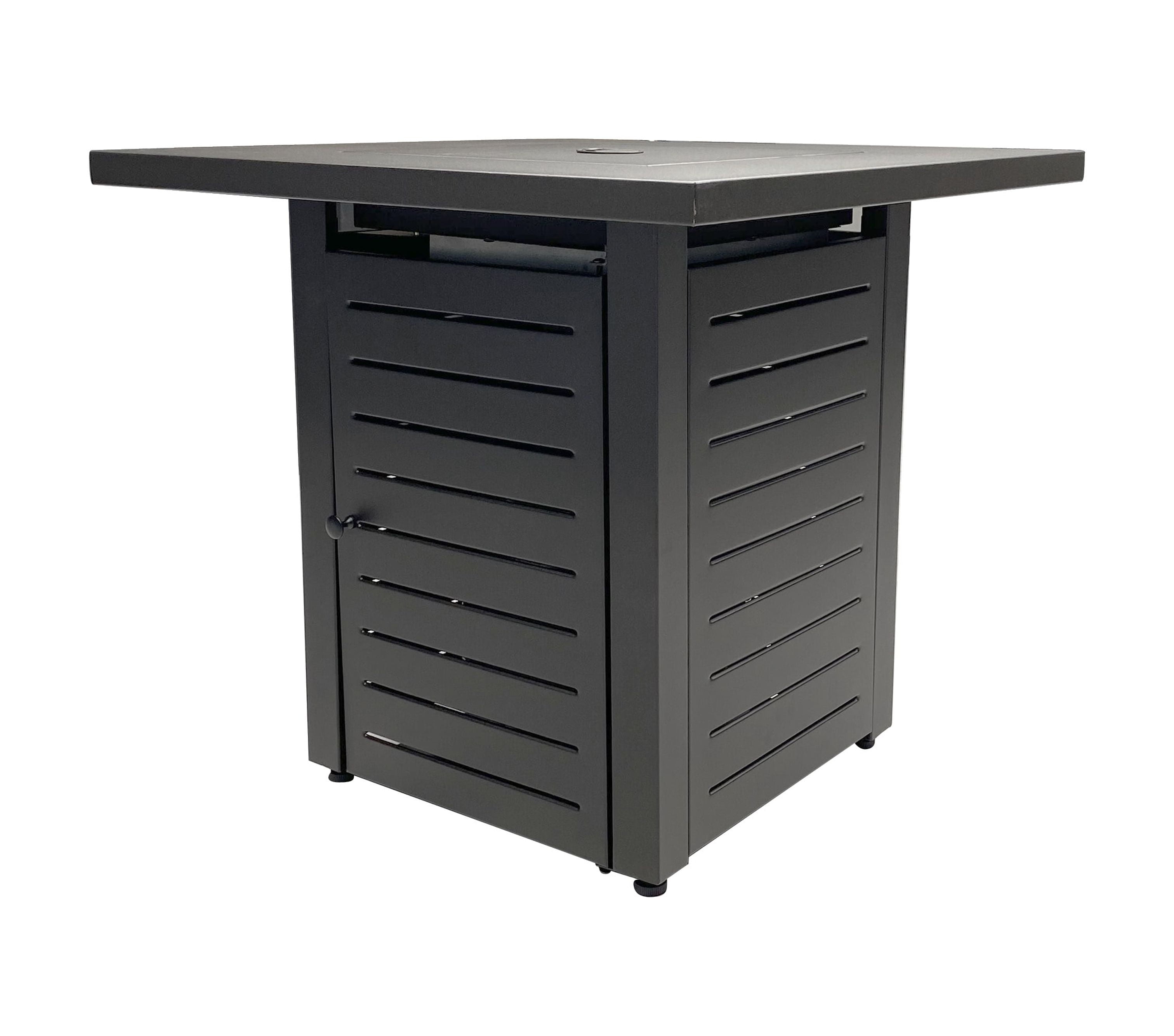 Heat output of 50,000 BTUs with adjustable flame. Durable steel construction with black finish Cabinet base holds full size propane tank (propane sold separately). Electronic ignition system for easy start Includes cover, lava rocks and lid that also functions as tabletop Thermocouple safety feature shuts off gas flow if the flame goes out to avoid gas leaks