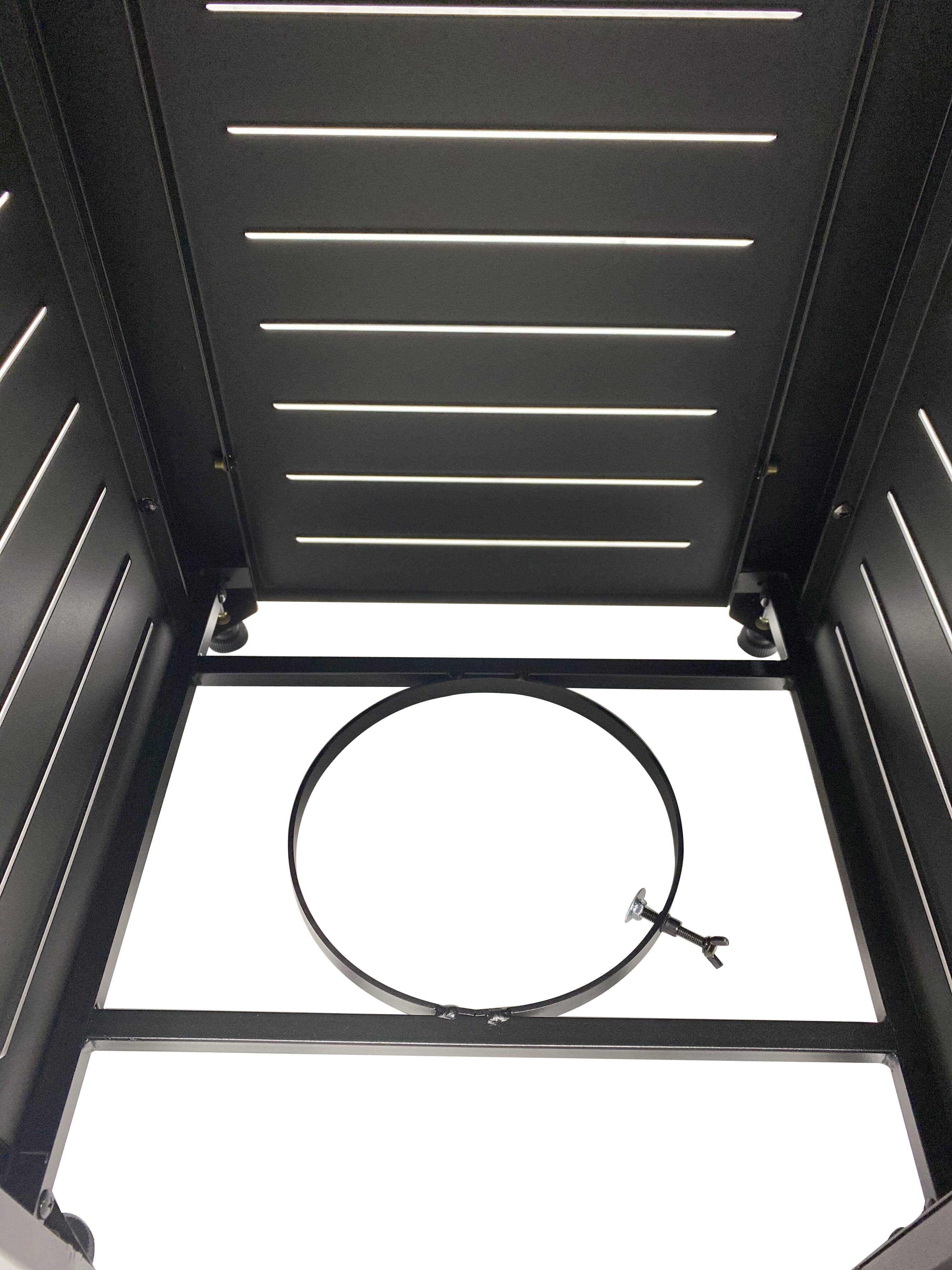 The Mainstays 28″ square propane fire pit will create a warm an inviting environment for those chilly nights. The heater controls allow the fire pit to burn at up to 50,000 BTUs. The fire pit is crafted in a sturdy, durable steel and finished in a powder-coated black finished that will provide a long life in all types of weather. Included with the fire pit is a protective lid and outdoor cover to protect the fire pit when not in use. The fire pit includes the cabinet, gas hook up assembly and decorative heat retaining rocks. The fire pit is fueled by a standard 20 pound propane tank (not included). The adjustable feet will create a level burning surface on uneven terrains. Easy assembly with the included instructions and assembly tool.