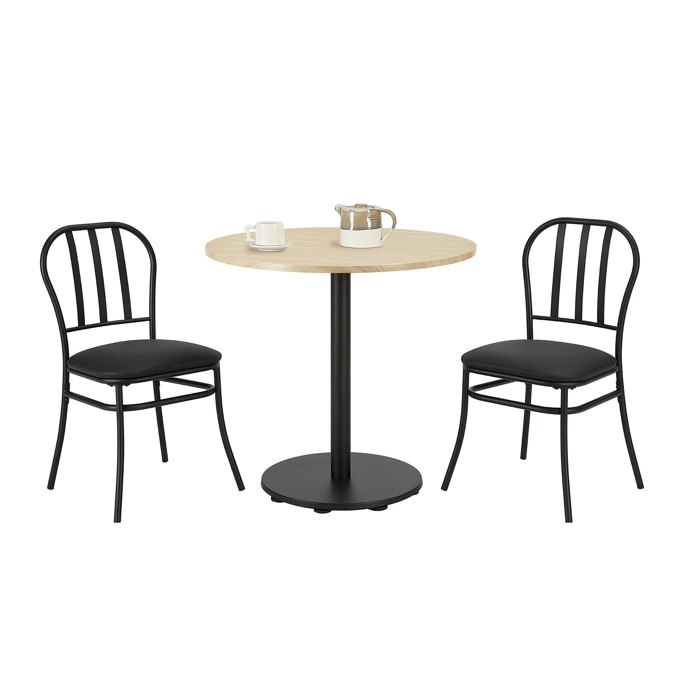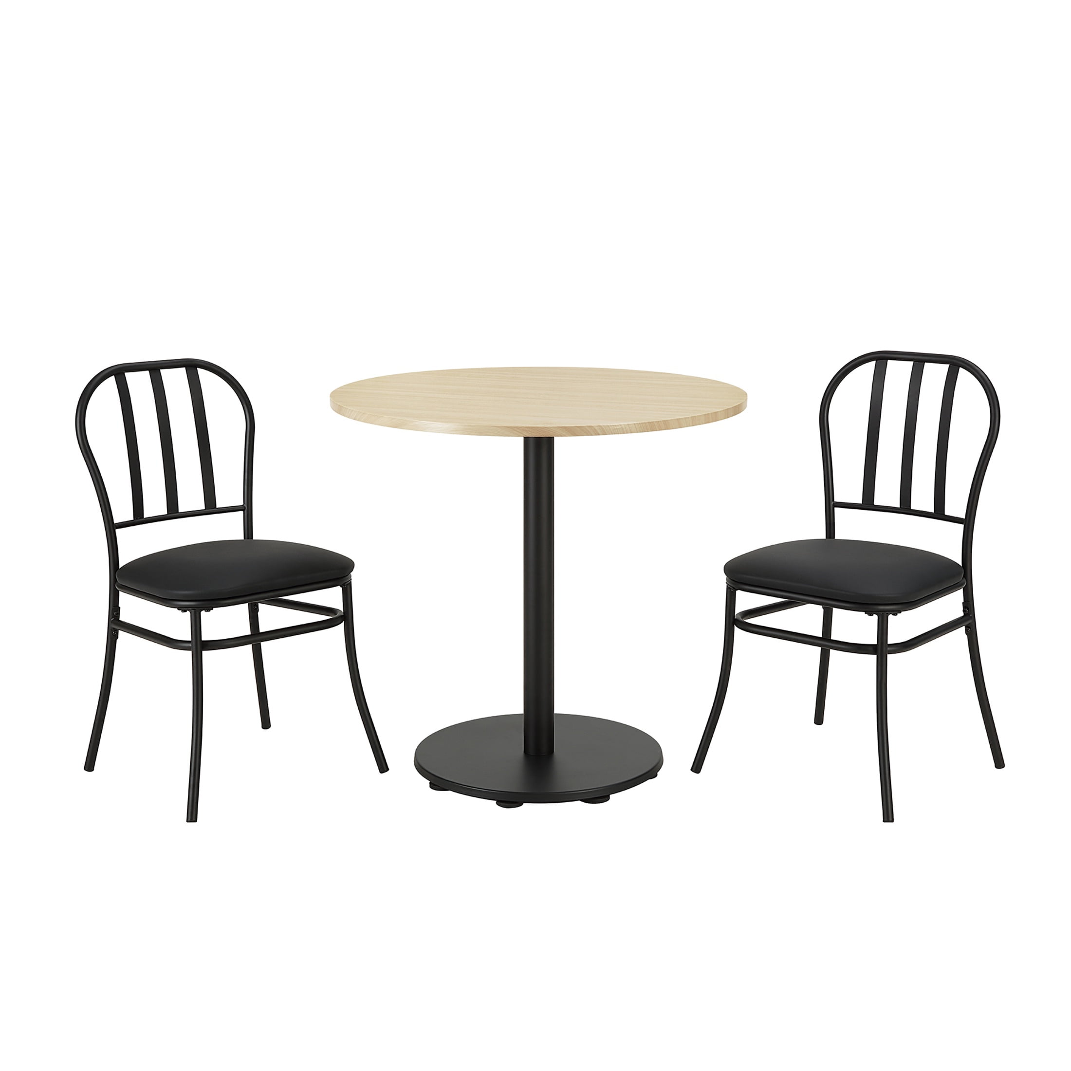 Mainstays 3-Piece Indoor Dining Bistro Set, Wood Table Top, Two Black Seat Chairs