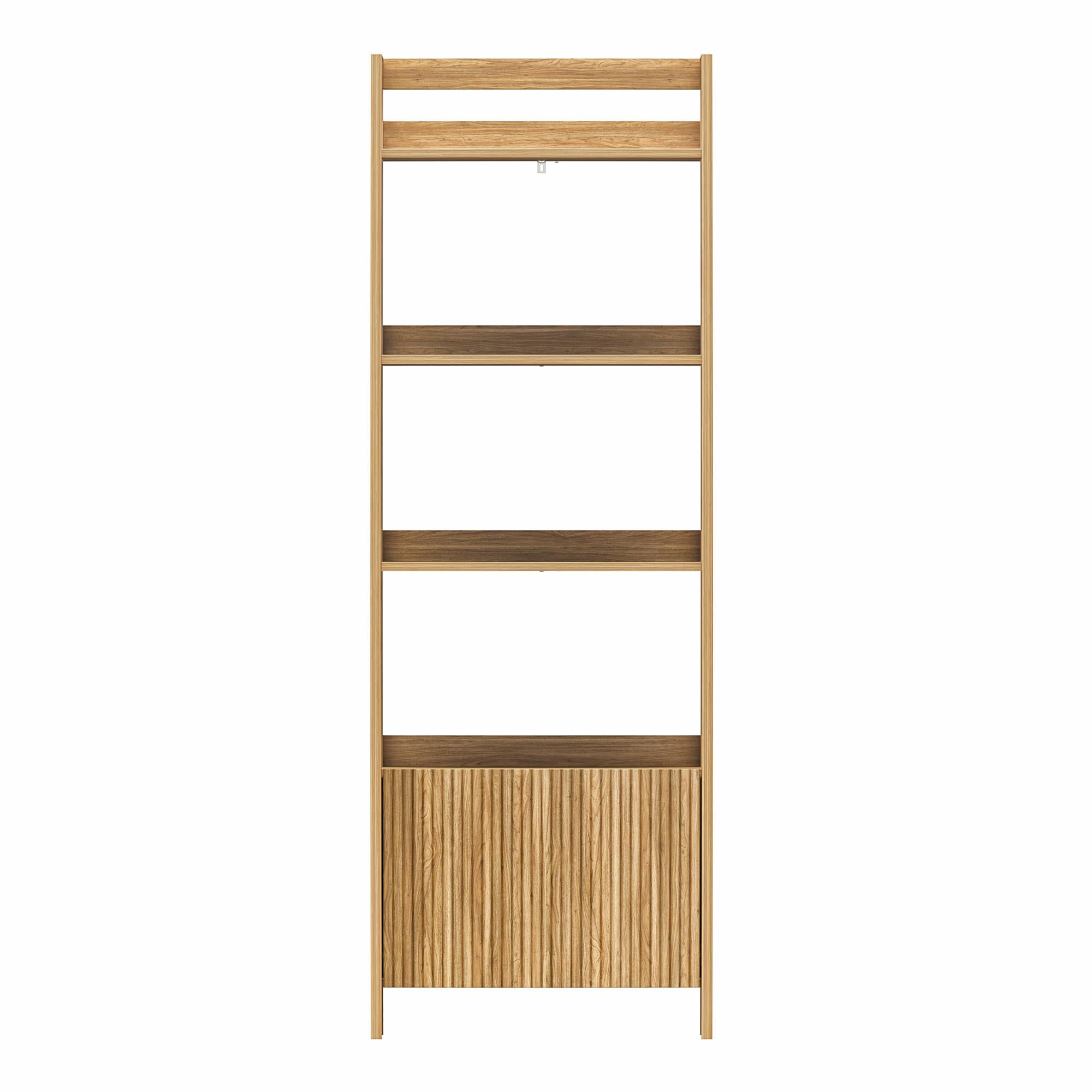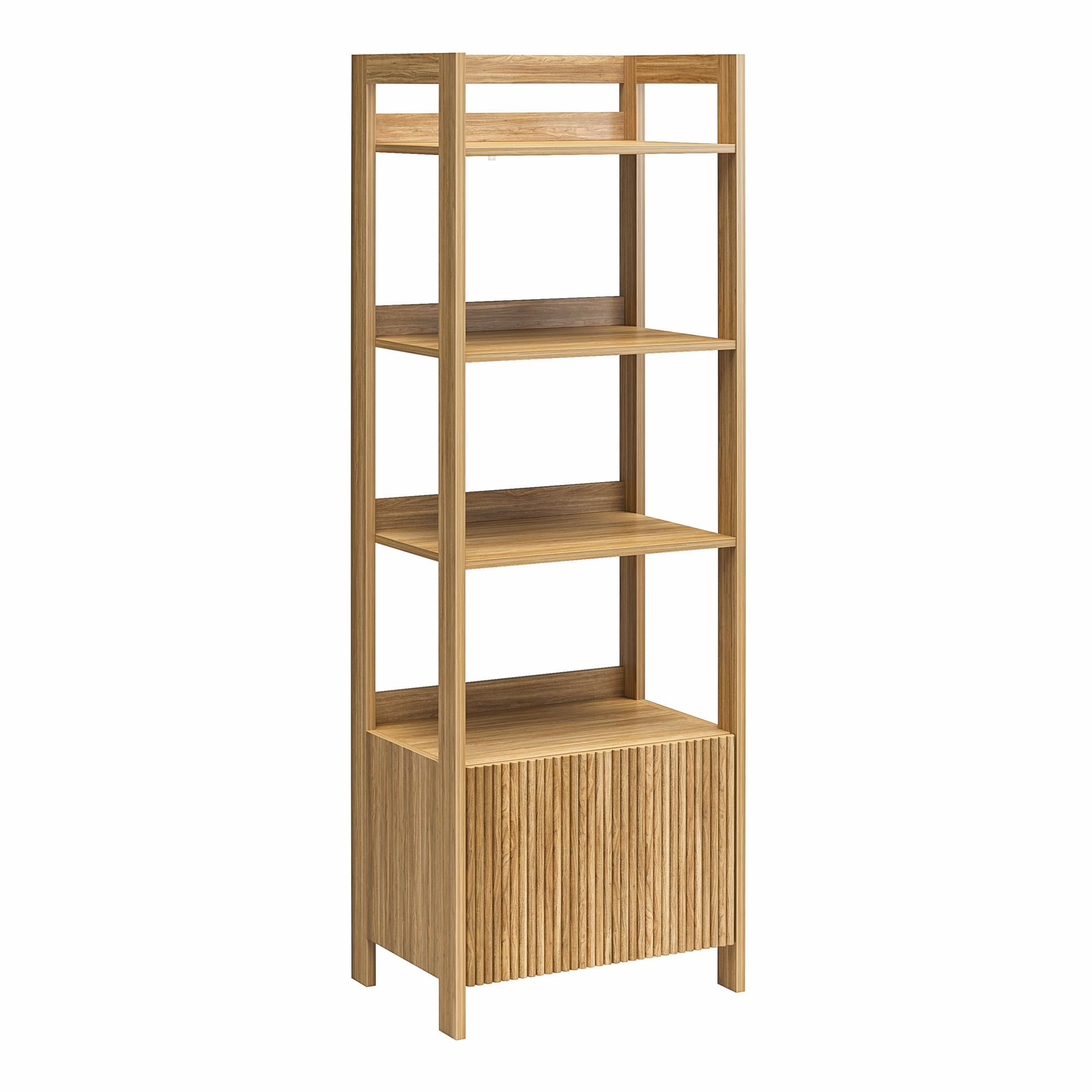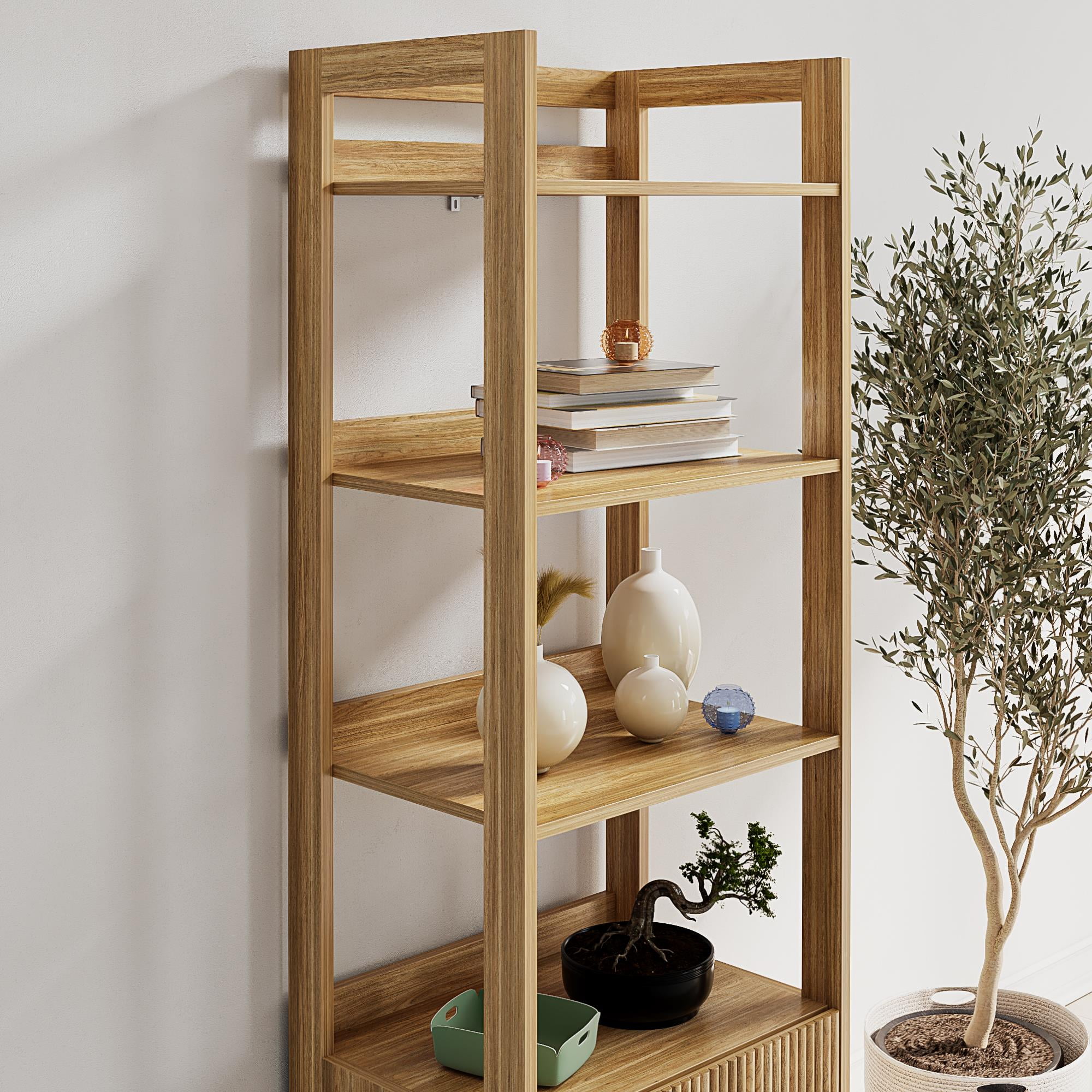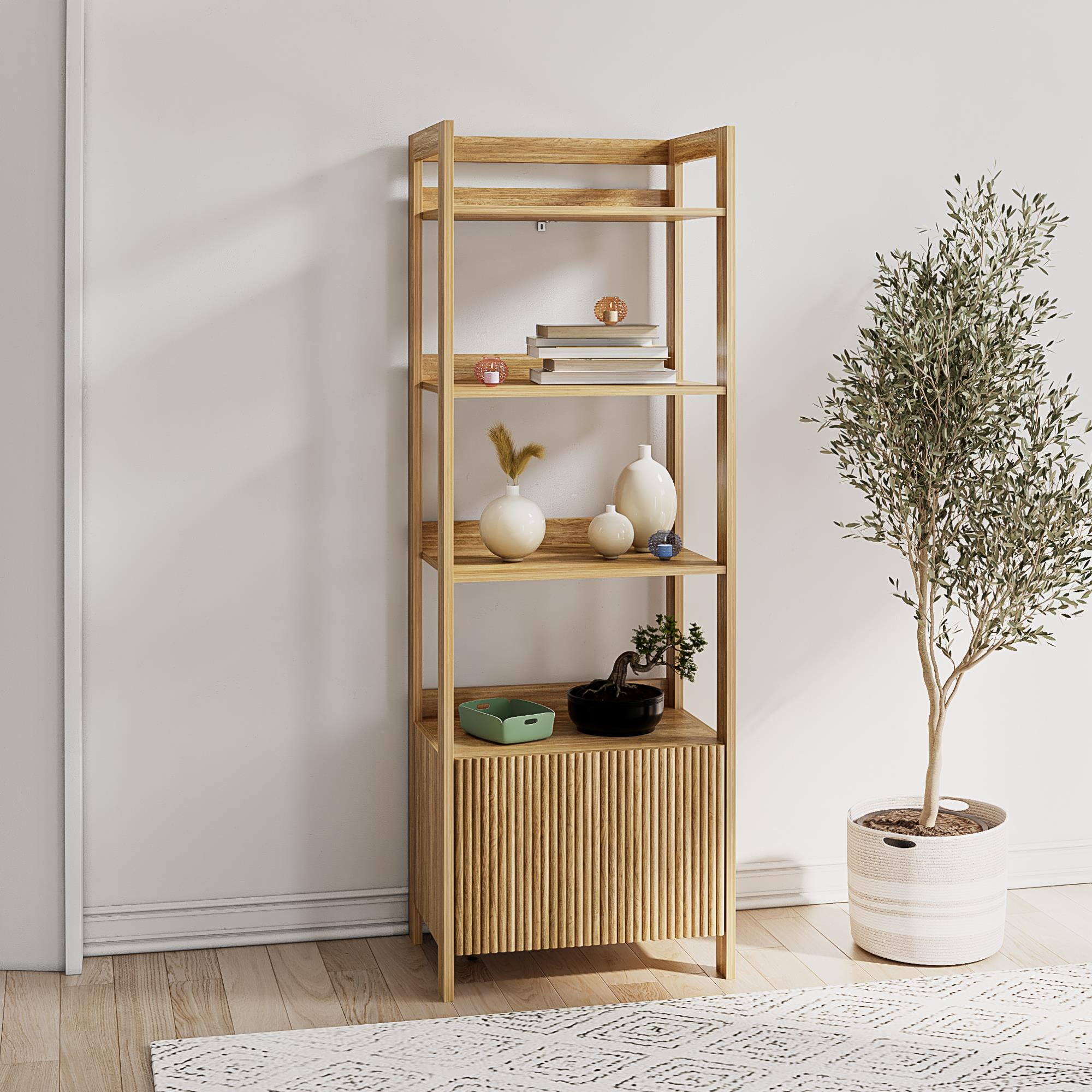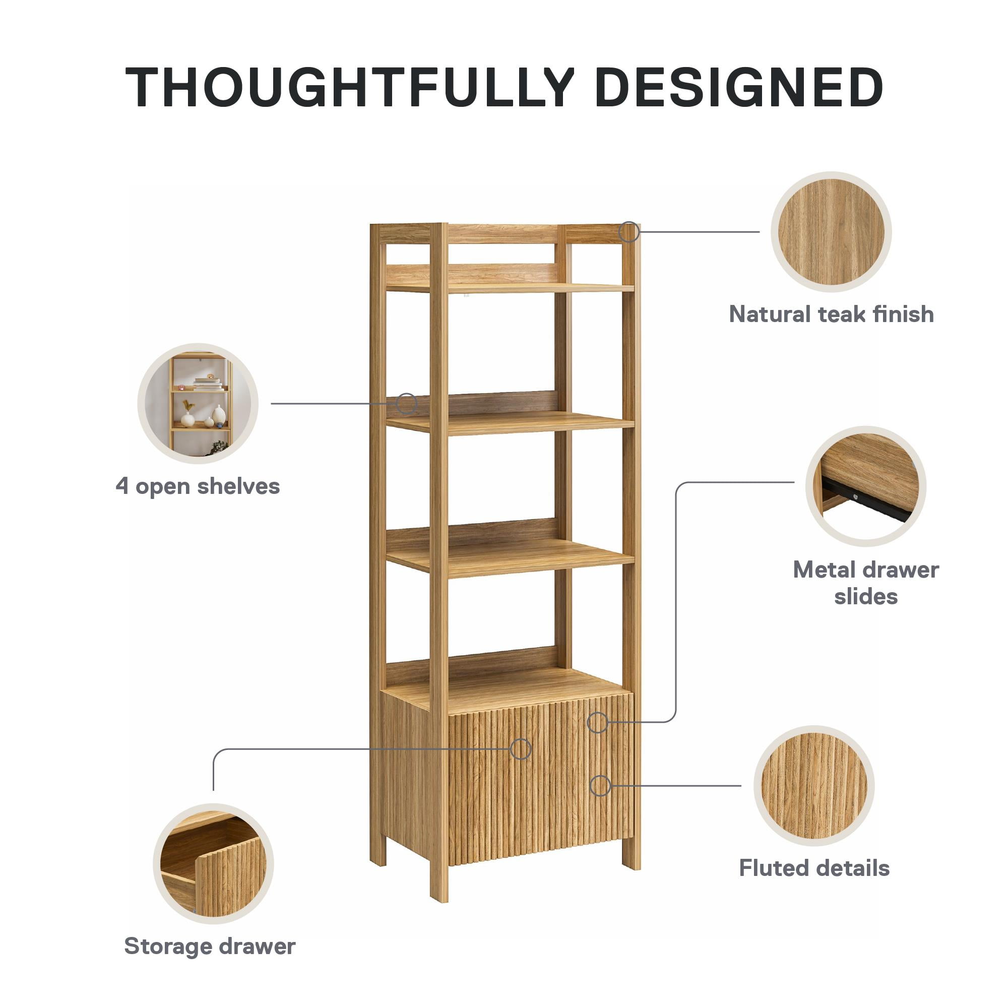 Mainstays 4-Shelf Reeded Bookcase with Drawer, Natural Teak