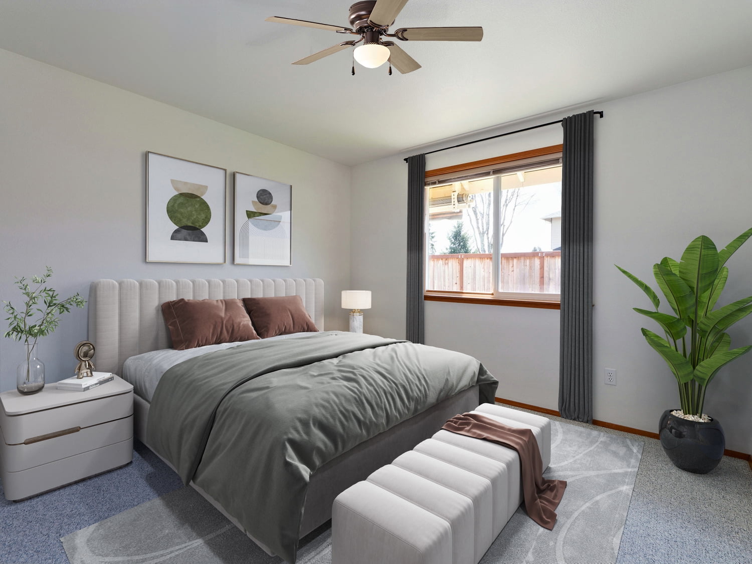 Indoor use Oil rubbed bronze finish QUIET, REVERSIBLE MOTOR: Conveniently quiet, 3 speed – reversible motor for year-round comfort EASY ON AND OFF: Traditional pull chains included for easy “on and off” adjustments FIVE REVERSIBLE FAN BLADES: Get the perfect finish match with our reversible ceiling fan blades. LOW PROFILE DESIGN: Hugger ceiling fan, built for rooms where extra space is needed. 44 INCH DIAMETER PERFECT FOR SMALL& MEDIUM SIZED ROOMS: Perfect for rooms around 15 x 15 feet such as living rooms, bedrooms, dining rooms or family rooms.