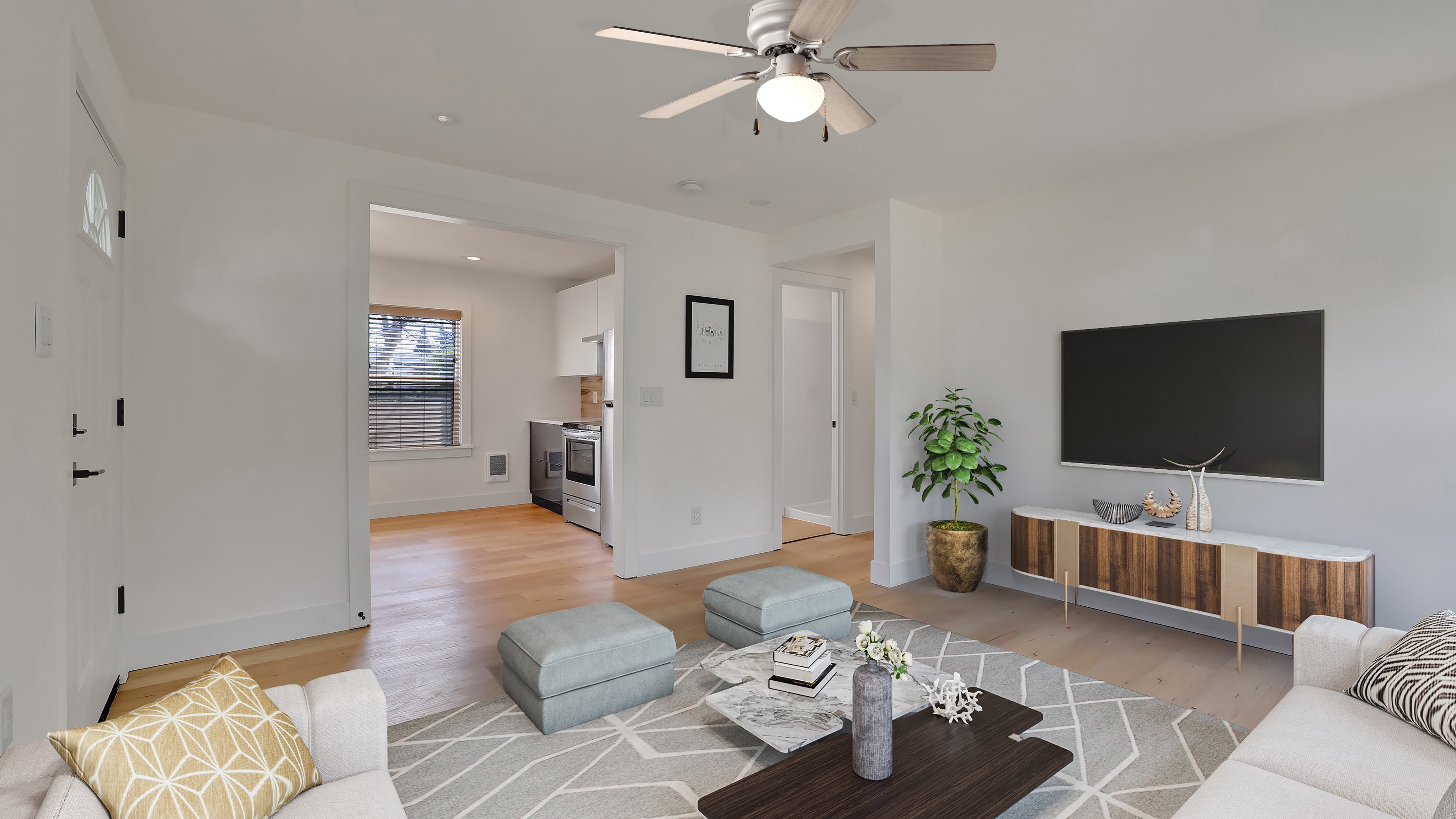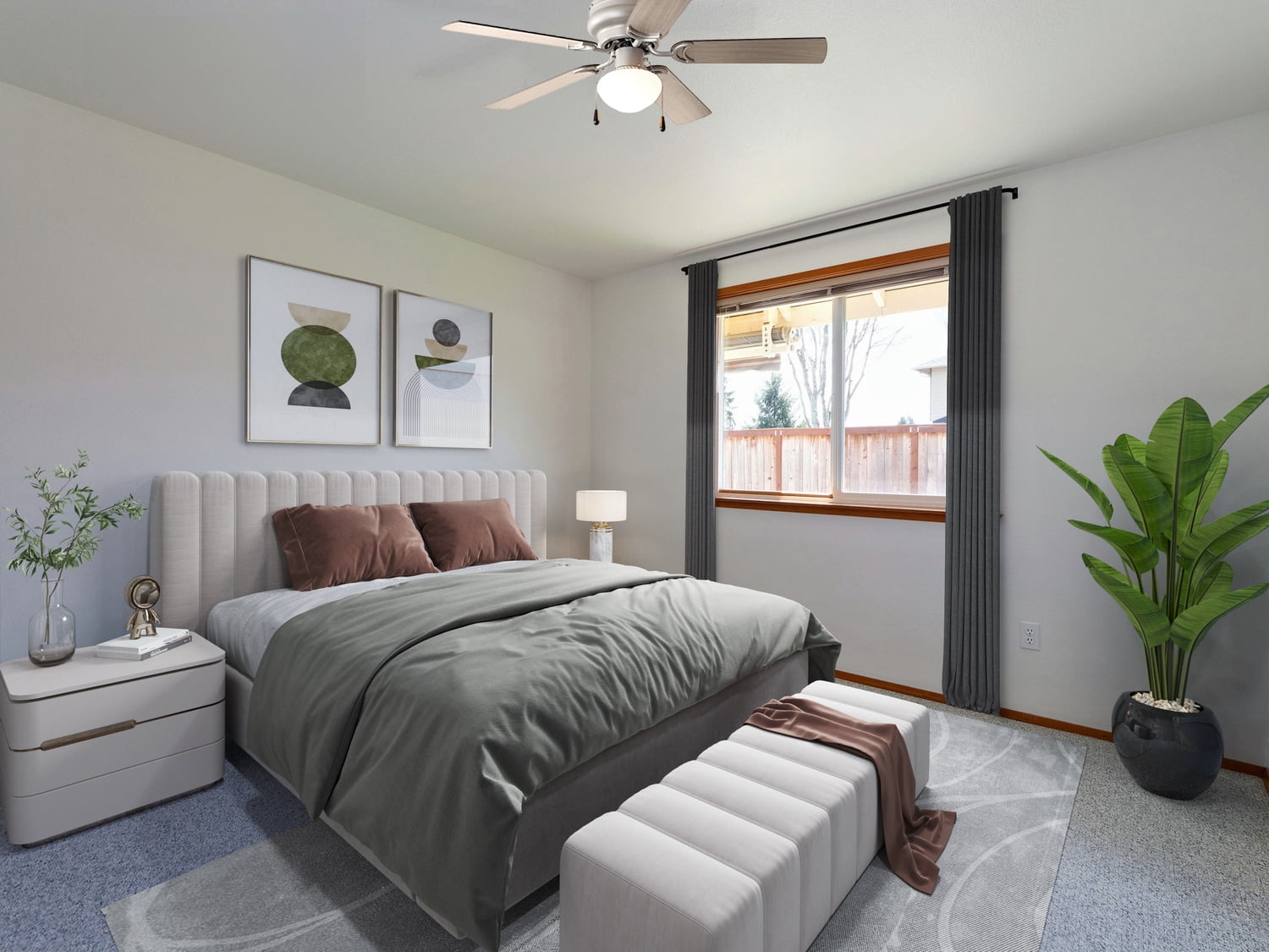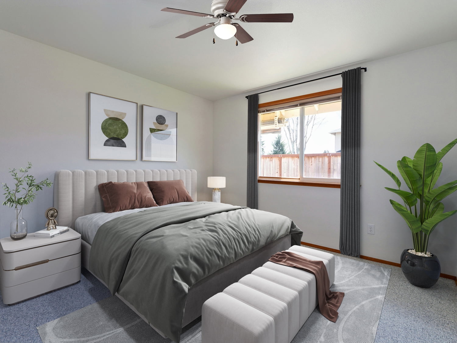 Indoor use Satin nickel color QUIET, REVERSIBLE MOTOR: Conveniently quiet, 3 speed – reversible motor for year-round comfort EASY ON AND OFF: Traditional pull chains included for easy “on and off” adjustments 44 INCH REVERSIBLE FAN BLADES: Get the perfect finish match with our reversible ceiling fan blades. LOW PROFILE DESIGN: Hugger ceiling fan, built for rooms where extra space is needed. PERFECT FOR SMALL& MEDIUM SIZED ROOMS: Perfect for rooms around 15 x 15 feet such as living rooms, bedrooms, dining rooms or family rooms.