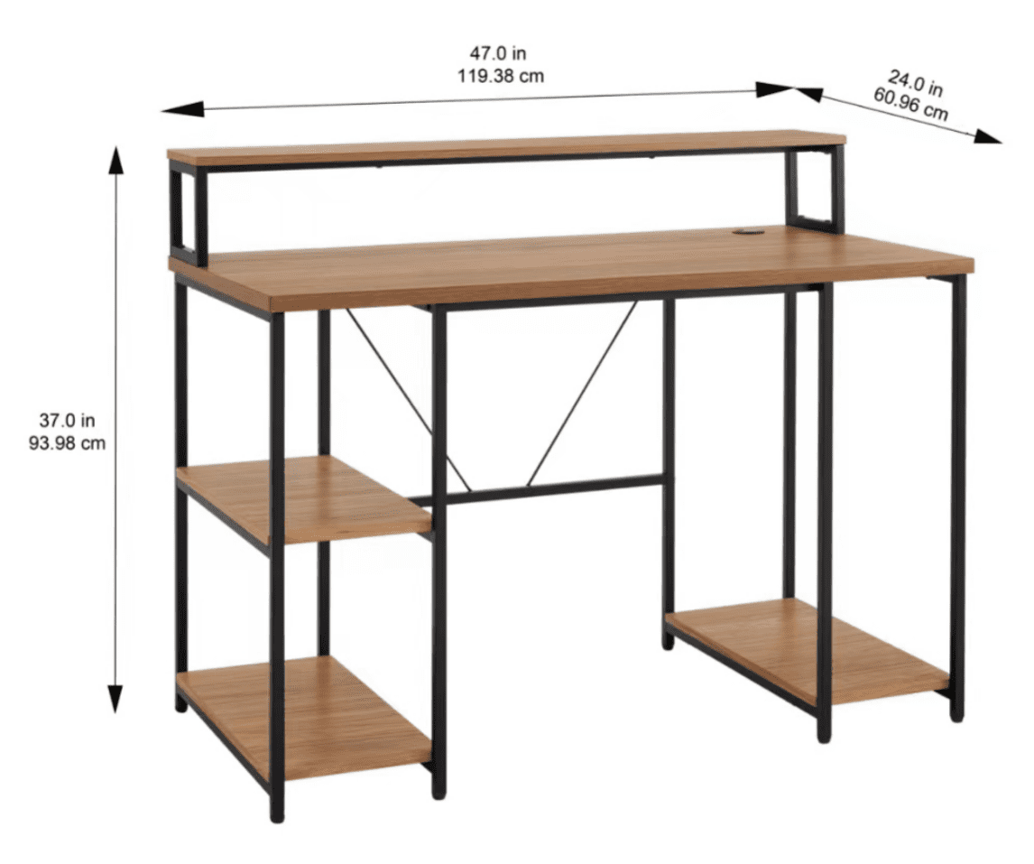 Mainstays 47″ Computer Desk with Storage Shelves, Walnut Finish