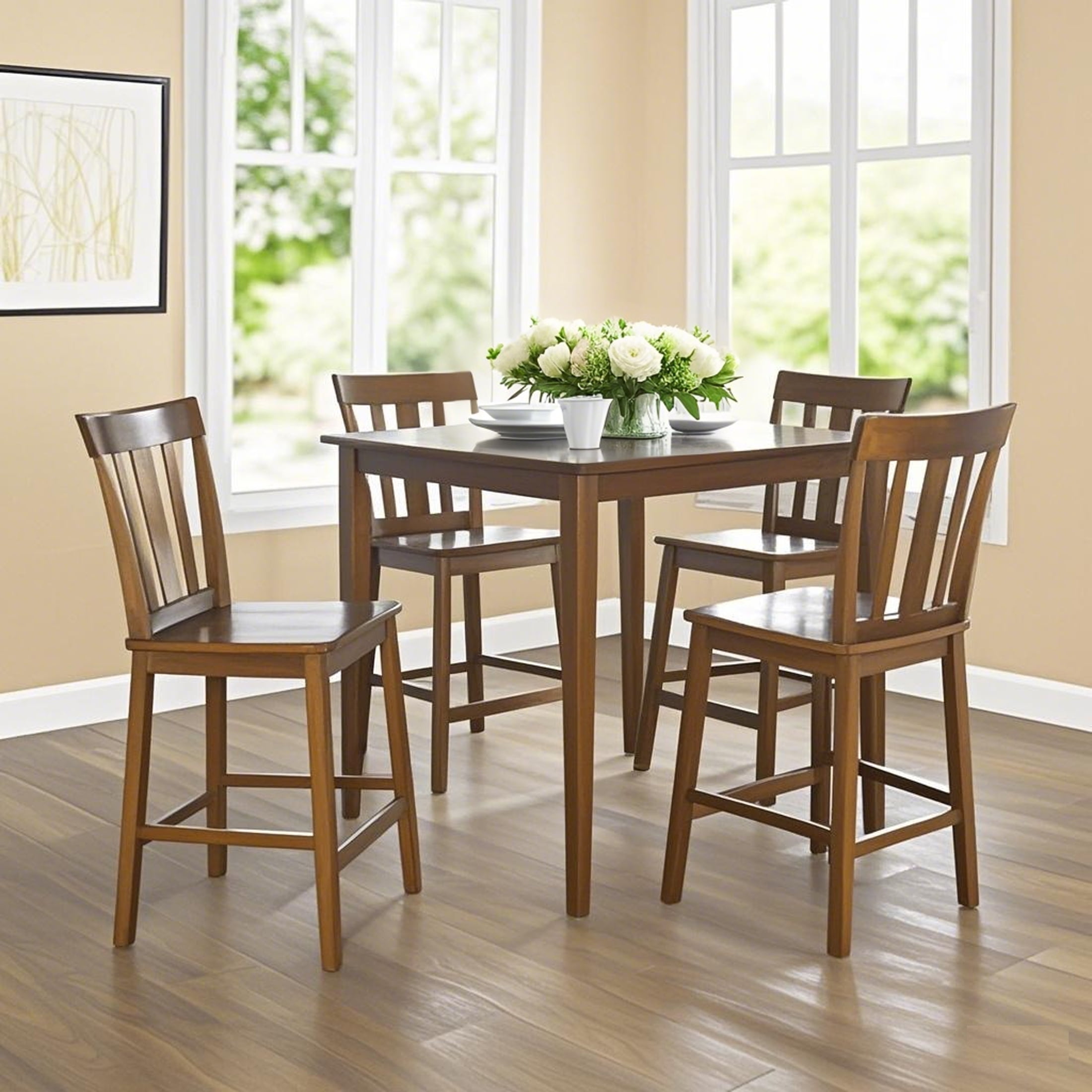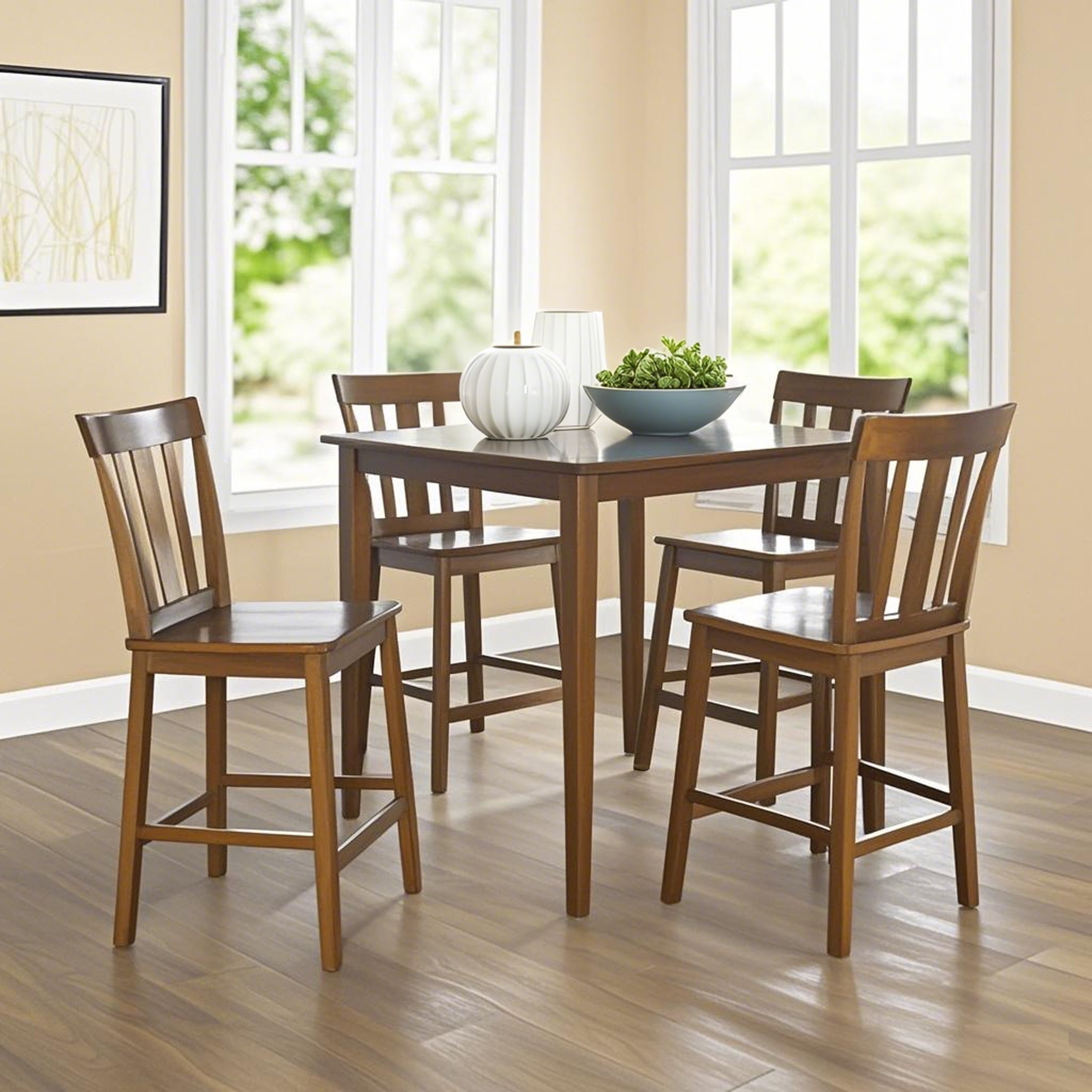 Mainstays 5 Piece Mission Counter Height Dining Set, Solid Wood, Cherry Color for Indoor