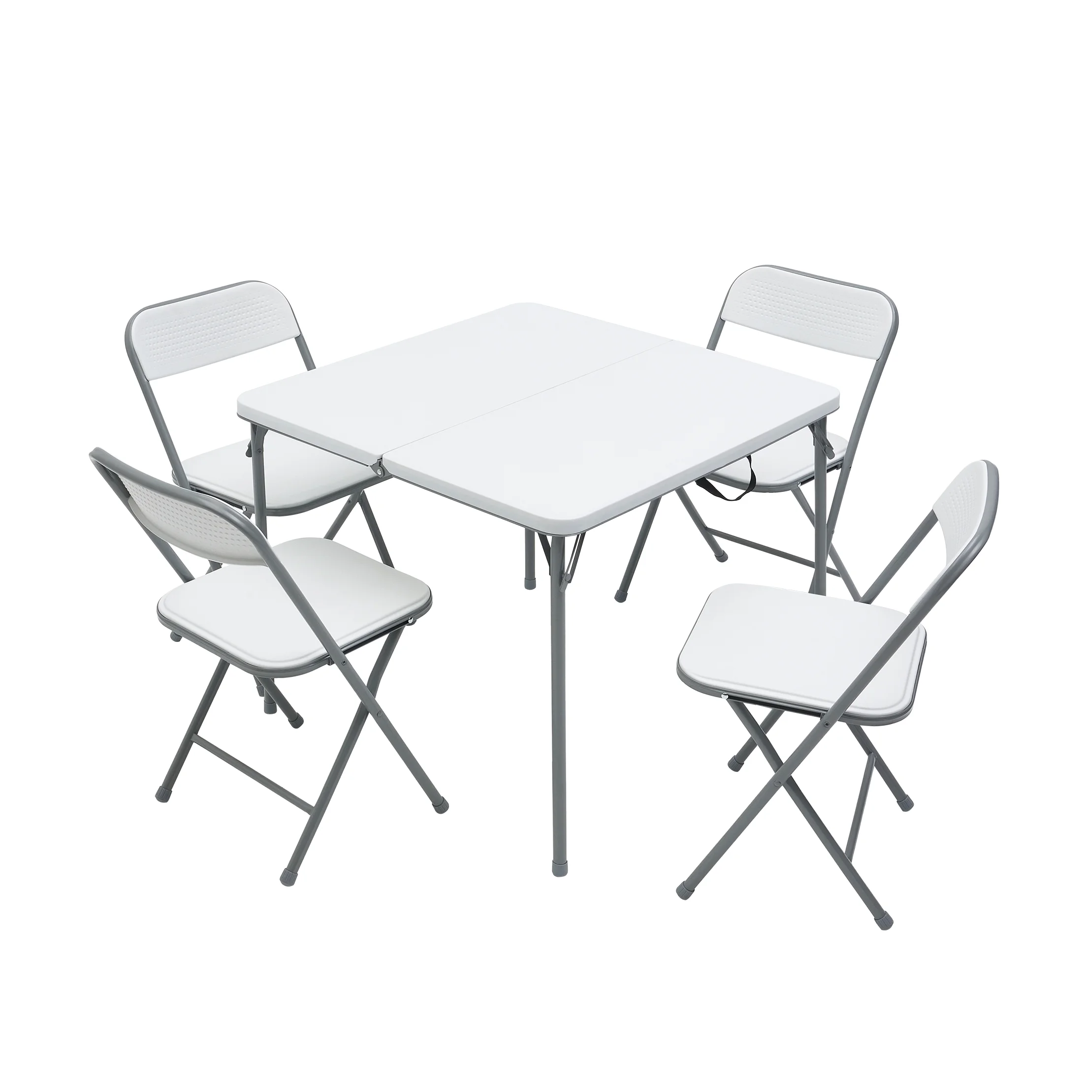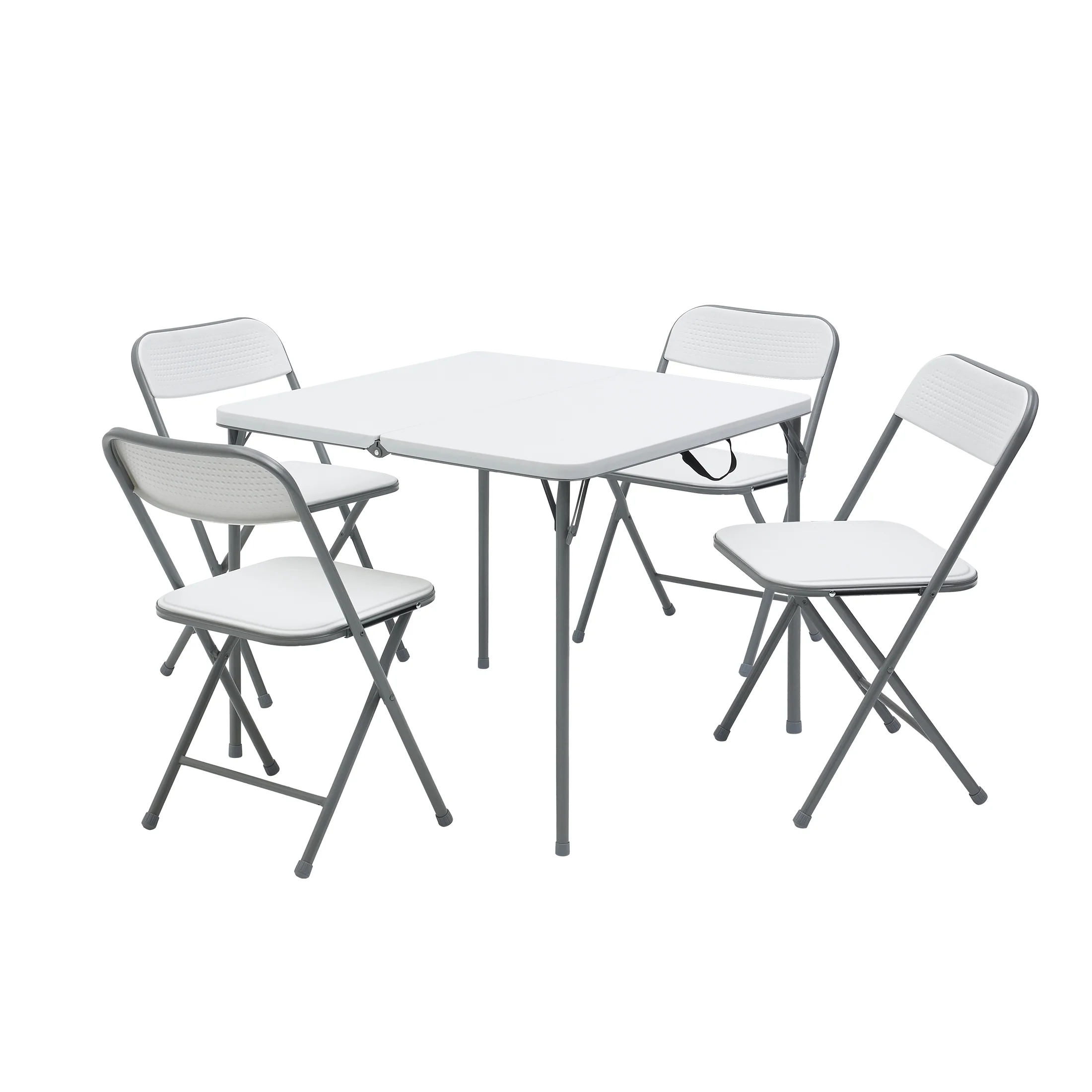 Mainstays 5 Piece Resin Card Folding Table and Four Folding Chairs Set, White