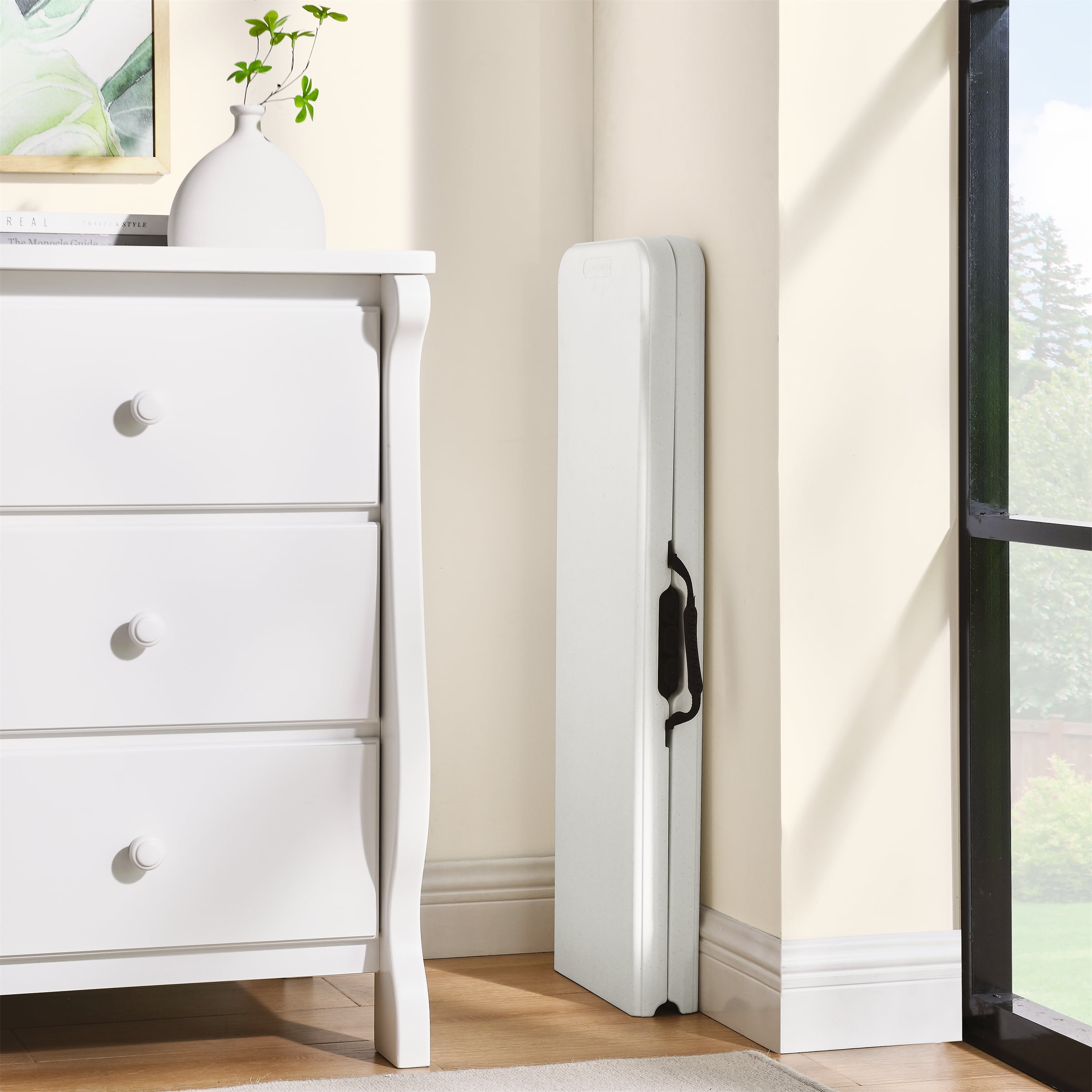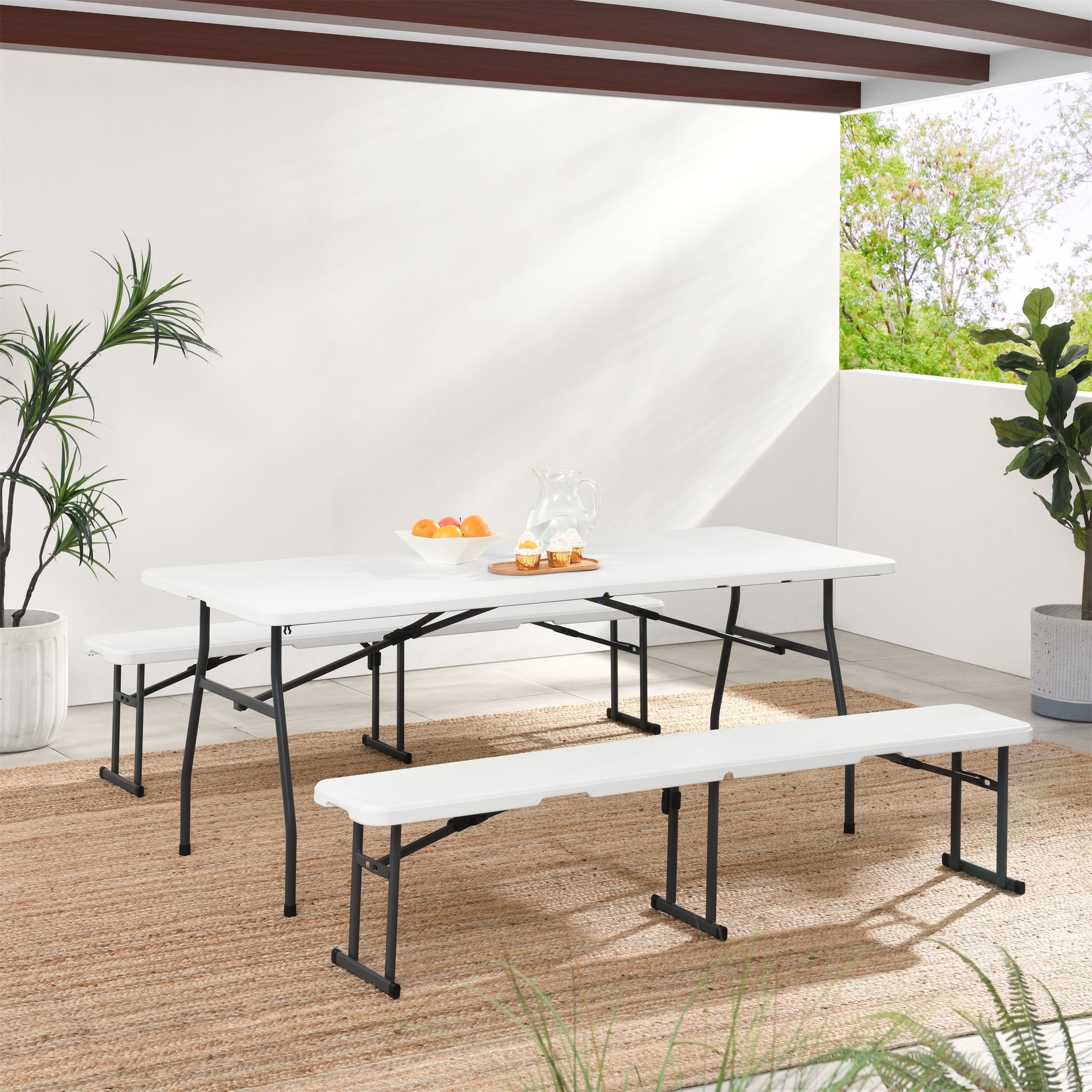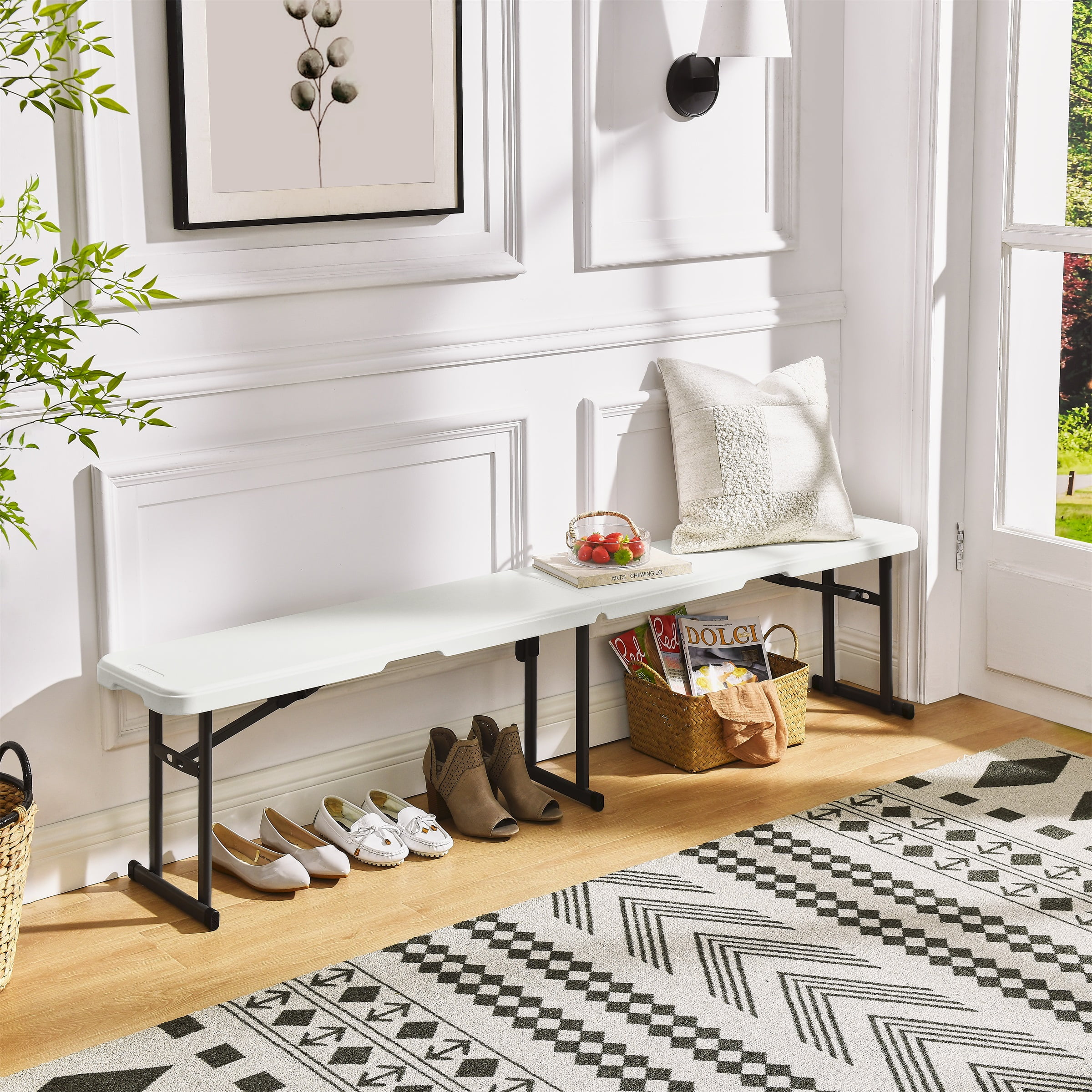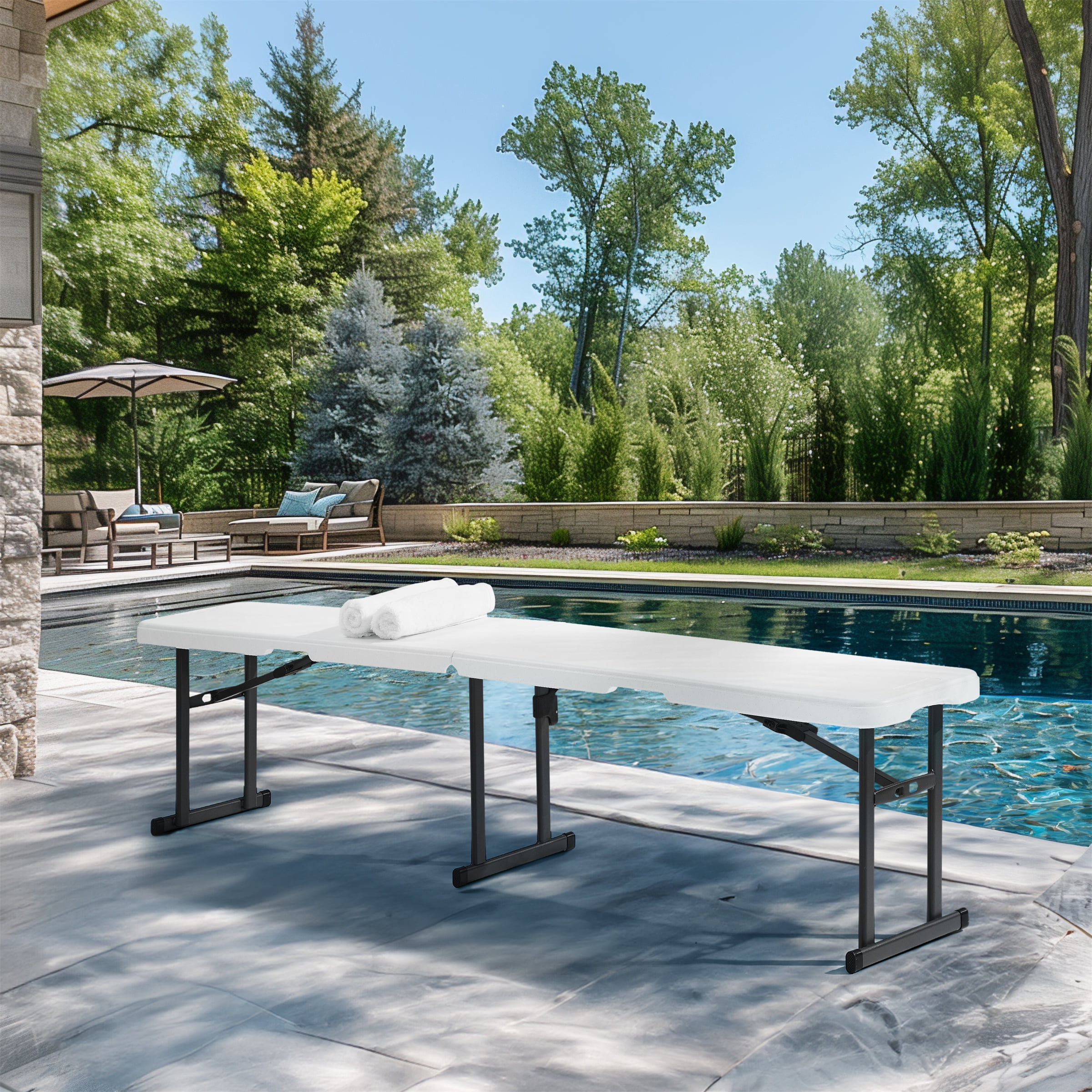 Mainstays 6 Foot Fold-in-Half Bench, Steel Frame, Indoor Outdoor, Includes Carry Handle, White