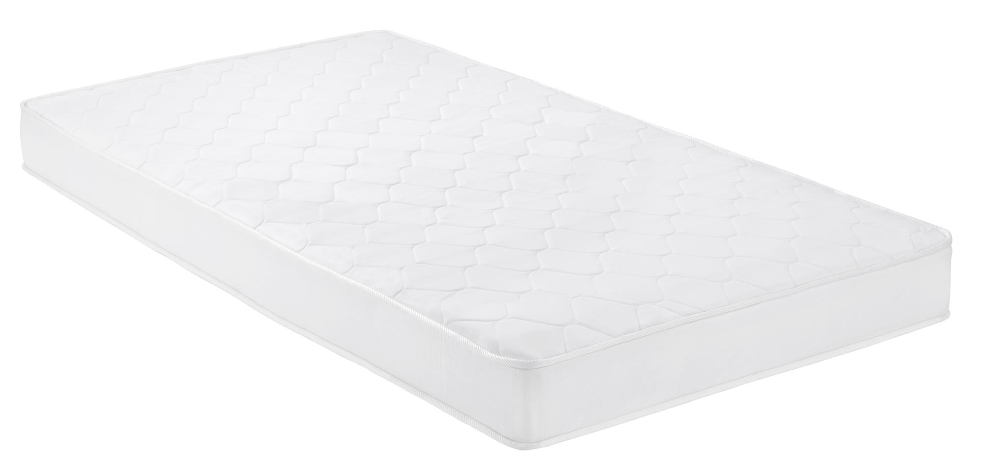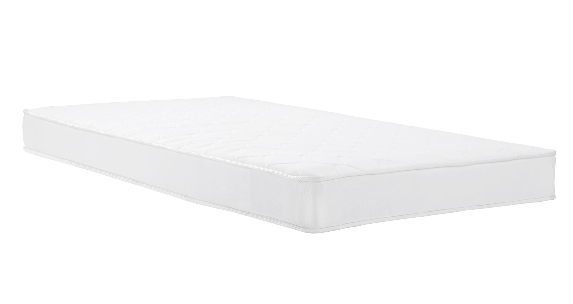 Quilted pattern mattress design with 5″ – 13.5 gauge coils that provide support, comfort & durability. Ideal as a bunk bed mattress, daybed mattress and trundle mattress. Fits any standard twin size bed. Manufactured in either Cambodia or Thailand. Foam in this mattress is made without PBDEs, TDCPP or TCEP (“Tris”) flame retardants, ozone depleters, mercury, lead and heavy metals. Foam is low in VOC emissions for indoor air quality (less than 0.5 PPM). Made without phthalates regulated by the Consumer Safety Product Commission. Meets federal flammability standard CFR 1633. Shipped rolled, compressed, and vacuum-sealed in one easy to handle box. Mattress dimensions: 75″L x 39″W x 6″H. Net weight: 31 lbs. Shipping dimensions: 41″L x 11″W x 11″H. Gross weight: 37 lbs.