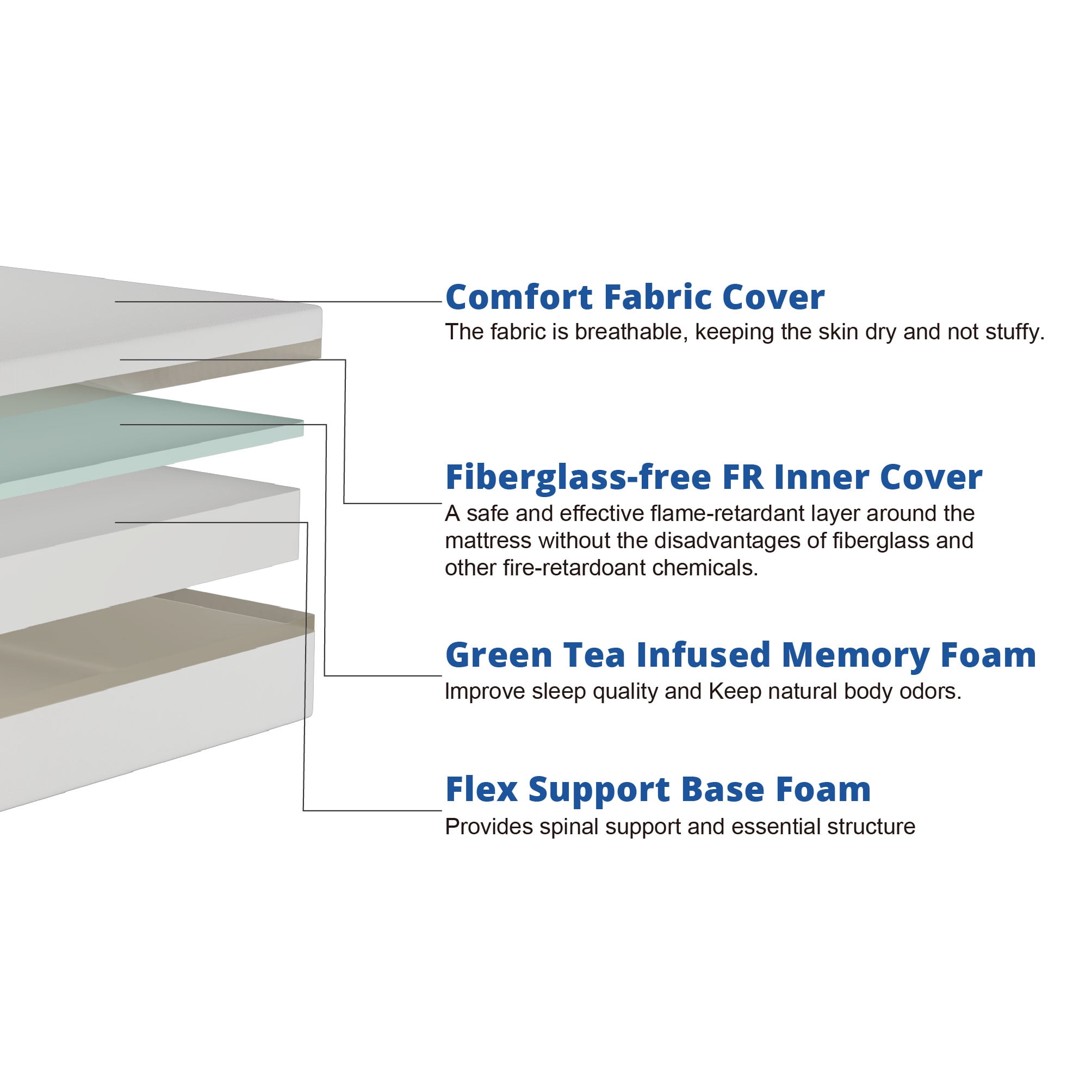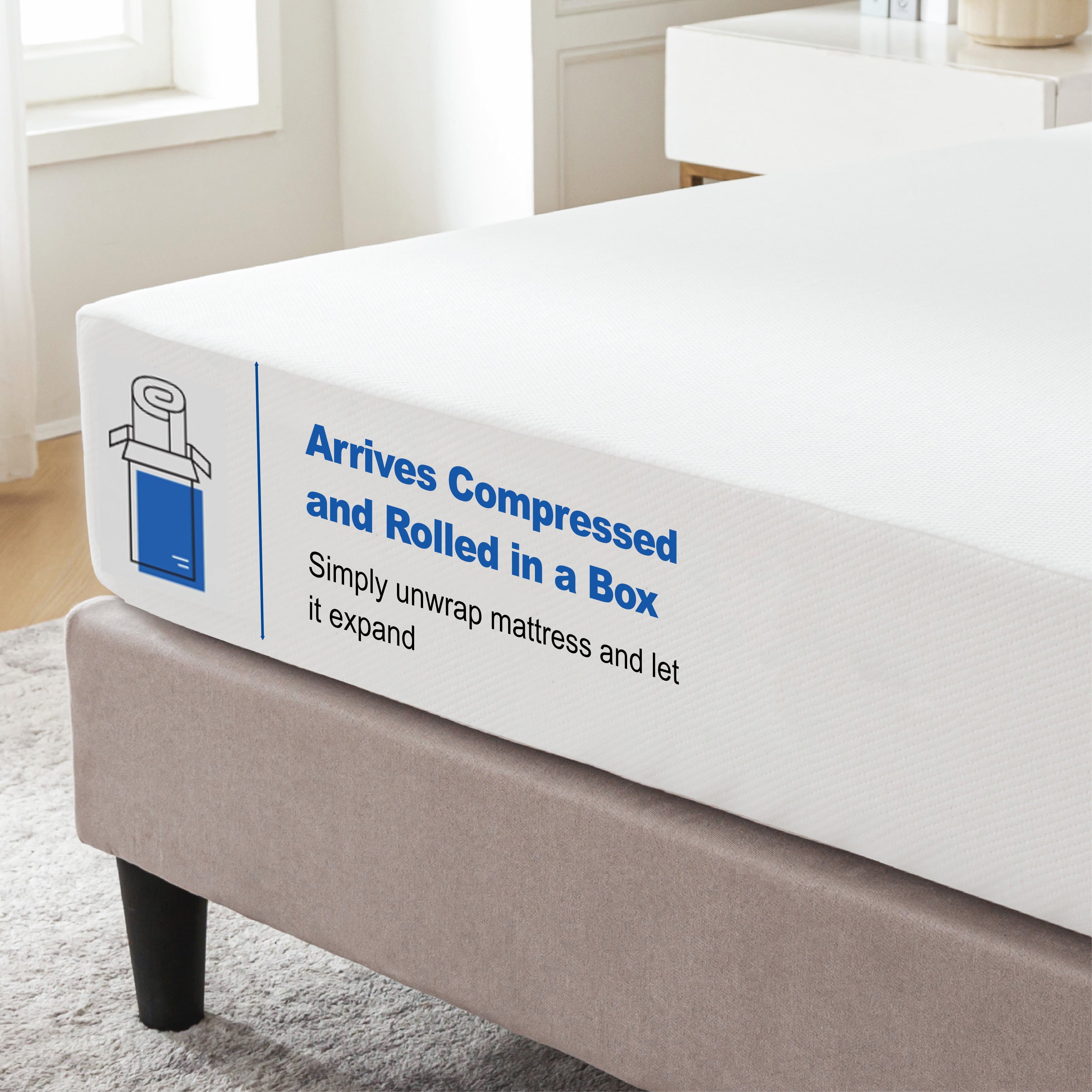 Mainstays 6” Medium Firm Memory Foam Mattress, Full 6” PROFILE: Designed to fit seamlessly in guest rooms, teen rooms, dorms, trundle beds, bunk beds, and a variety of other sleeping arrangements ALL SLEEPERS WELCOME: Medium feel ensures side, back, and stomach sleepers alike wake up refreshed and revitalized BREATHABLE COVER: Soft, durable fabric enhances airflow and comfort SPECAILTY INFUSIONS: Green Tea Infused Memory foam and Liquid Gel Flex Foam adapt to your body throughout the night leaving you cool and comfortable MOTION ISOLATION: Enjoy undisturbed sleep with motion isolation that minimizes movement transfer from one side of the mattress to the other COMPATABILITY: Compatible with platform beds, slatted frames, adjustable bases, or a traditional box spring for versatile support MEETS SAFETY STANDARDS: CertiPUR-US® certified foam ensures the mattress is free from harmful chemicals, providing a safe sleep environment for all ages SHIPS IN A BOX: Ships compressed and rolled for easy delivery—just unbox, cut the plastic, and allow 48-72 hours to expand fully Assembled Product Dimensions: 74” L x 53” W x 6” H Package Dimensions: 13.4” L x 13.4” W x 27.6” H; Weighs 30 pounds 10 year quality guarantee