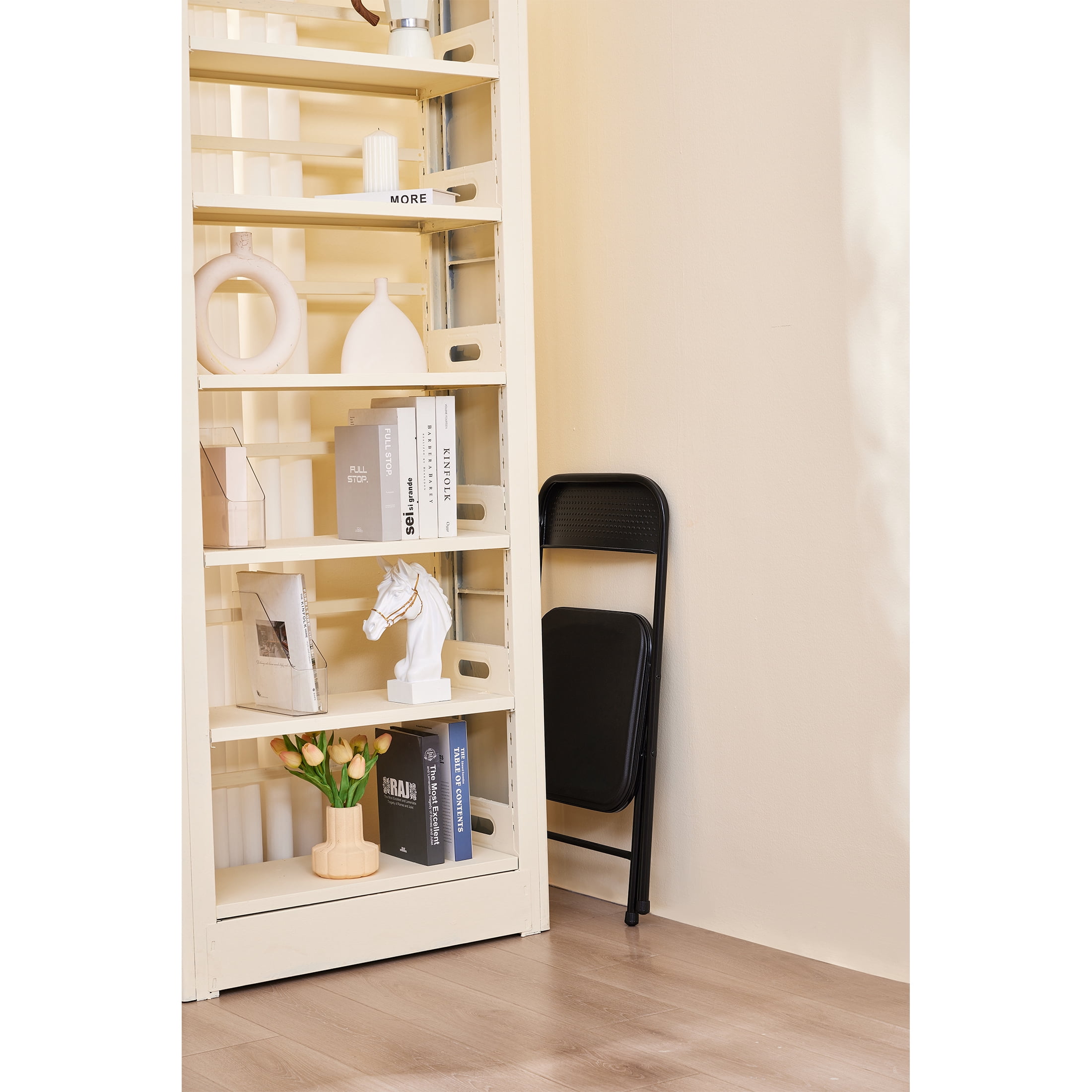 Mainstays Resin Folding Chair for Adult and Teen is a smart seating solution for daily use in your room, home or dorm. The lightweight and compact design makes it ideal to easily transport and set up. This chair can set up in seconds when you have extra guests. Steel frame with powder coated frame finish. The chair is easy to clean with no fuss – just wipe it down with a damp cloth. When you’re finished using it, it can be folded up completely for easy storage. The plastic foot caps prevents floor damage. This chair makes a wonderful addition to home. Be prepared for whatever may come your way with Mainstays Resin Folding Chair.