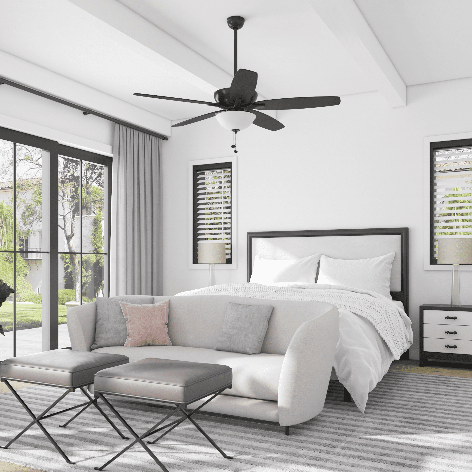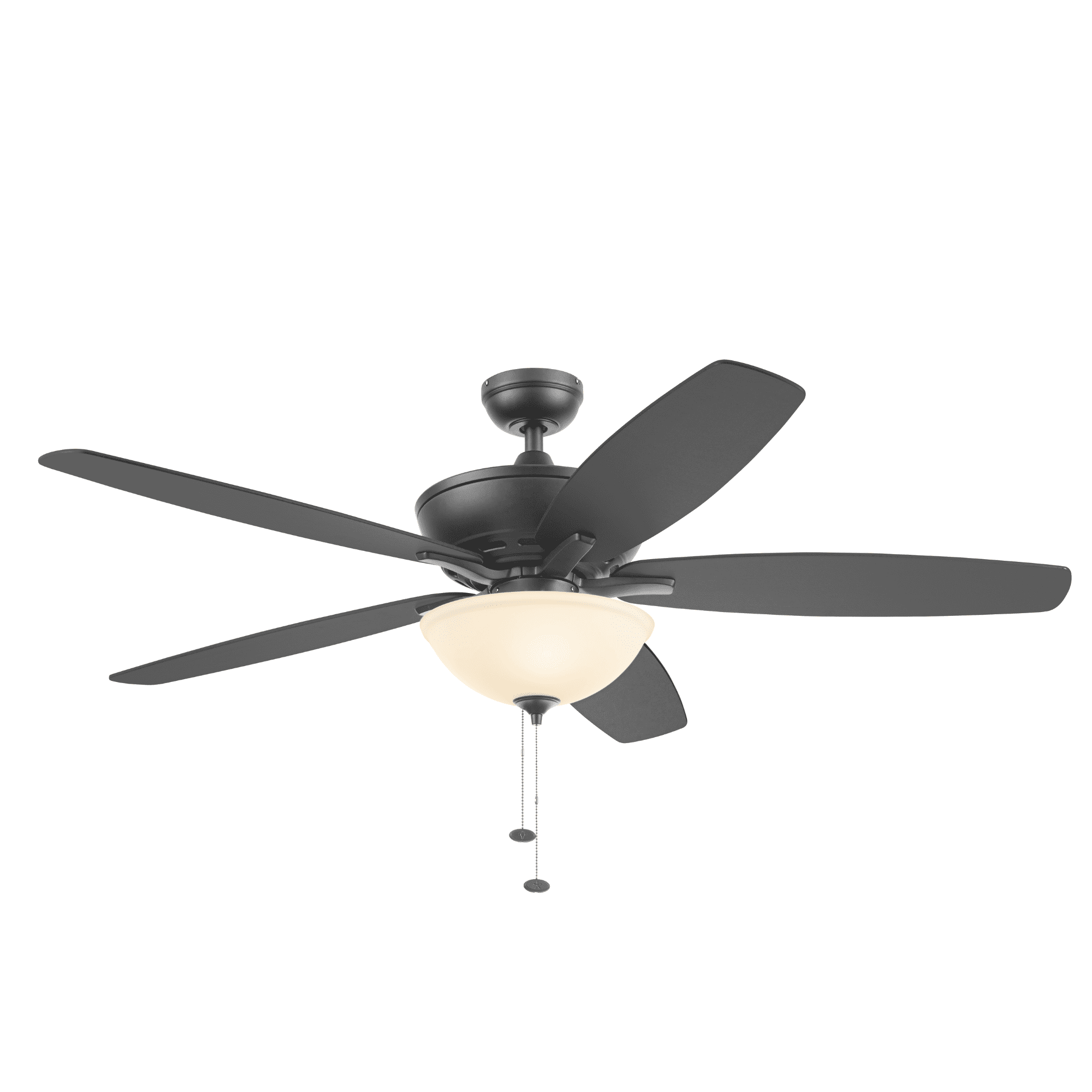 Mainstays 60″ Black Ceiling Fan with Light, 5 Blades, Reverse Airflow, Pull Chain Control