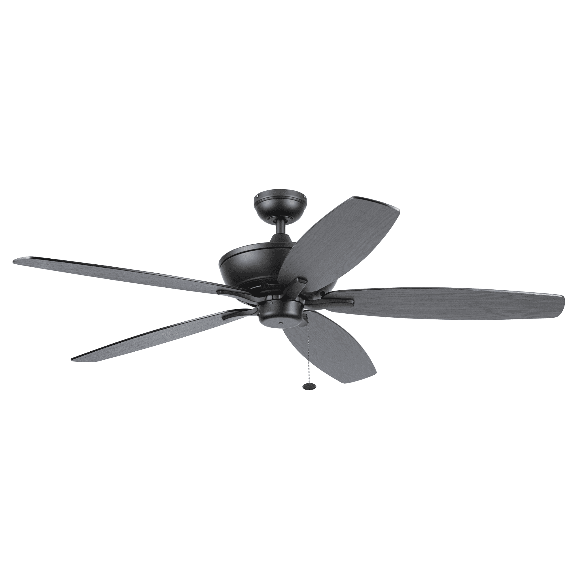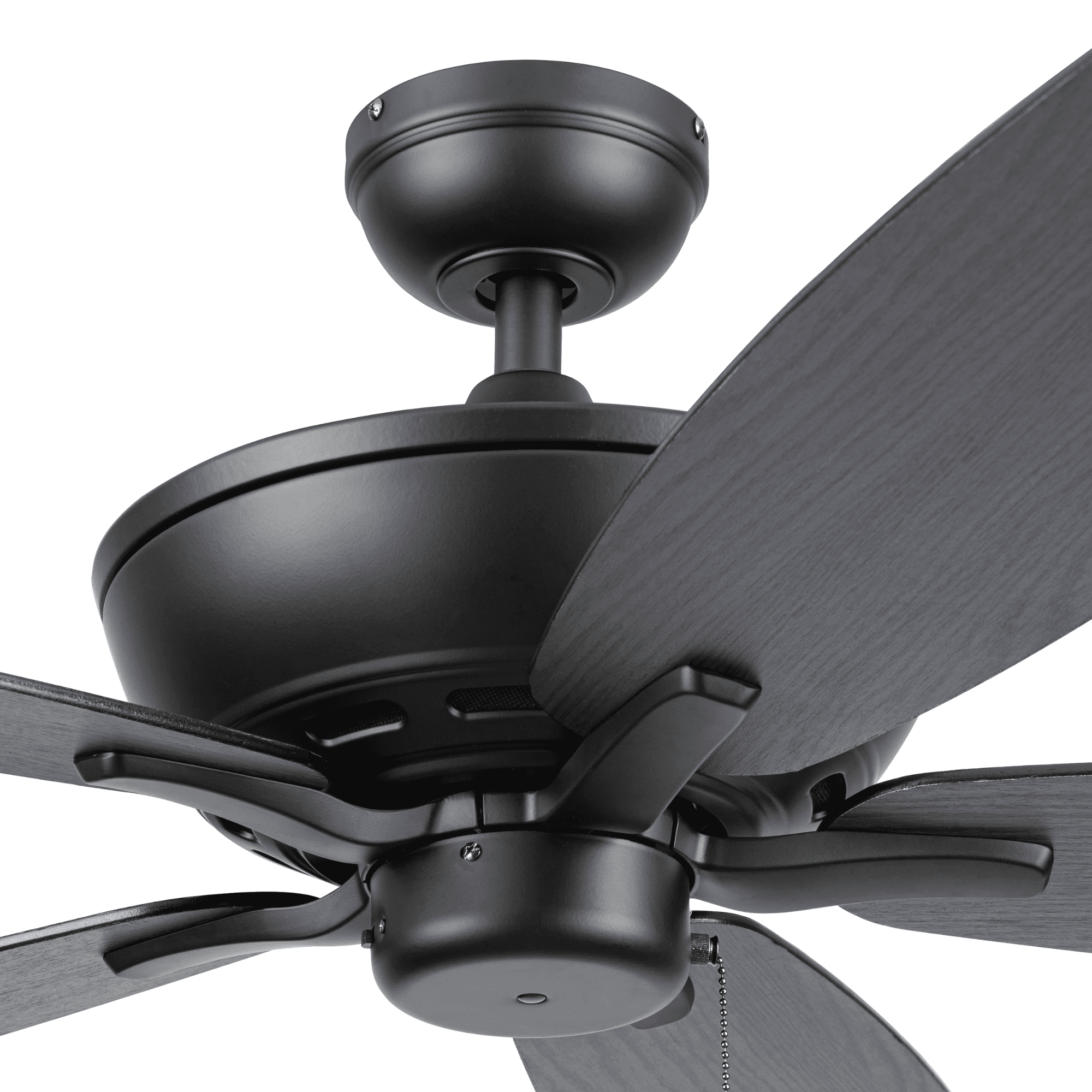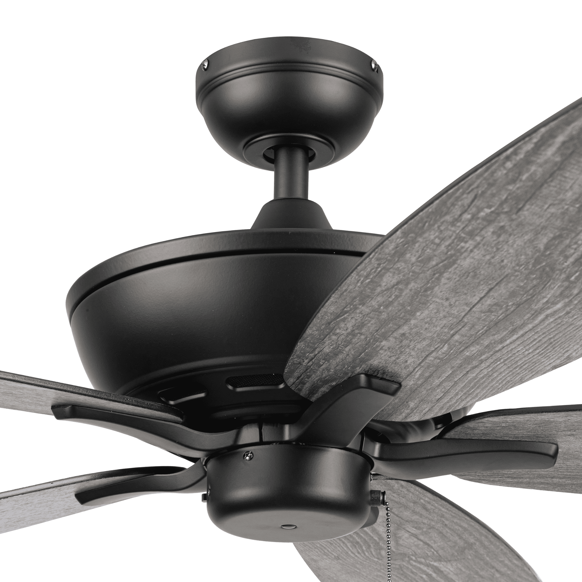 Keep Cool With The Correct Ceiling Fan Size: For ultimate performance, choose the best ceiling fan size for your room; This 60 inch indoor/outdoor ceiling fan is ideal for larger areas over 400 sq. ft. such as porches, patios and garages. Classic Blades: This traditional, 5 blade fan provides ultimate airflow; These fan blades deliver maximum circulation at high speed Tri-Mount Hanging Options: A multi-position fan with 3 hanging options; Standard option includes a 4 inch downrod; Flushmount option is for maximum head room; Angled mount option allows for hanging on vaulted ceilings with a longer downrod (sold separately) Crafted With High-Quality Material: The high-capacity motor delivers powerful airflow and quiet performance for years to come; This durable and classic ceiling fan is designed for long lasting comfort; ETL listed Reversible Fan For All Seasons: Improves air circulation in winter and summer; During summer, this ceiling fan optimizes airflow to enhance comfort; During winter, change the direction to evenly distribute warm air on low speed A Ceiling Fan For Outdoor Spaces: This outdoor/indoor fan is damp rated and perfect for your covered patio, porch, garage and any large living spaces where increased airflow can make a room more comfortable Pull Chain Control: Control the 3 speeds of you Mainstays ceiling fan with the pull chain; Compatible with universal ceiling fan remotes (sold separately) Dual-Finish Blades: This fan comes with a different finish on each side of the blades; Choose between Aged Cedar and Ebony; Pick the finish that best fits your space