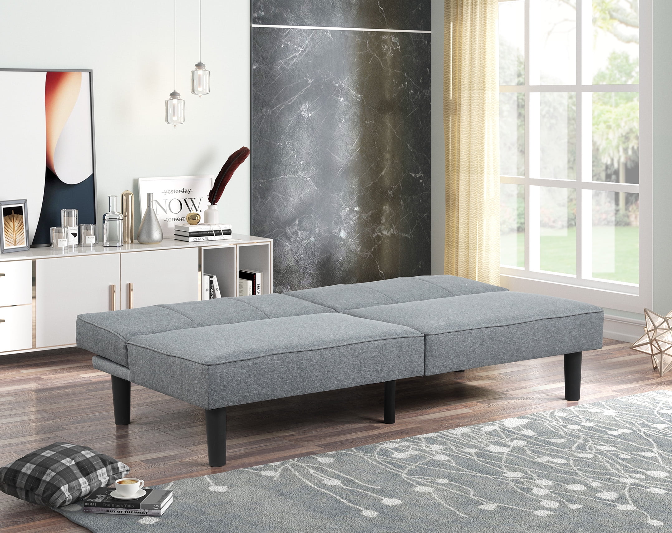 When versatility is the rule, the Mainstays Studio Convertible Sofa Futon in upholstery linen fabric is happy to abide whether at home or office. Made for the high-traffic areas, this product is the ideal combo of modern functionality and style. Its contemporary design can blend into any home or office decor. Constructed of wooden frame and black legs, it smoothly and safely transforms from sofa to bed. The futon frame is designed with high-density foam which is fully upholstered in high-quality fabric and split-back. This fully upholstered futon is a multi-functional sofa, lounger and bed giving you options depending on the type of guests you have over Featuring high density foam. this sofa effortlessly converts quickly to a bed. Surprise your guests.