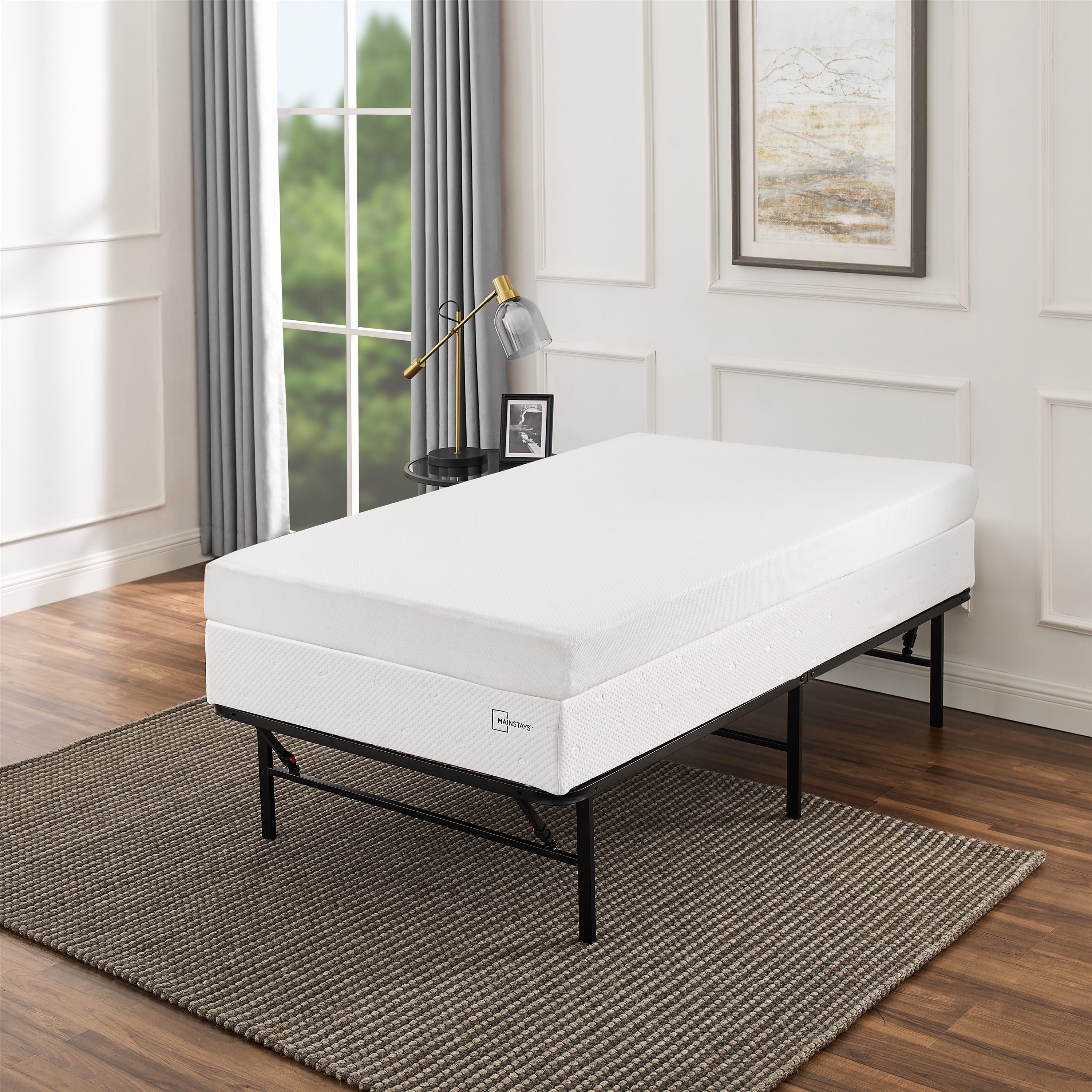 Set yourself up for a great night’s sleep with the Mainstays 7″ White Smart Box Spring. Offers the look and functionality of a traditional box spring but made from steel, providing ultra-sturdy support for any innerspring, memory foam or combination mattress. Features a 100% polyester jacquard covering that prevents shifting. This innovative box spring is designed to easily fold up for convenient storage and transport when not in use. The Mainstays 7″ White Jacquard Smart Box Spring sets up in seconds with no tools required and is available in Twin, Twin XL, Full, Queen, King, and California King sizes to create the perfect sleeping platform in any bedroom.