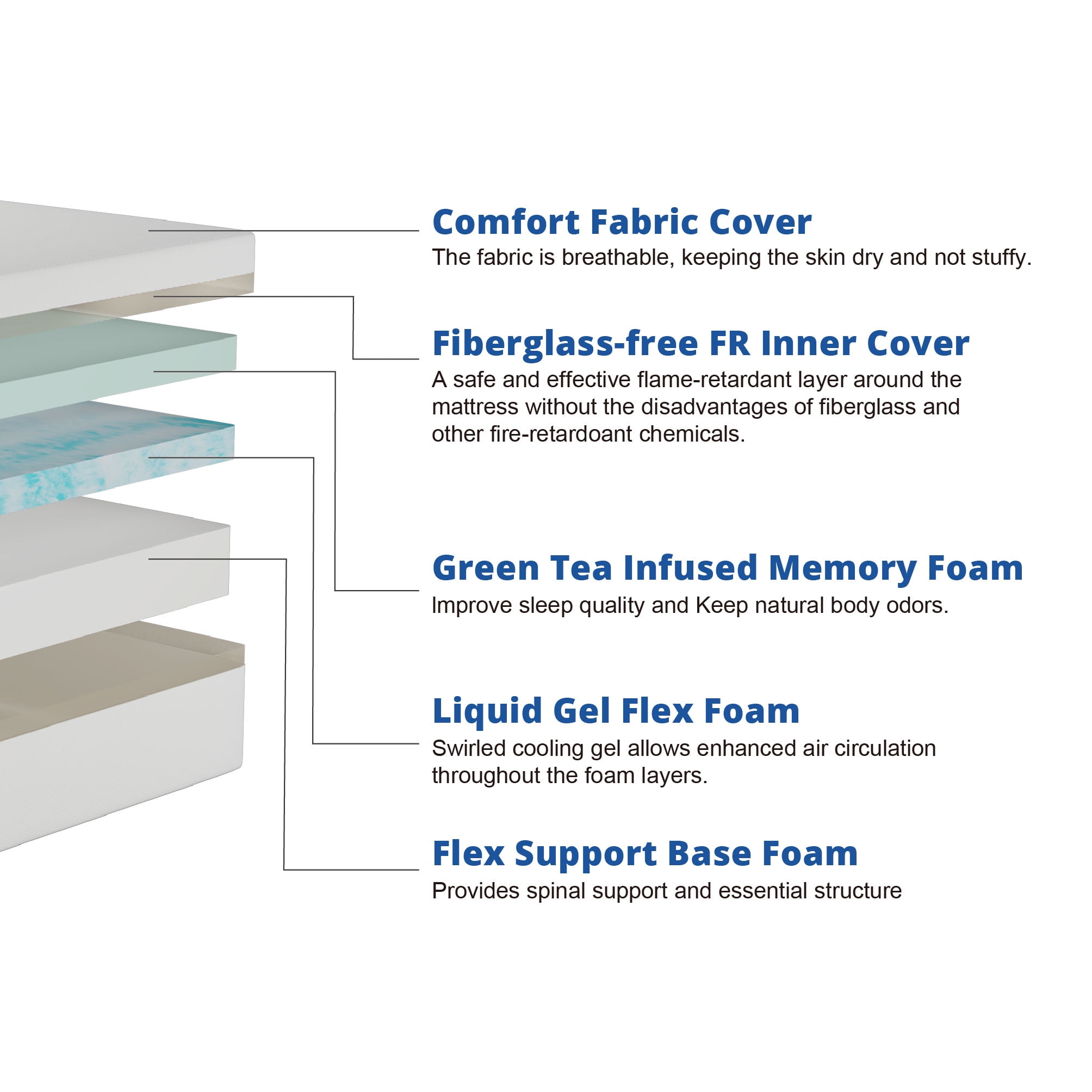 The Mainstays 8” Medium Memory Foam Mattress offers a restorative and supportive sleep night after night at an affordable price. Featuring plush Green Tea-Infused Memory Foam that contours to your body’s natural curves while promoting air circulation, it ensures a restful night’s sleep. The breathable Liquid Gel Flex Foam helps regulate temperature, keeping you cool and comfortable. A durable Base Foam offers excellent support for your back and joints, and CertiPUR-US foams provides peace of mind. Offered in 6”, 8” and 10” profiles, there is a mattress for everyone in the family in a universal medium feel. Compatible with platform beds, slatted frames, adjustable bases, or a traditional box spring – upgrading your mattress is now easier than ever. Conveniently shipped compressed in a box, it expands fully within 48 hours for easy setup and enjoyment.