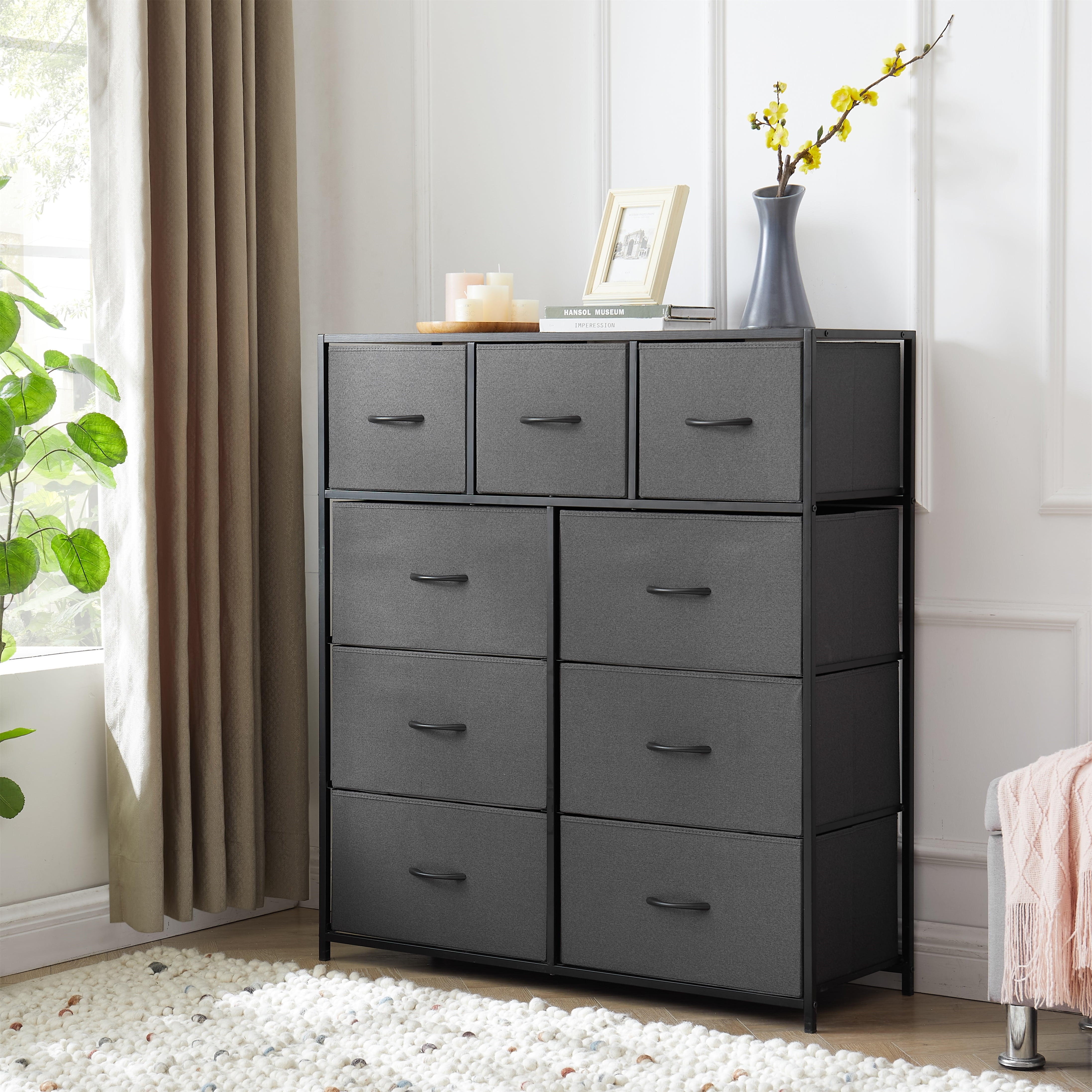 Mainstays 9 Drawer Fabric Dresser for Bedroom 40″ Wide x 45″ Tall, Grey