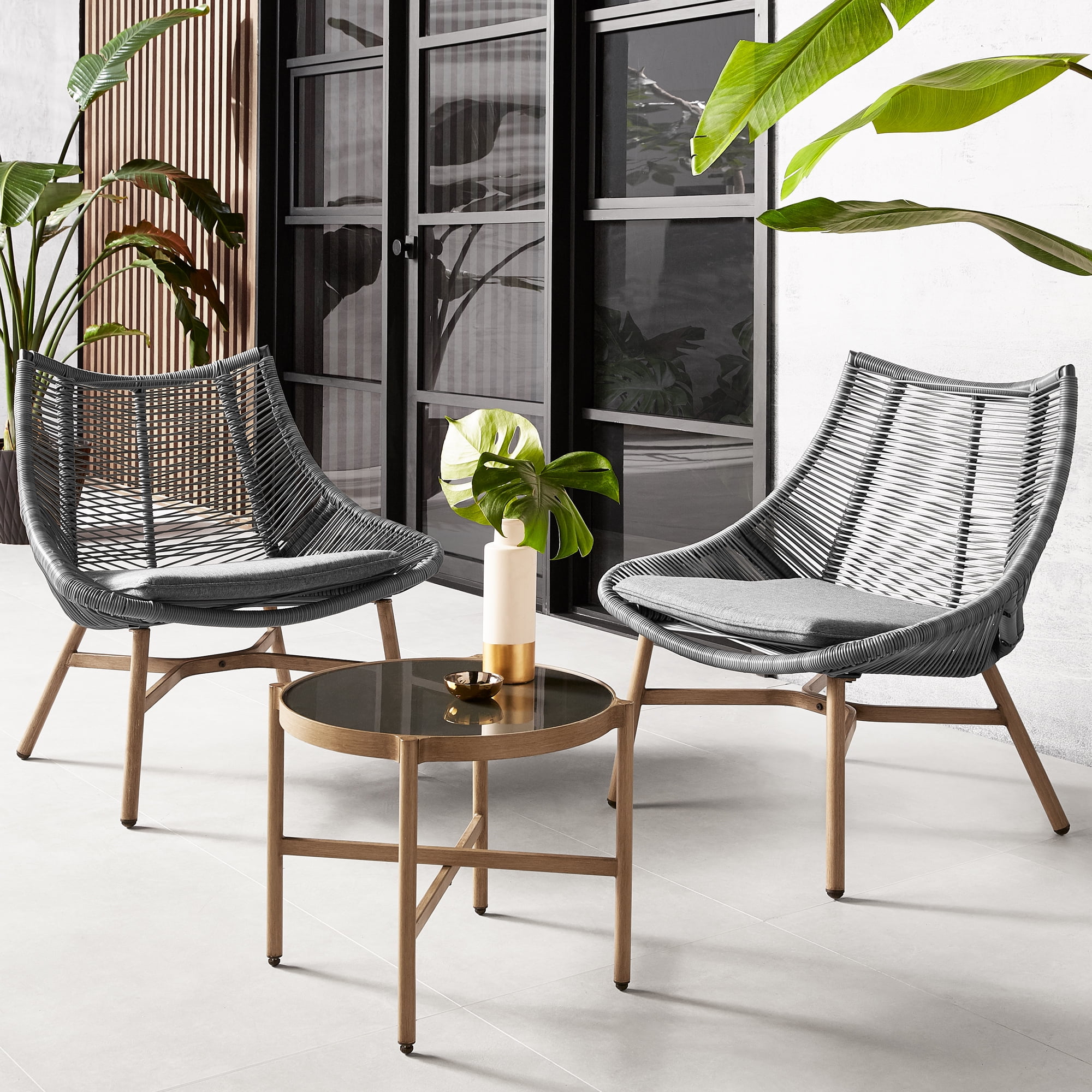 Mainstays Belden Park 3-Piece Outdoor Patio Bistro Set, Red 3 piece outdoor patio bistro set Chairs feature button-tufted back cushions Tempered glass top side table Durable steel frame for a long life One part of the entire Mainstays Belden Park collection of outdoor furniture (other pieces sold separately) Easily assembled with the included instructions Chair weight capacity 250 lbs. Warranty: 2 years Easy to care for: use a mild solution of soap and water; pat out excess moisture with dry towel after rinsing; air dry. Never use bleach or strong solvents for cleaning. Available in Red, Beige, and Blue, Model # MSS129900298046 (Red), MSS129900298047 (Beige), MSS129900298048 (Blue) Arrives in 1 box: 29.92″ x 26.38″ x 26.77″ Site to Store Pickup Note: This item is packaged in 1 large box that may not fit in a standard-sized vehicle. Please make sure you have a large car or truck for store pickup. For product replacement parts email customer service at [email protected] or call Monday – Friday 10:30am – 4:30pm EST 1-877-980-6928.