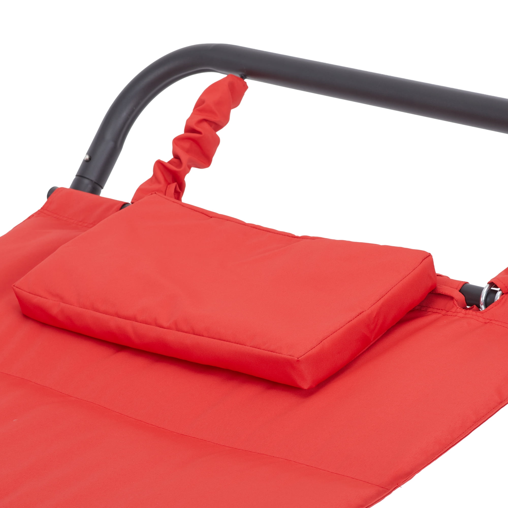 Mainstays Belden Park Polyester Hammock with Stand and Pillow for Outdoor , Multi color This 1-person hammock can support up 250lbs Constructed of rust-resistant powder-coated steel frame with a matte carbon finish Designed with a hanging pocket to keep your favorite reading materials and other items within reach Comes with a matching pillow for enhanced comfort 1-year limited warranty Easily assembled with the included instructions Available in Green, Tan, Blue, and Red Model # TAHMG0726 (Green ), TAHMG0727 (Tan), TAHMG0728 (Blue), TAHMG0729 (Red) Site to Store Pickup Note: This item is packaged in one large box that may not fit in a standard-sized vehicle. Please make sure you have a large car or truck for store pickup.