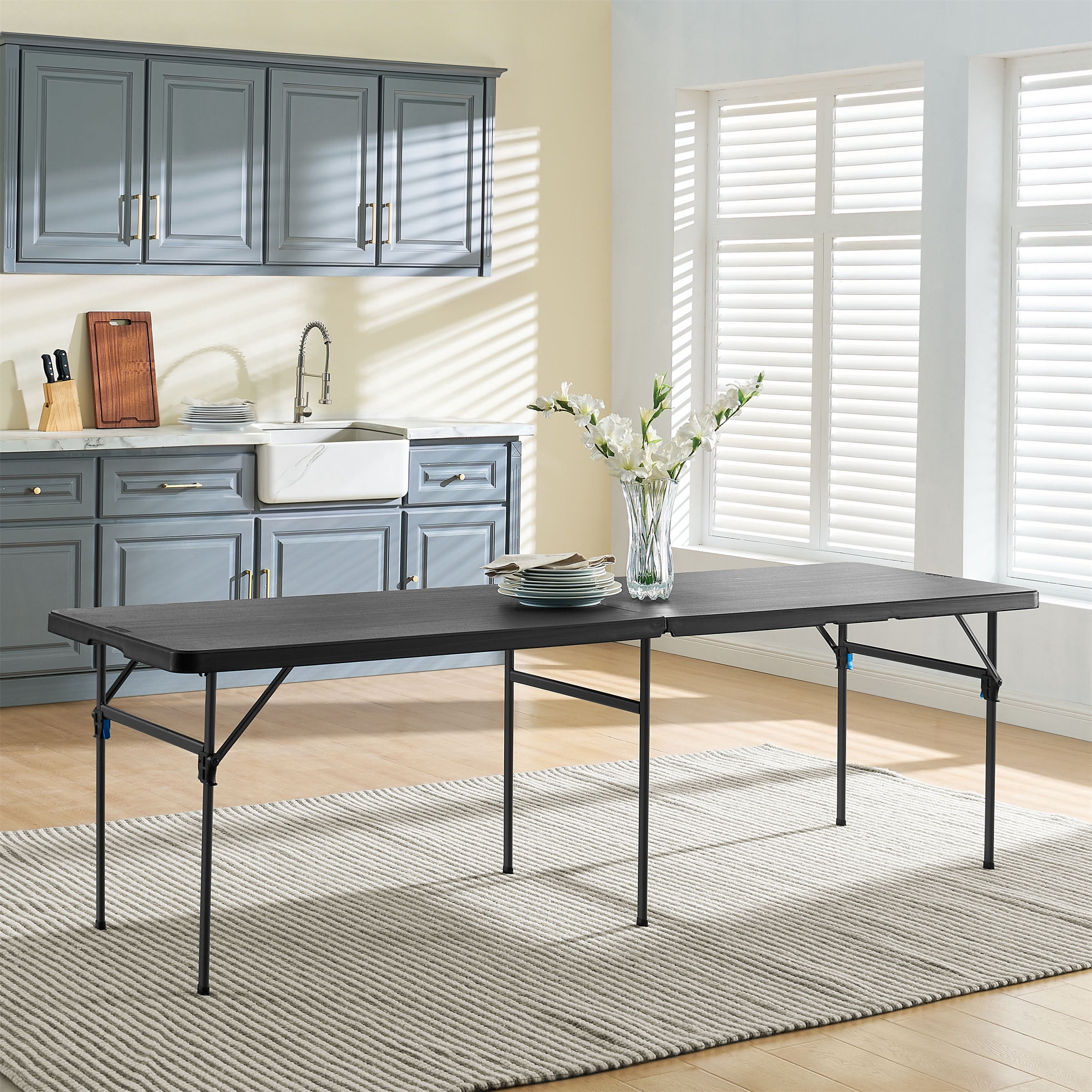 Mainstays Black 8 Foot Easy Fold Folding Plastic Table, Heavy Duty, Indoor Outdoor, Scratch Resistant, Stain & UV Damage
