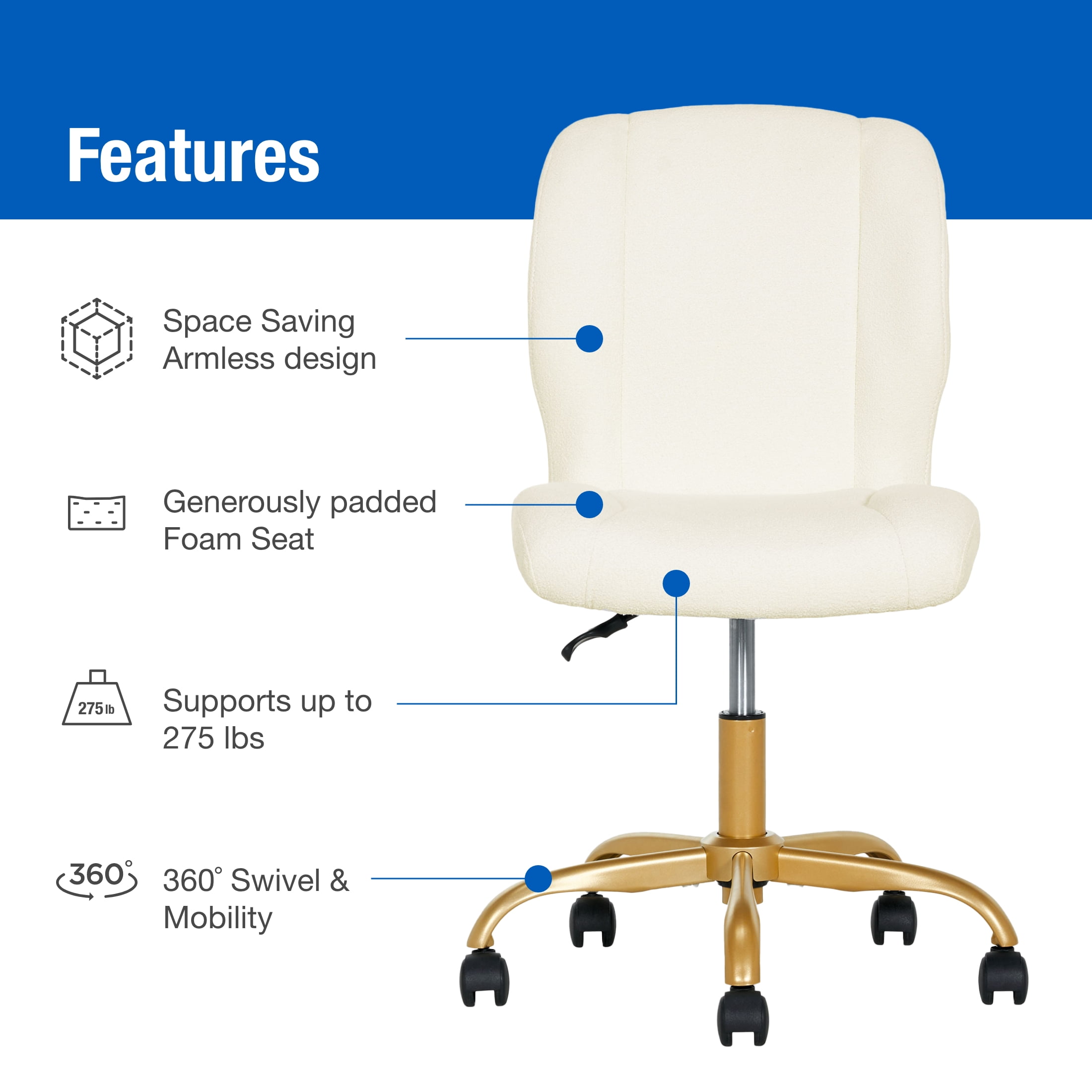 Mainstays Bouclé Armless Office Chair for Adults and Teens, Cream