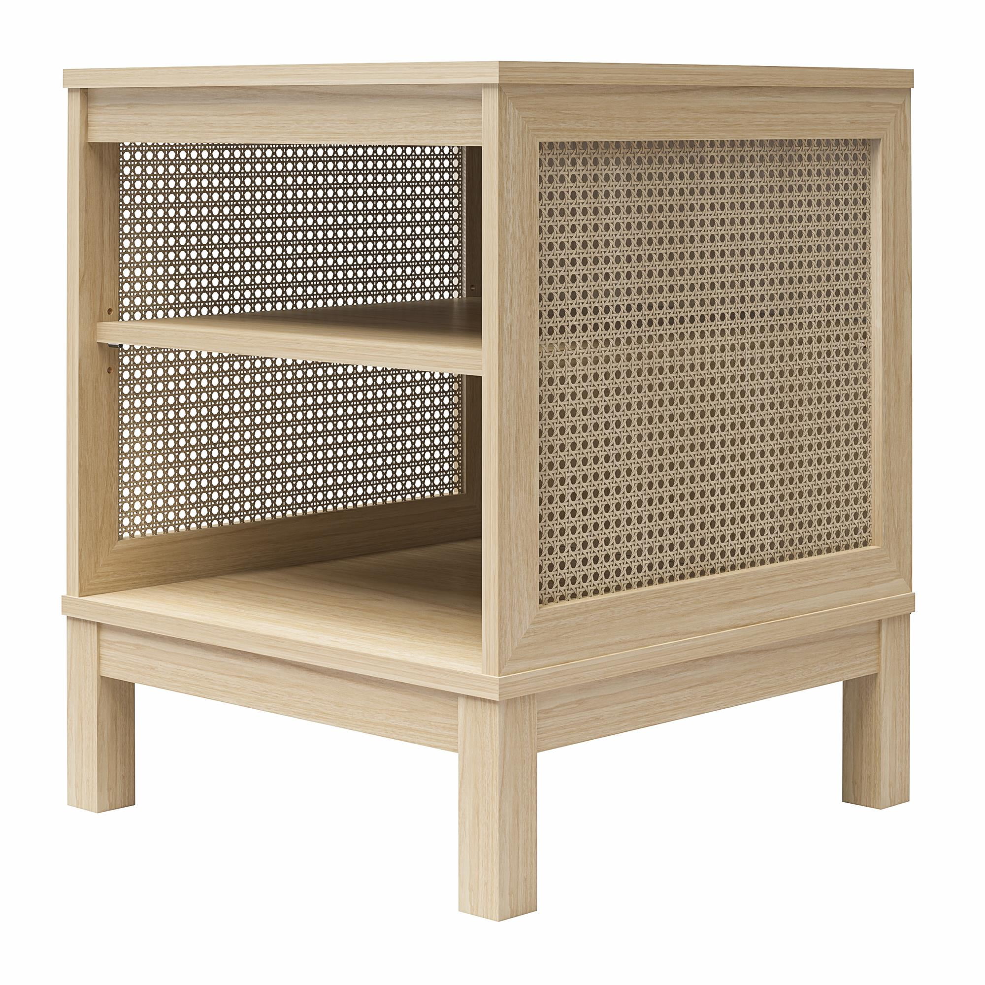 Transform your living space with the Mainstays Cane Side Table, a quintessential piece of boho chic design. Crafted from laminated engineered wood and natural cane side inserts, this end table exudes both style and durability. The standout feature of this piece lies in its two natural cane side accents, infusing a touch of rustic elegance into any room. With two open shelves, it offers versatility in storage and display, allowing you to showcase your favorite decor items or keep essentials within easy reach. Whether used as a bedside companion or a charming addition to your living room ensemble, the Mainstays Cane Side Table effortlessly marries form with function, promising to elevate your home decor to new heights of sophistication and style. The Cane Side Table requires assembly upon delivery. Once assembled it measures to be: 24″H x 20″W x 20″D.