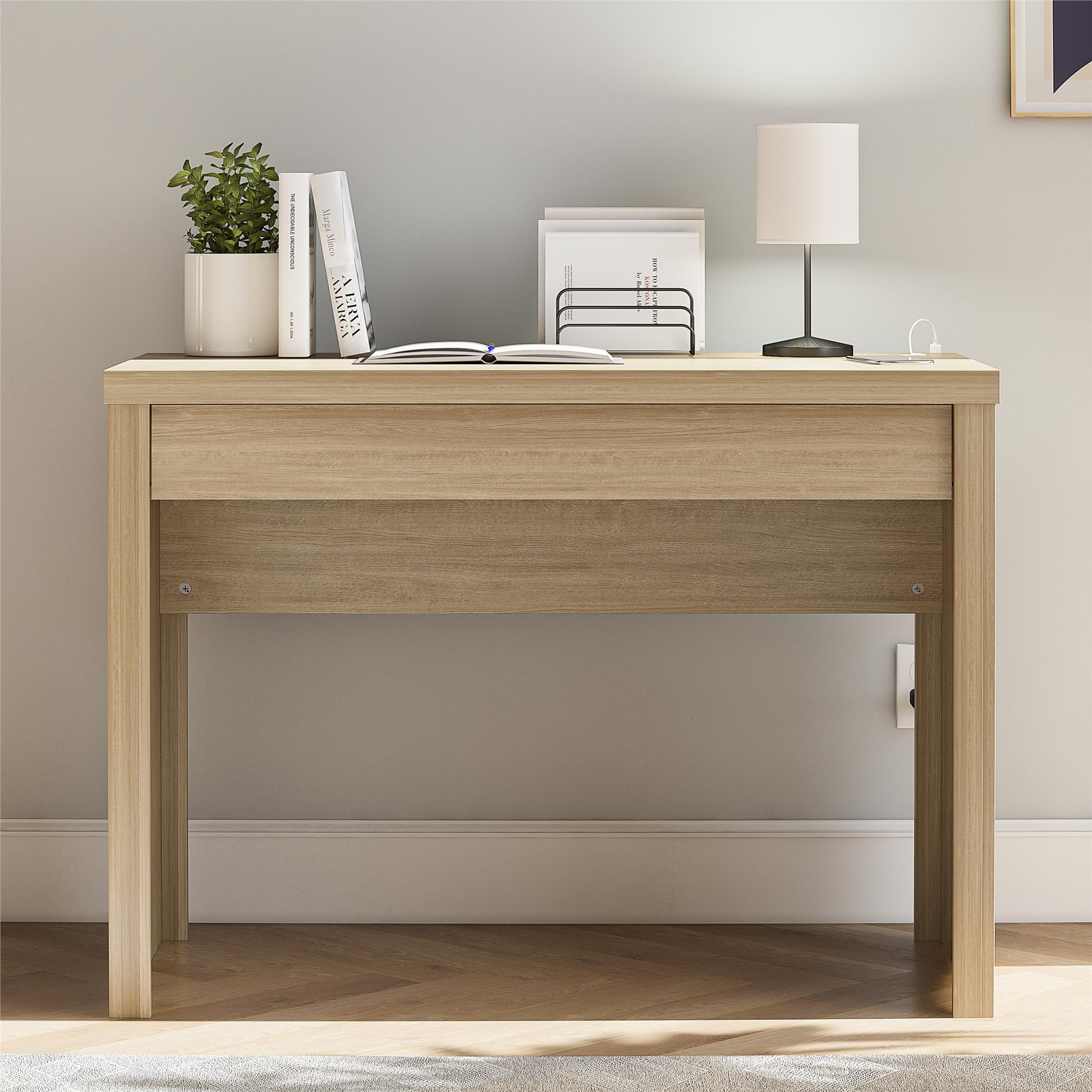 Mainstays Cooper Writing Desk with USB, Natural Teak