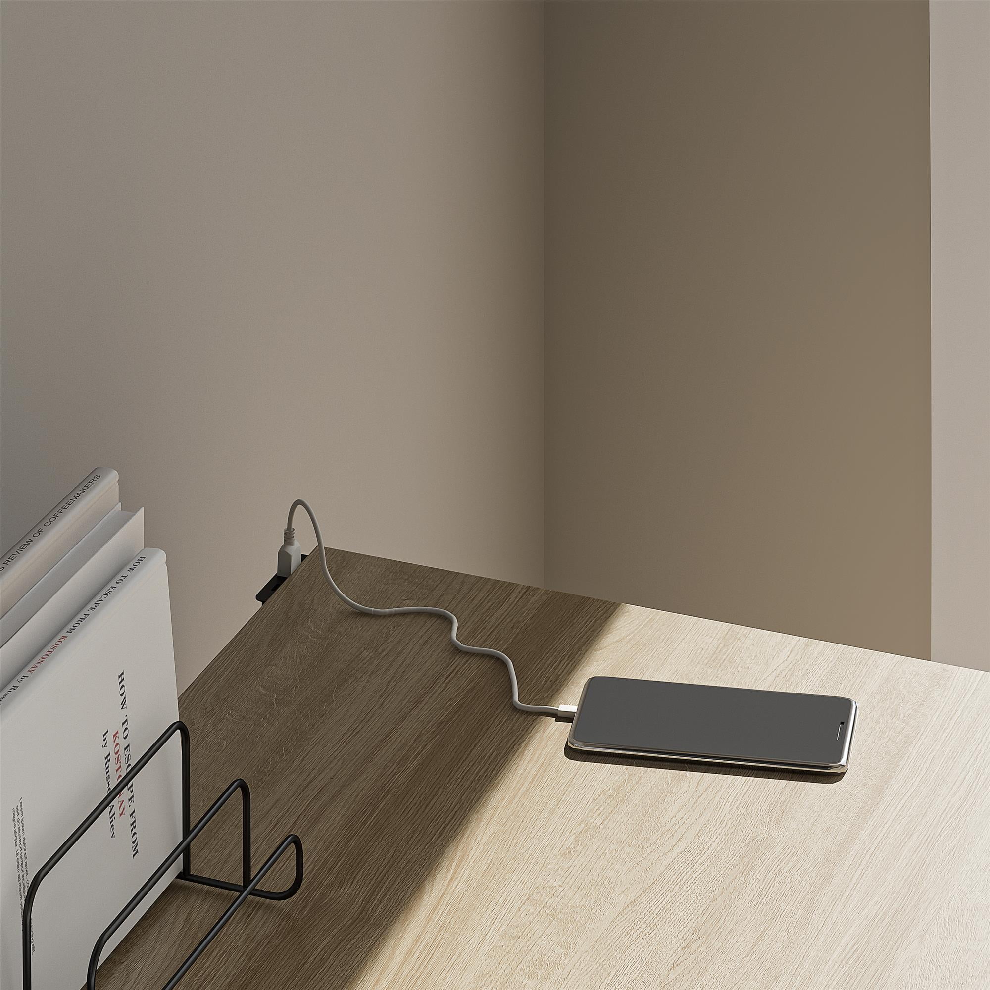 Enhance your workspace with the Mainstays Cooper Writing Desk with USB. This sleek, modern desk features a minimalist design with a modesty panel, making it a chic addition to any home office, college dorm, or teen’s room. The desk includes a practical drawer for organizing writing utensils, tablets, and other essentials, ensuring your space stays tidy and efficient. Stay powered up with hidden USB A and USB C-type plugs at the back of the desk, complete with an included cord, power adapter, and clips to keep everything neatly tucked away. The Cooper is crafted from durable engineered wood with a beautiful laminate finish to maintaining a cute and contemporary look. Ideal for your computer or laptop, the Mainstays Cooper Writing Desk is a stylish and functional choice for studying, working, or any creative endeavor. The computer desk ships in one flat box and requires assembly by two adults. Assembled dimensions: 42”W x 30”H x 20”D.