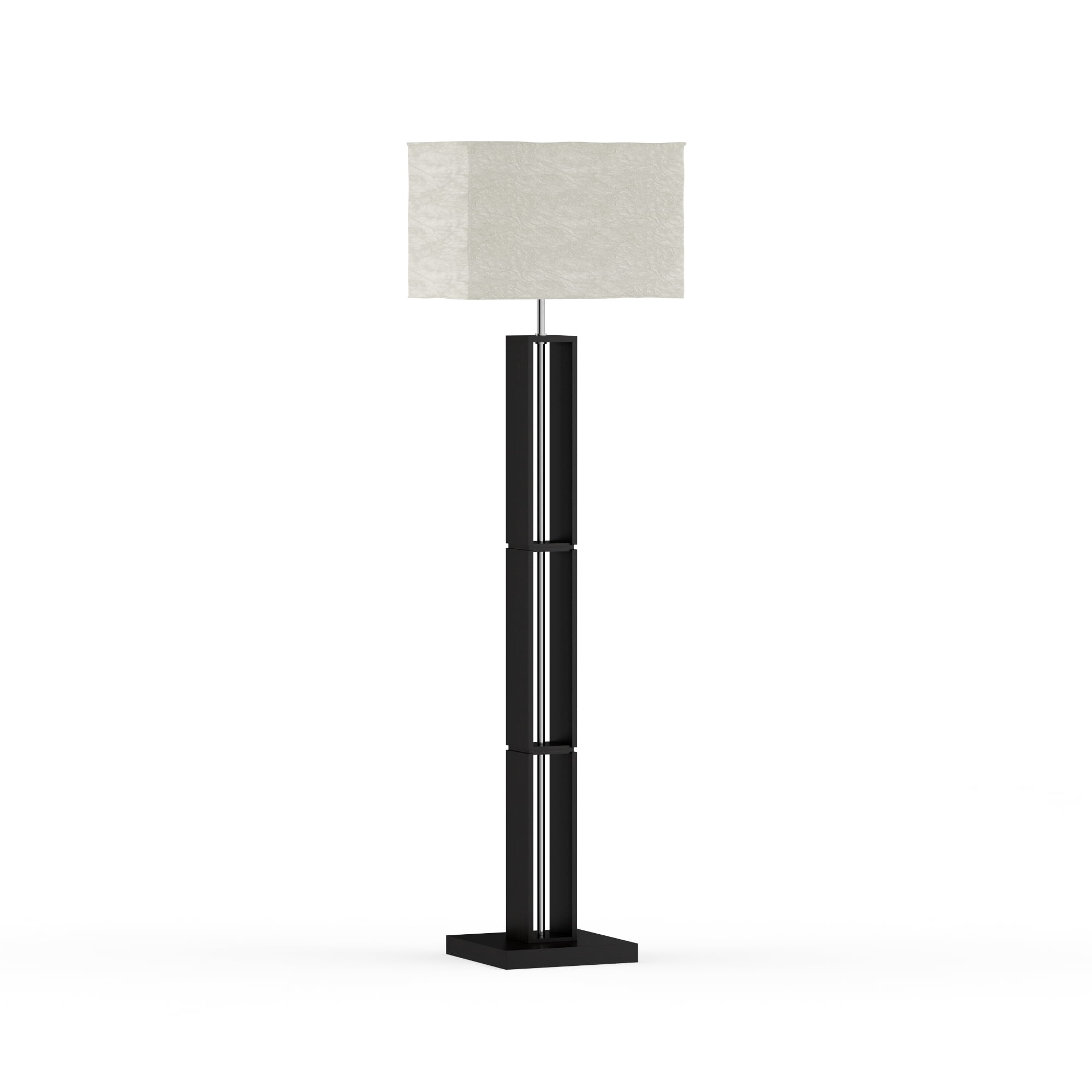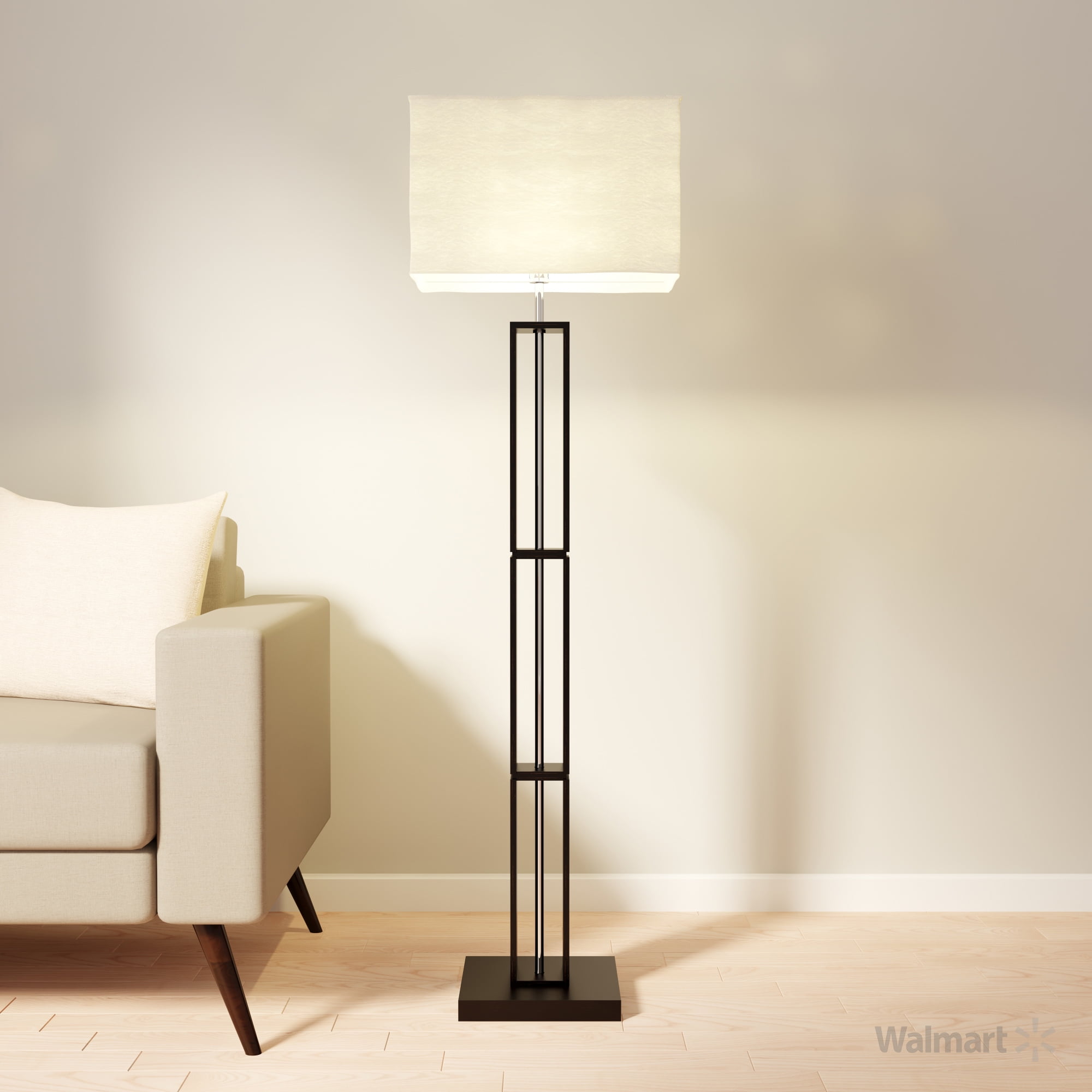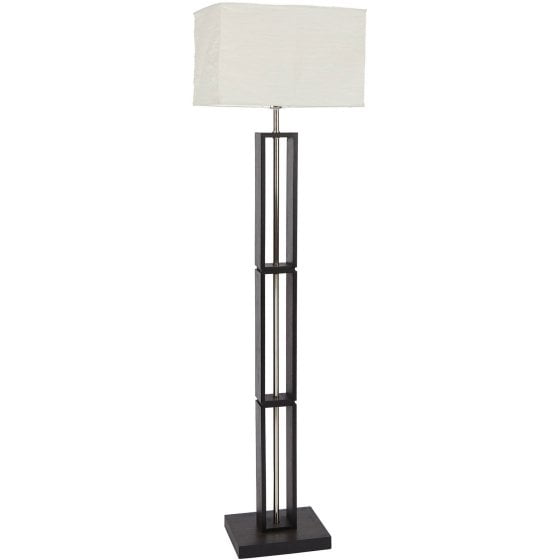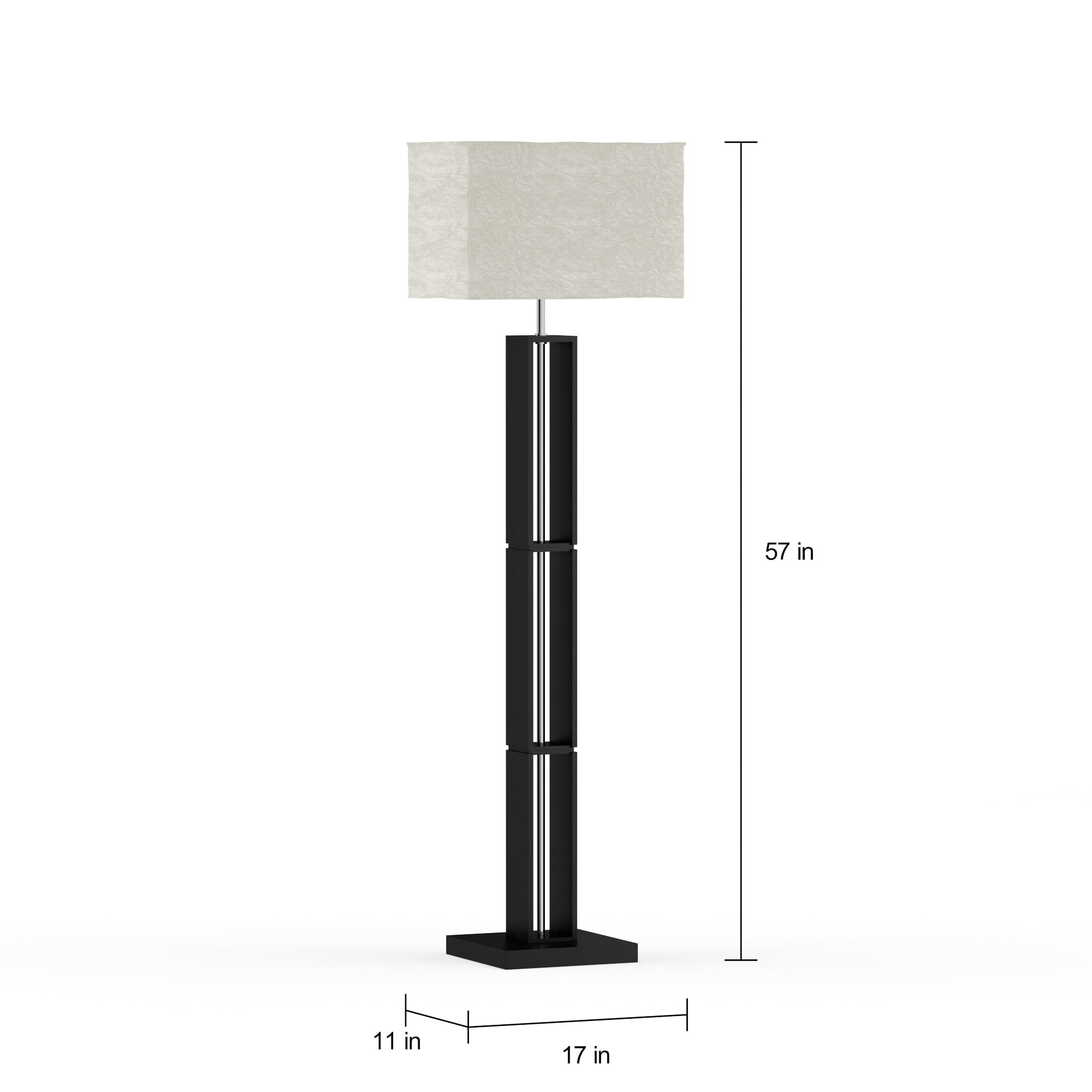 Mainstays Dark Wood Floor Lamp with Rice Paper Shade Constructed of metal and wood Dark wood finish for a stylish look Features a rice paper lamp shade for soft lighting Some assembly required for easy setup On/off rotary light switch for convenient operation