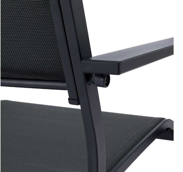 Mainstays Dashwood 39″ Steel Outdoor Dining Table, Black Stylish, sturdy, square outdoor dining table ideal for entertaining guests at parties, barbecues, and special gatherings Black, metal table features a slatted-top design and is roomy enough to comfortably fit up to 4 armchairs Constructed of powder-coated, rust-resistant steel for long-lasting durability Includes capped, 2″ hole for umbrella (not included) Modern Minimalist Home Decor Style Materials: Steel Maximum load weight: 125 lbs Dimensions: 39.37″L x 39.37″W x 28.54″H Weight: 43 lbs Care: Before using, wipe product completely with soft, dry cloth; always store and/or cover patio furniture in a cool, dry place and away from direct sunlight when not in use Mainstays Dashwood Outdoor Dining Armchair Comfortable, long-lasting, outdoor dining armchair set ideal for entertaining guests at parties, barbecues, and special gatherings Chair frames constructed of durable, powder-coated, rust-resistant steel; seats and backs crafted of fade-resistant sling fabric Complements almost any other outdoor furniture and decor for years of comfort Materials: Steel, sling Maximum load weight per chair: 350 lbs Seat height: 16.73″; seat back height: 23.62″ Dimensions: 25.98″D x 26.97″W x 37.99″H (each chair) Weight: 15.43 lbs (each chair) Care: Before using, wipe product completely with soft, dry cloth; always store and/or cover patio furniture in a cool, dry place and away from direct sunlight when not in use.