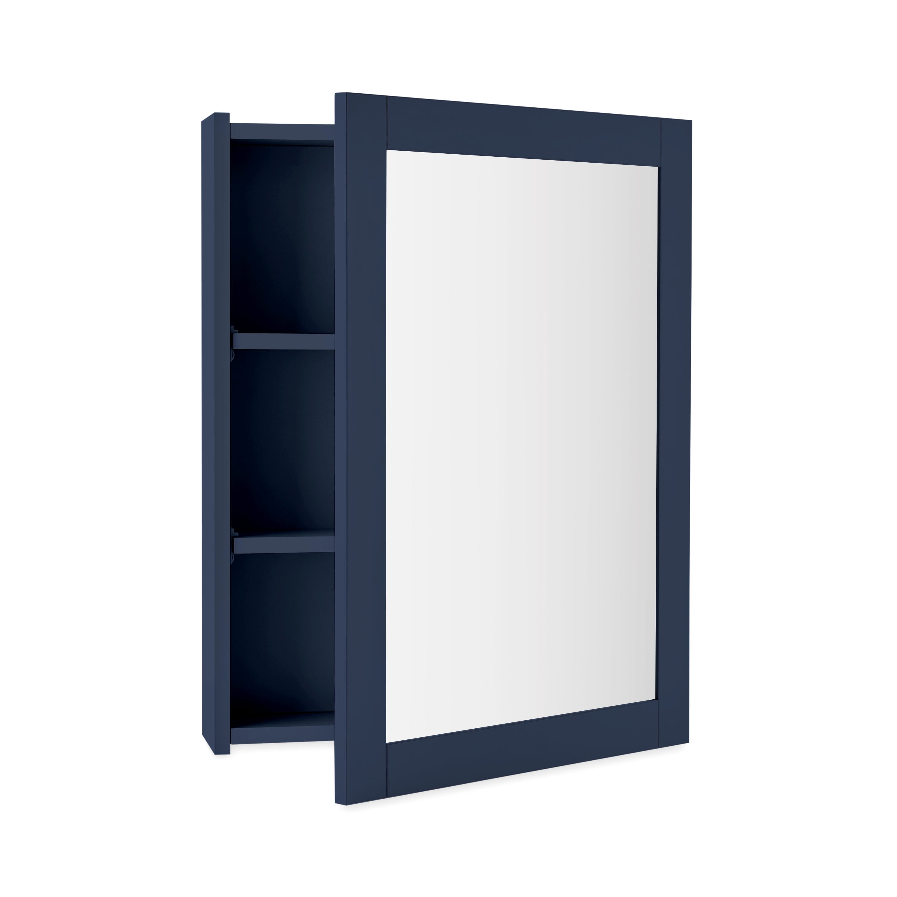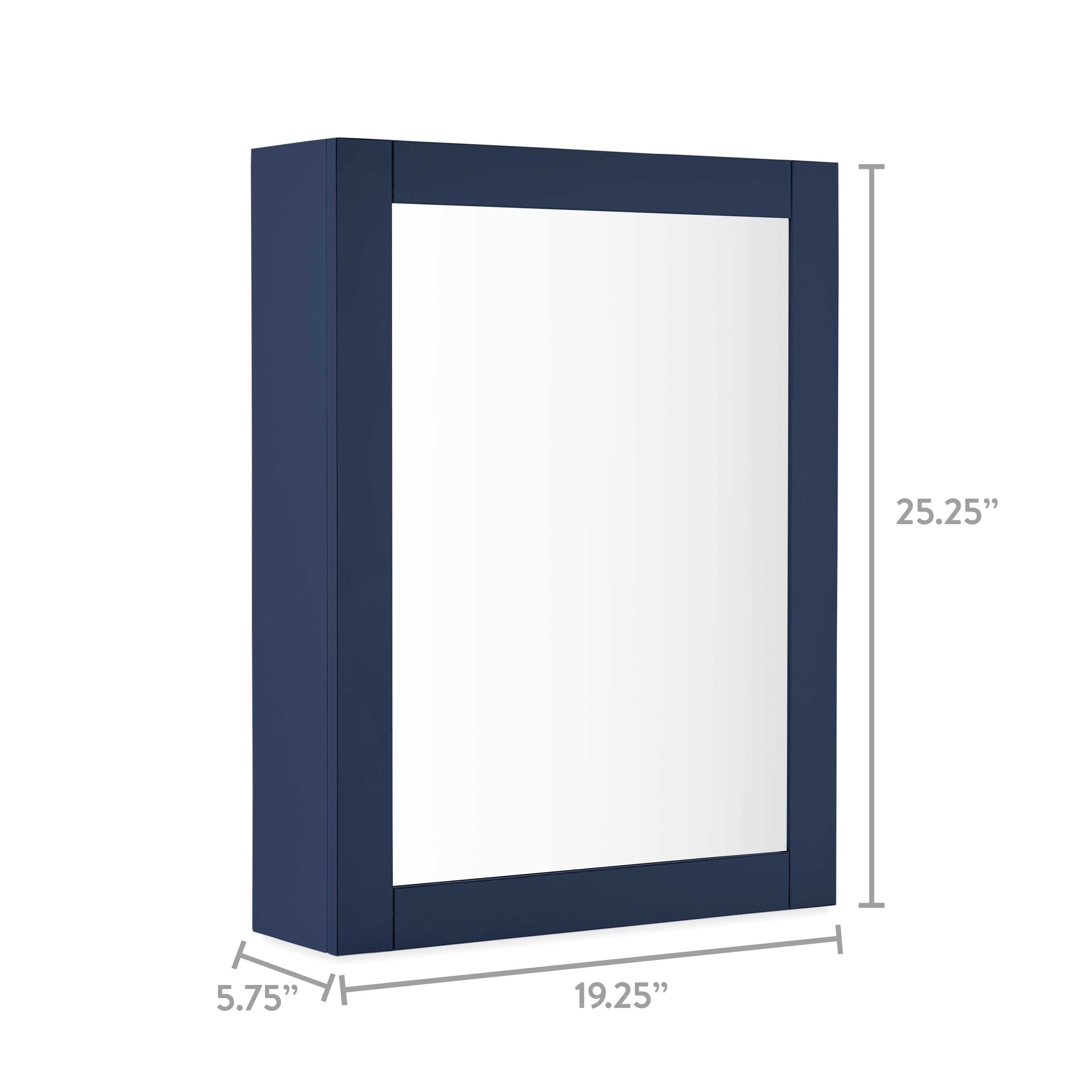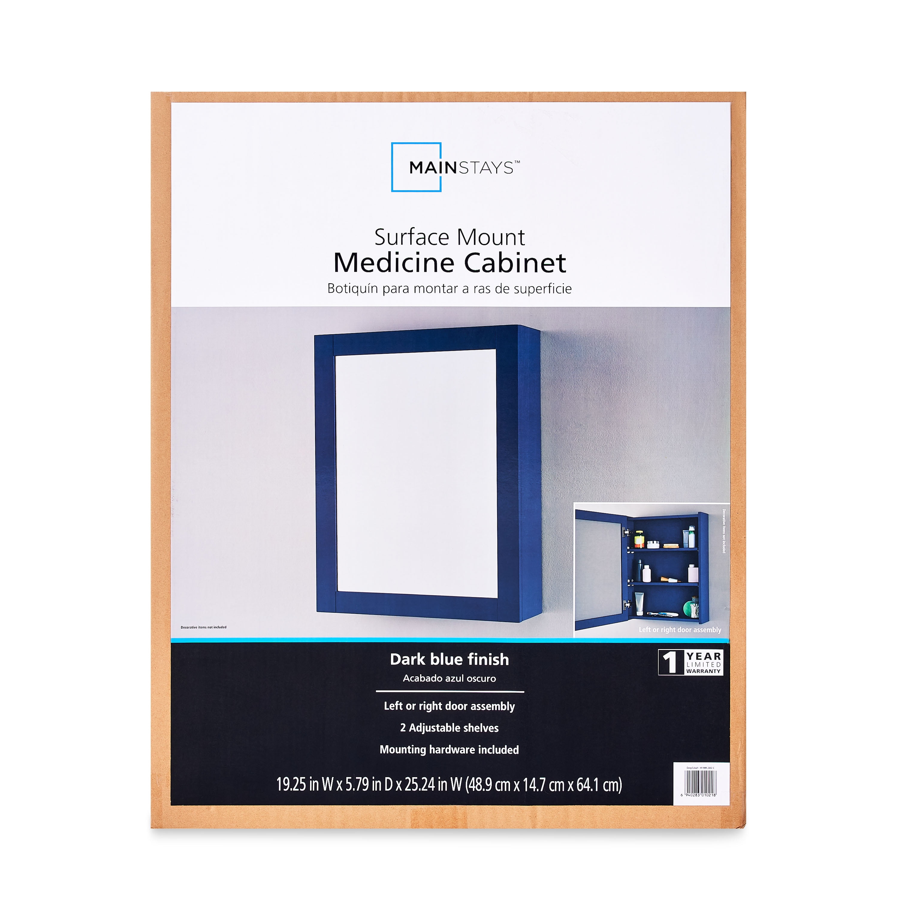 Mainstays Mirror Medicine Cabinet with Adjustable Shelves, Deep Cobalt: Durably constructed Features two adjustable shelves Organize various toiletries, decorative accessories and more Includes a mirror on the front Makes a classic statement in your bathroom and seamlessly match other bathroom hardware and decor Pair with other Mainstays products Dimensions: 19.25″W x 5.8″D x 25.24″H