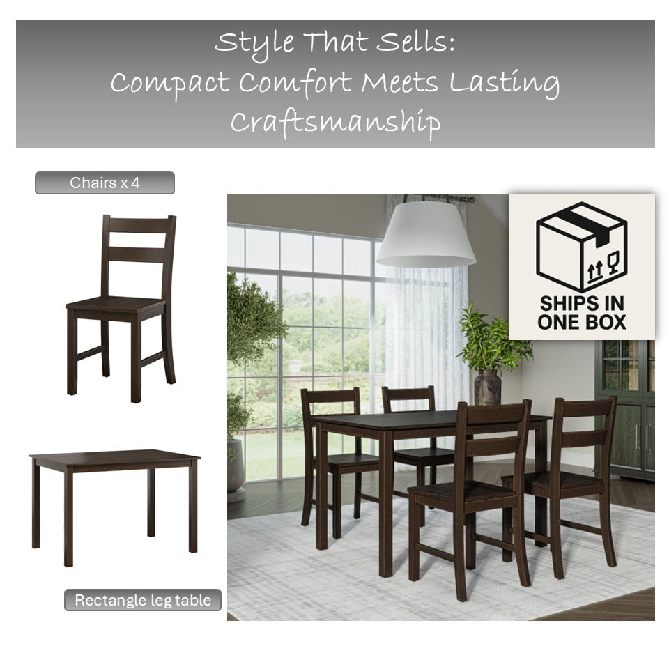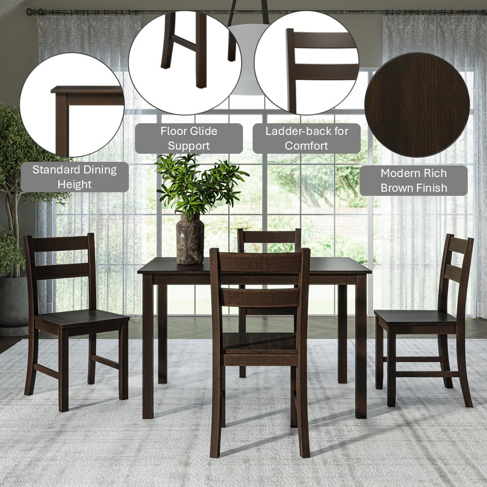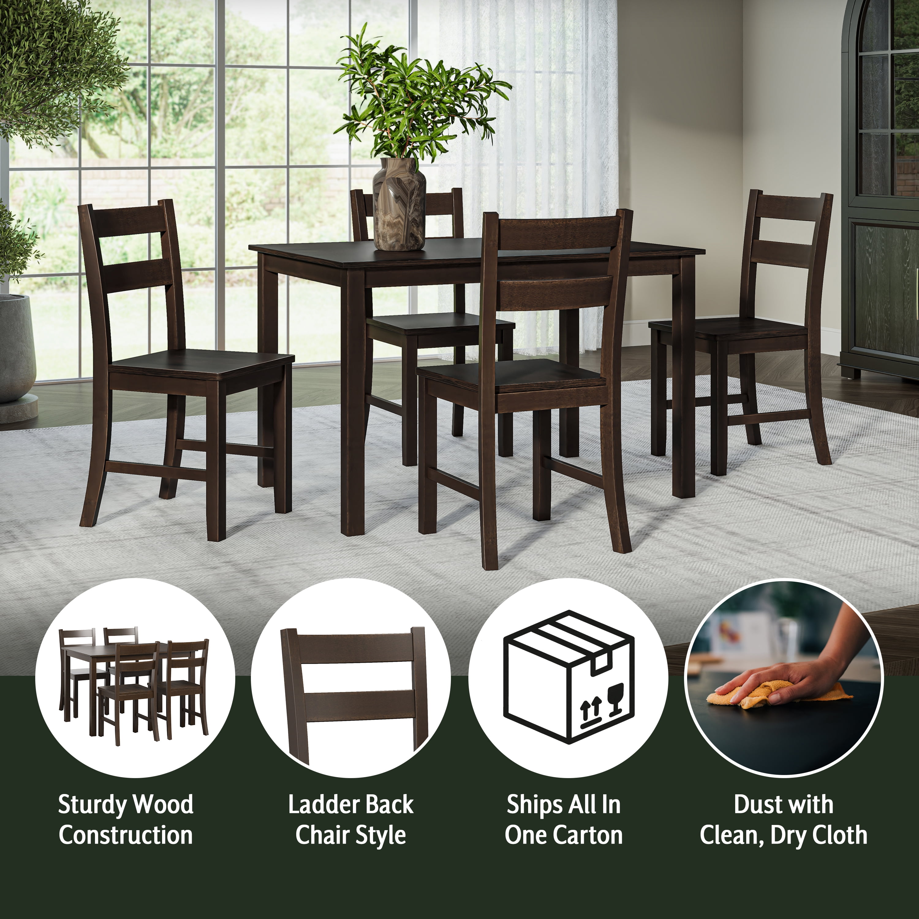 Mainstays Eastwood 5 Piece Wooden Dining Set, Dark Brown