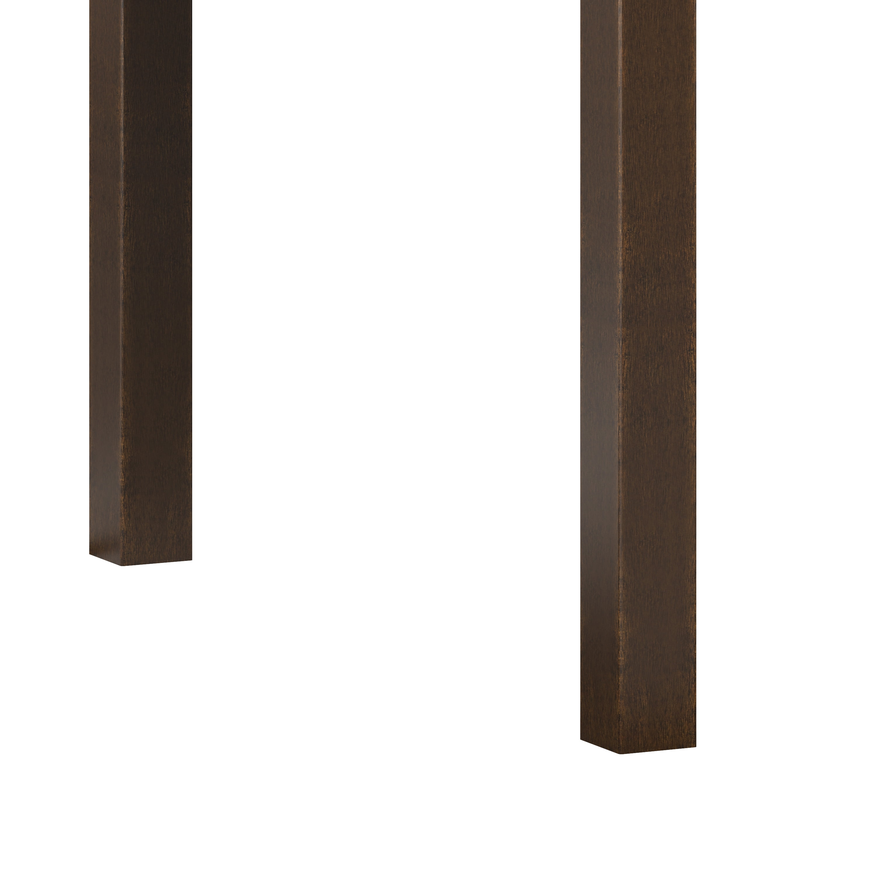 Sturdy indoor dining set with rectangle table and 4 chairs Constructed of rubberwood, MDF and Oak in a brown finish Chairs have a horizontal back style providing exceptional spine comfort Chair: 35H x 16W x 18.75D; Table: 30.25H x 32.25W x 46D Assembly required Ships one table and four chairs in one box Ideal for cozy dining rooms or eat-in kitchens Spot or wipe clean Chair recommended weight limit: 250lbs For residential use only