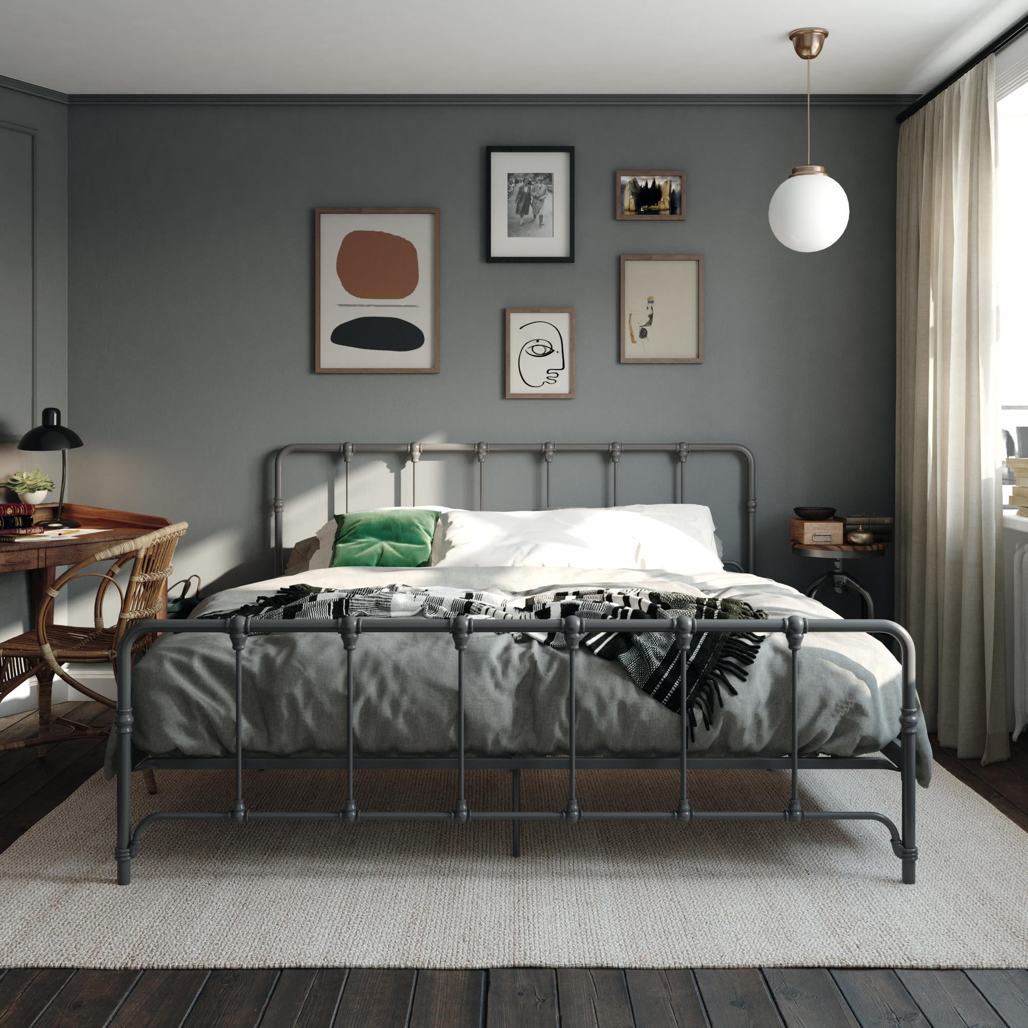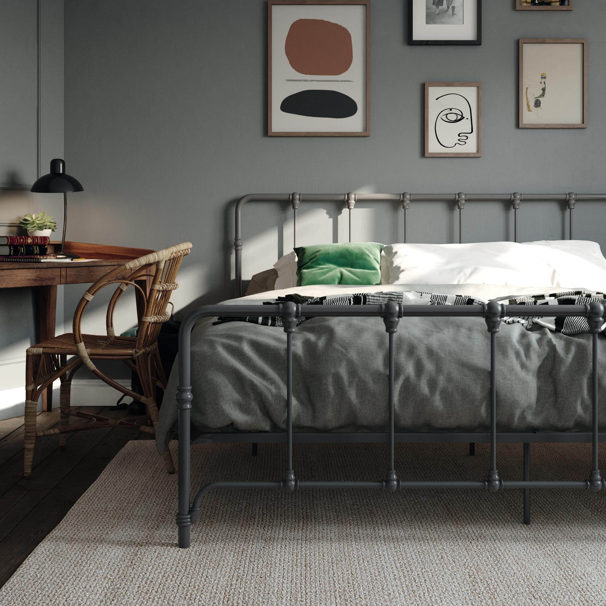 Mainstays Farmhouse Metal Bed, King, Gray
