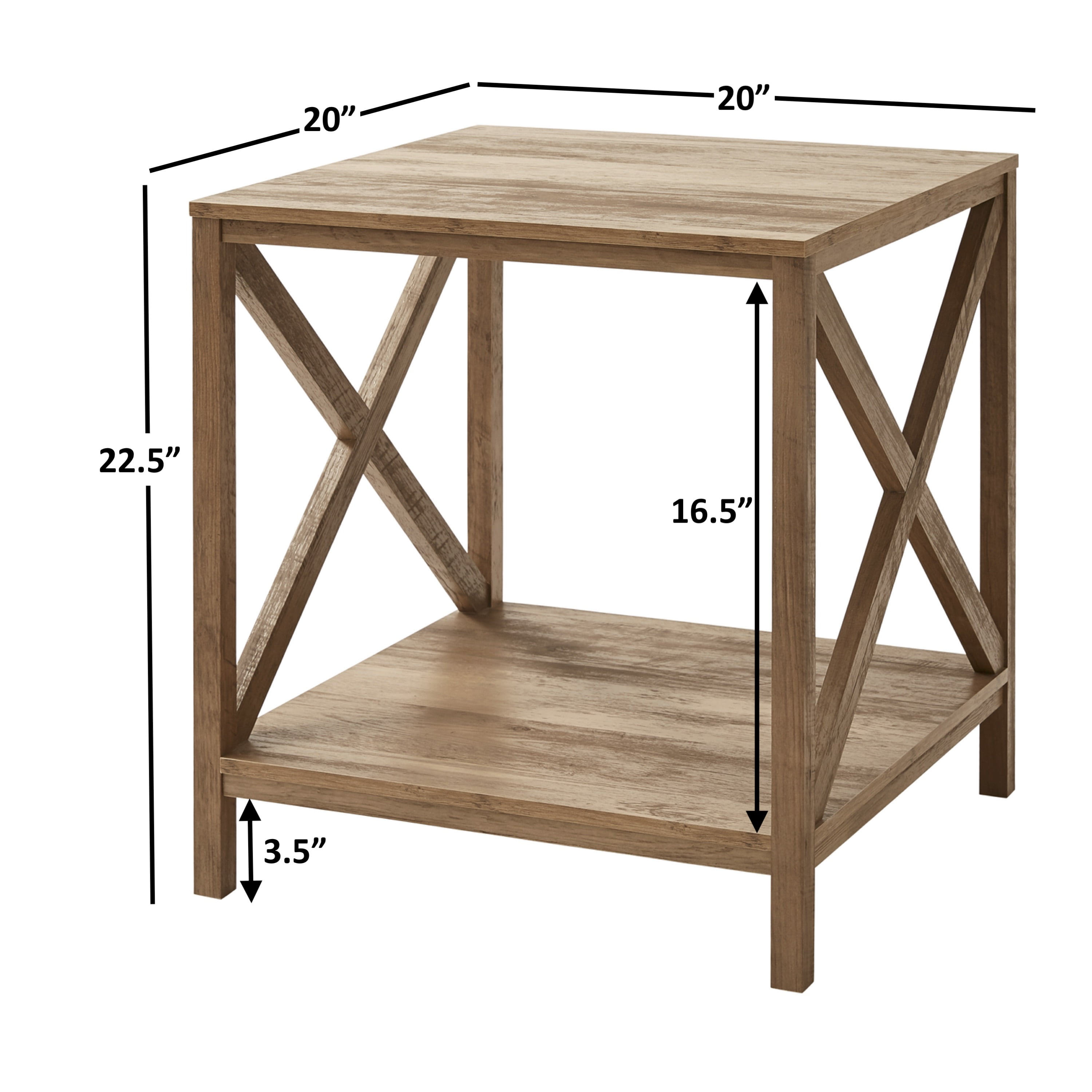 Mainstays Farmhouse Square Side Table with Storage, Rustic Weathered Oak