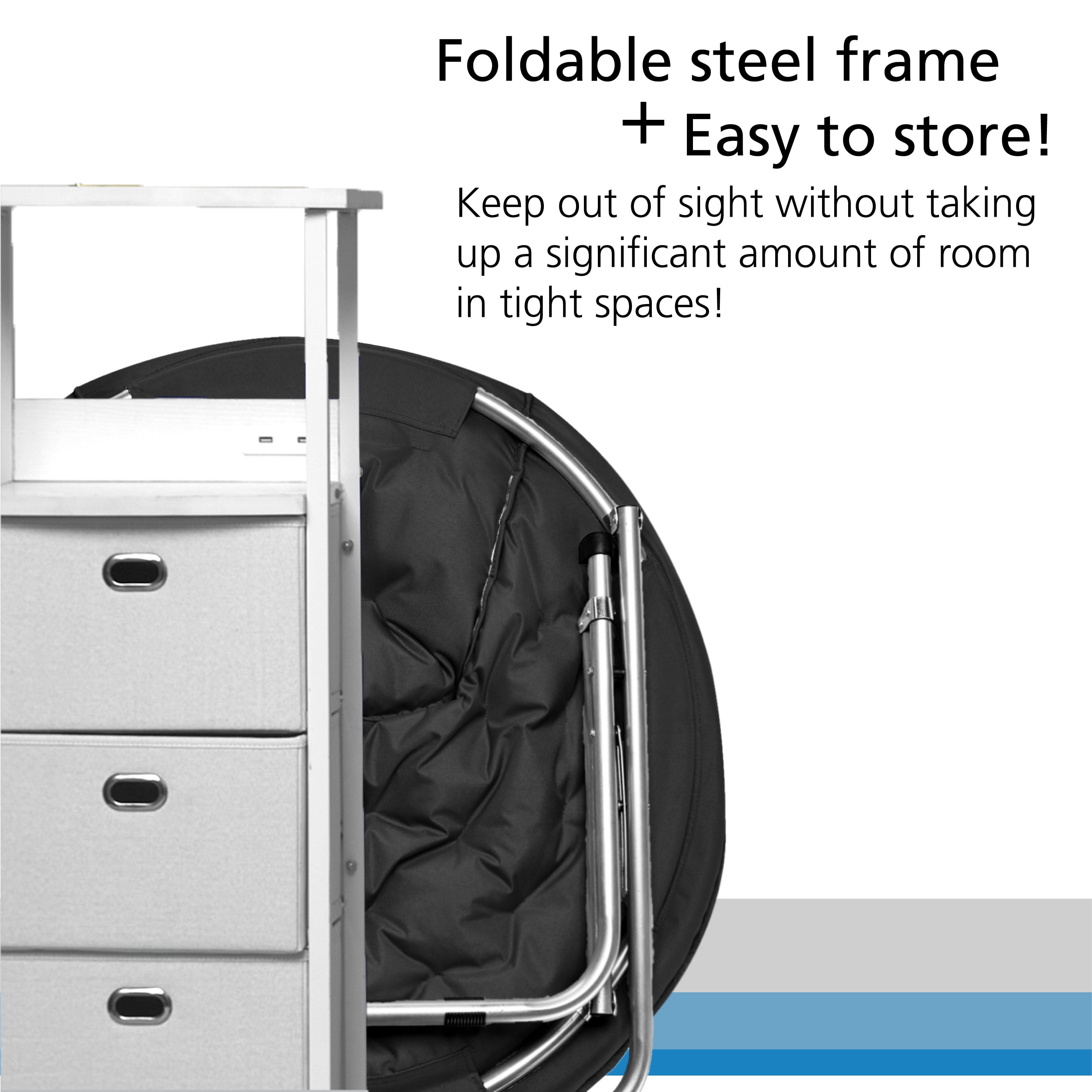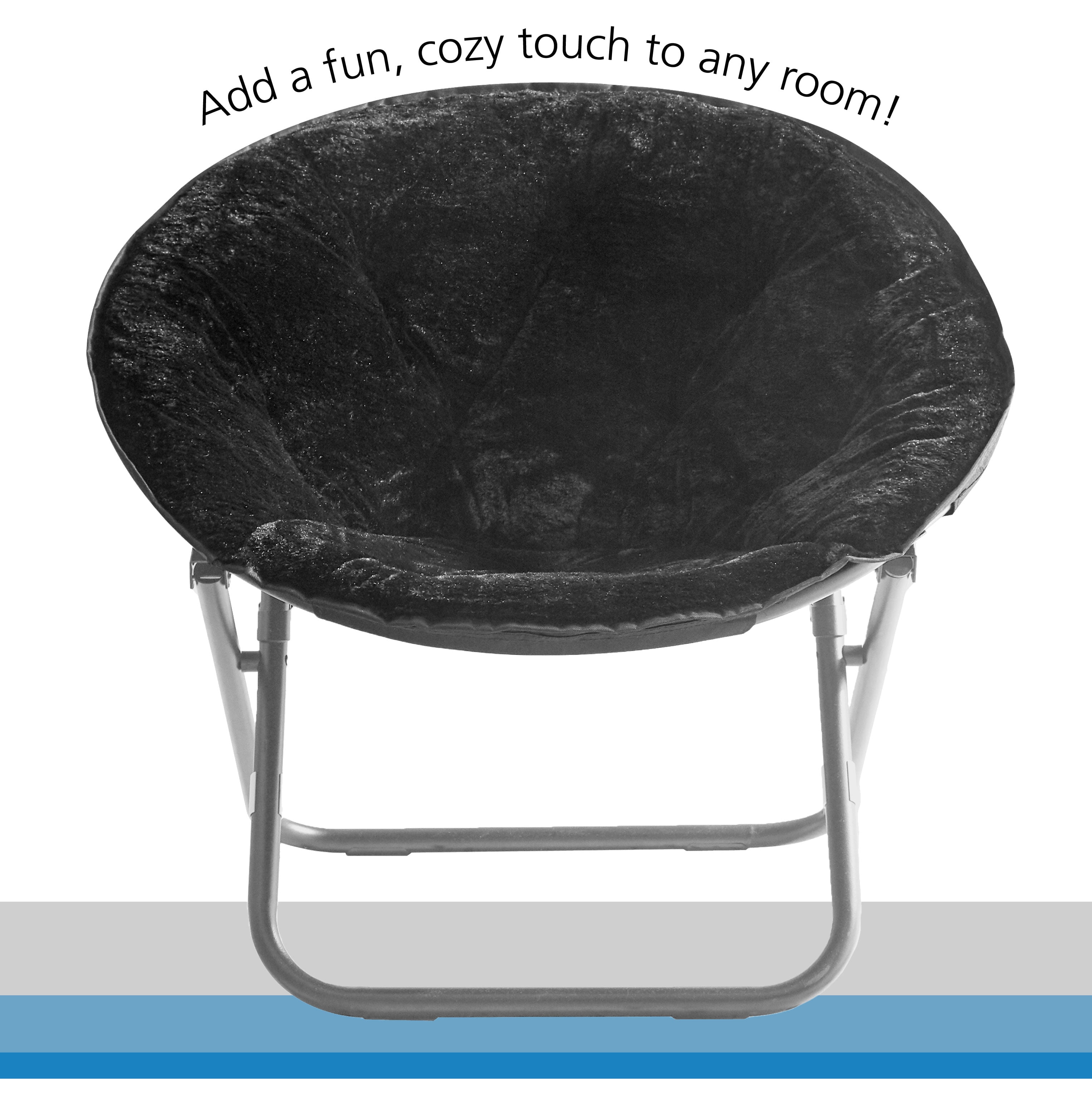 Mainstays Faux Fur Folding Saucer Chair, Black, for Tweens, Teens, and Adults