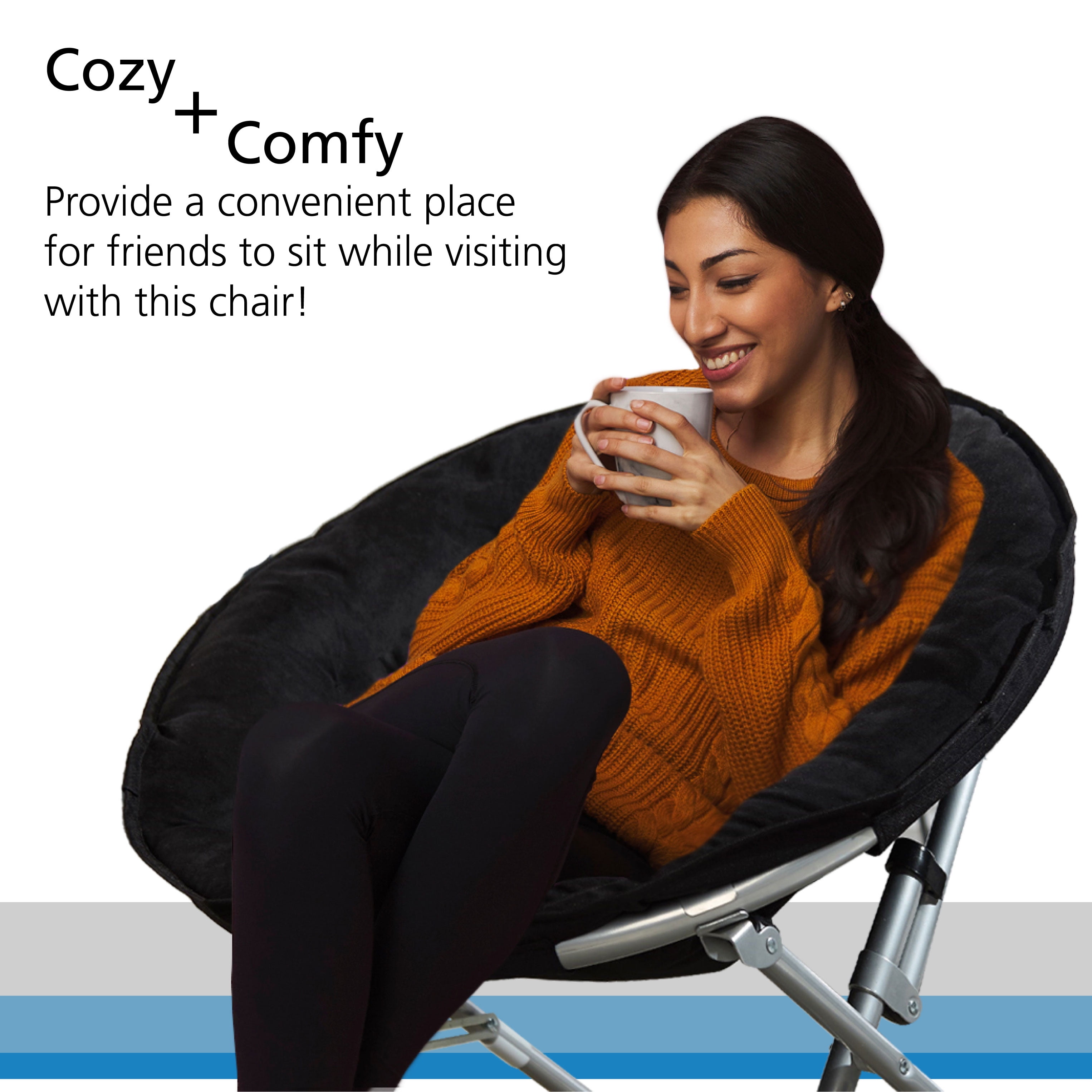 Soft and Spacious Seating: Enjoy a soft and wide seat with the Mainstays Faux Fur Saucer™ Chair, providing a comfortable and cozy space for lounging or relaxing. Foldable Steel Frame: The chair features a foldable steel frame, offering both convenience and portability for easy storage or transport, making it an ideal choice for dorms or any room. Cool Faux Fur Fabric: The cool faux fur fabric not only adds a stylish touch but also enhances the comfort of the chair, creating a trendy and inviting seating option. Dimensions: 30″ L x 28″ W x 29″ H Sturdy Weight Capacity: With a weight capacity of 225 lbs, the chair provides sturdy support for various users, ensuring reliability and safety during use. Perfect addition to any Teen or Adult! faux fur saucer chair folding saucer chair comfy chair for teens fuzzy chair for adults portable lounge chair plush saucer chair foldable accent chair soft chair for bedroom saucer chair for small spaces casual seating for home foldable floor chair extra seating for guests teen room furniture chair for reading nook dorm room chair gaming chair alternative saucer chair no assembly Mainstays lounge chair