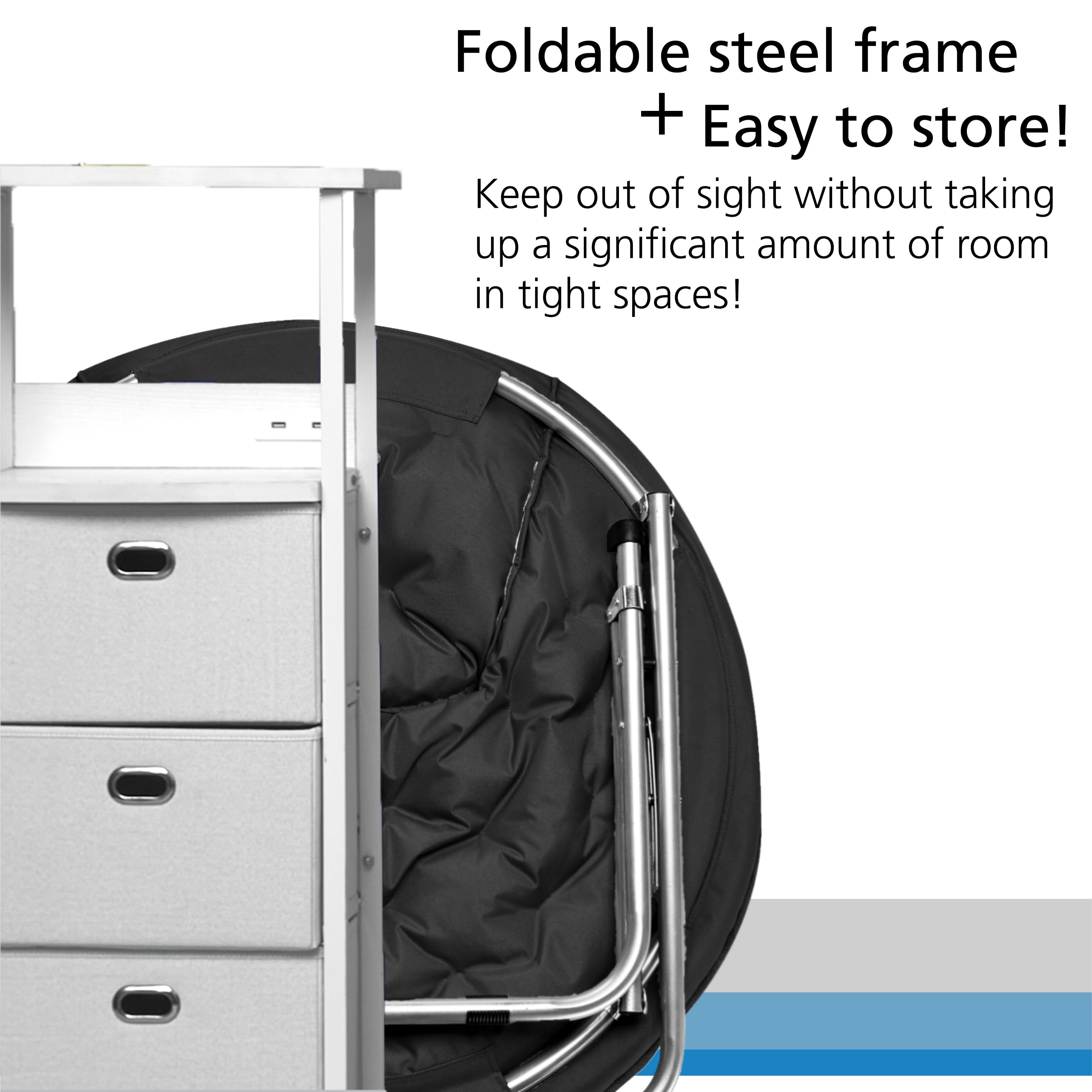 Soft and Spacious Seating: Enjoy a soft and wide seat with the Mainstays Faux Fur Saucer™ Chair, providing a comfortable and cozy space for lounging or relaxing. Foldable Steel Frame: The chair features a foldable steel frame, offering both convenience and portability for easy storage or transport, making it an ideal choice for dorms or any room. Cool Faux Fur Fabric: The cool faux fur fabric not only adds a stylish touch but also enhances the comfort of the chair, creating a trendy and inviting seating option. Versatile Use in Any Room: Great for lounging, dorms, or any room in your home, the Mainstays Saucer™ Chair is a versatile and adaptable piece of furniture. Sturdy Weight Capacity: With a weight capacity of 225 lbs, the chair provides sturdy support for various users, ensuring reliability and safety during use.