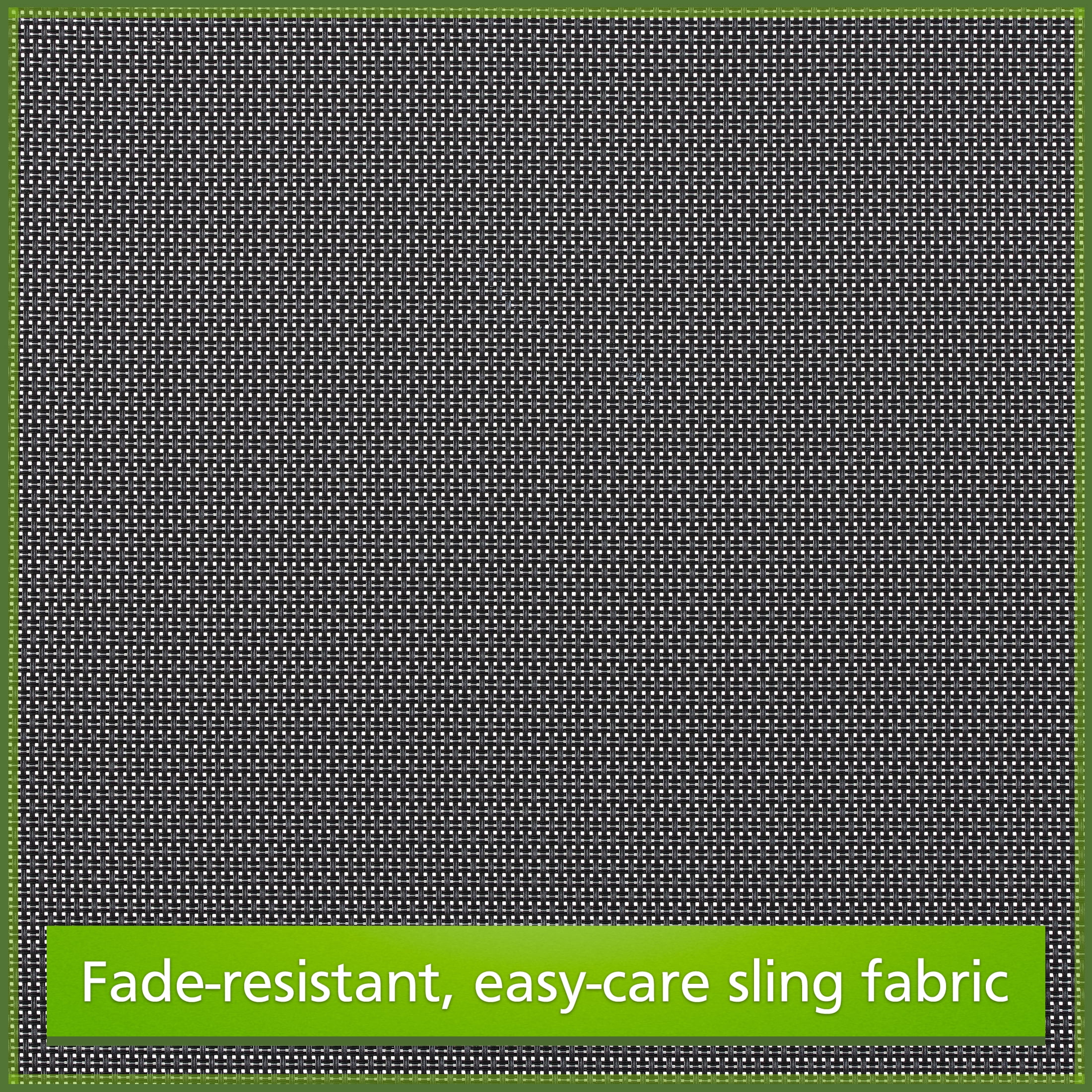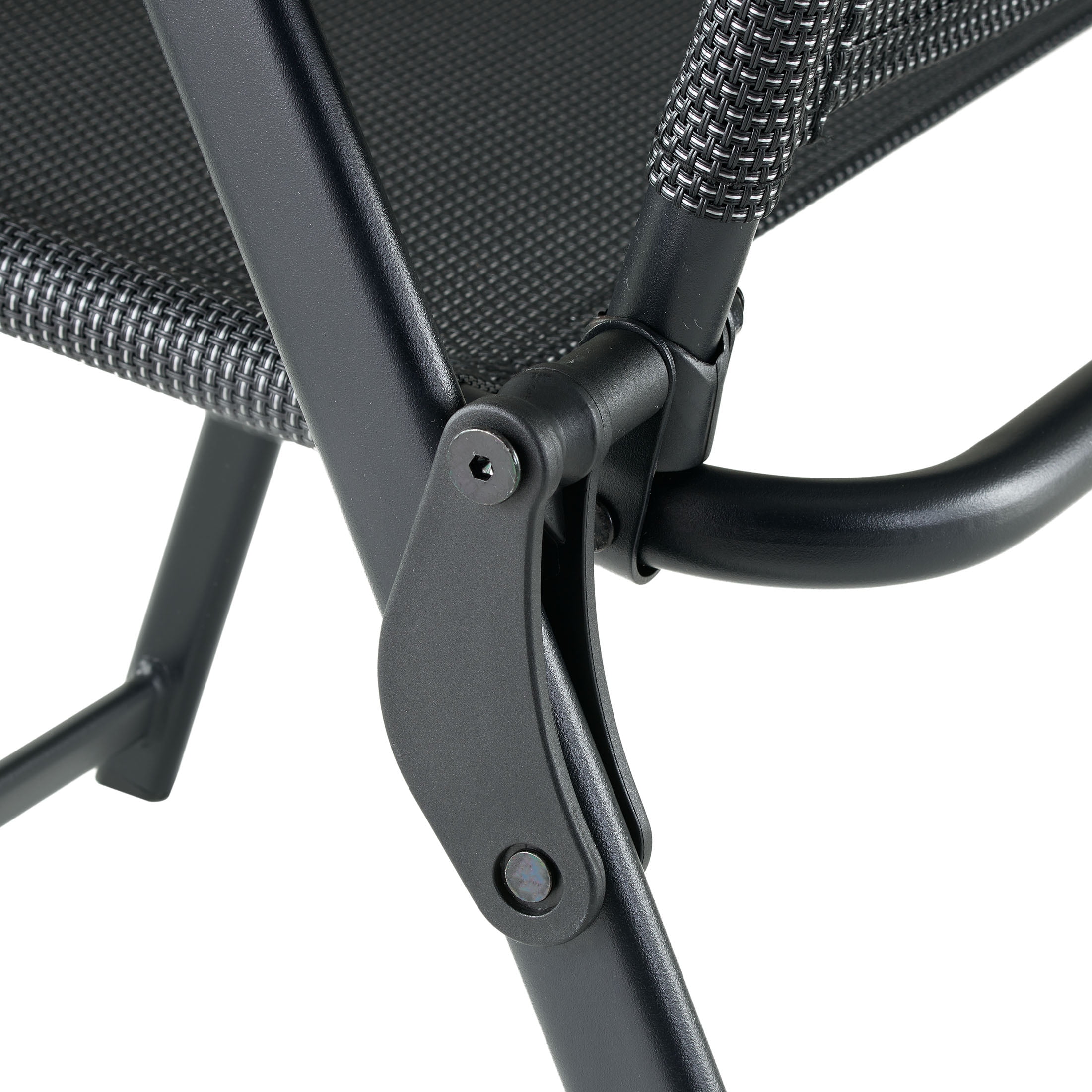 Transform any patio or small outdoor setting into a stylish, comfortable conversation area with the Mainstays Greyson 3-Piece Steel and Sling Folding Outdoor Patio Bistro Set, Black. Featuring a fold-flat design for easy transport and storage, this three-piece bistro set includes two armchairs and one small, round table. The simple, minimalistic look of the set complements almost any other outdoor furniture and decor. The sturdy table and chair frames are constructed of black, powder-coated steel for longevity and the chairs feature black, quick-drying, ventilated sling fabric for all-season durability. Enjoy outdoor chats and snacks with loved ones on any porch, patio, or deck with the Mainstays Greyson 3-Piece Steel and Sling Folding Outdoor Patio Bistro Set.