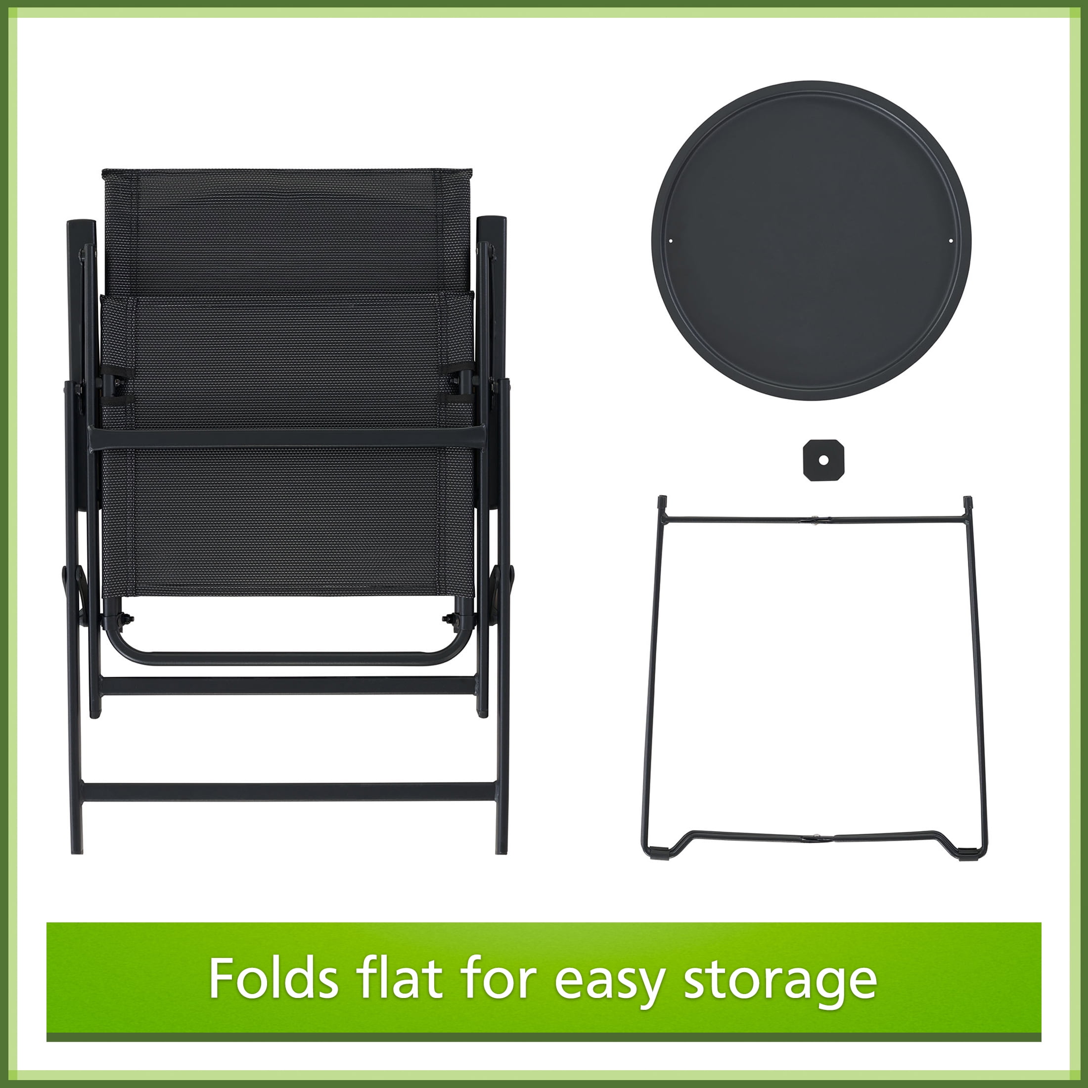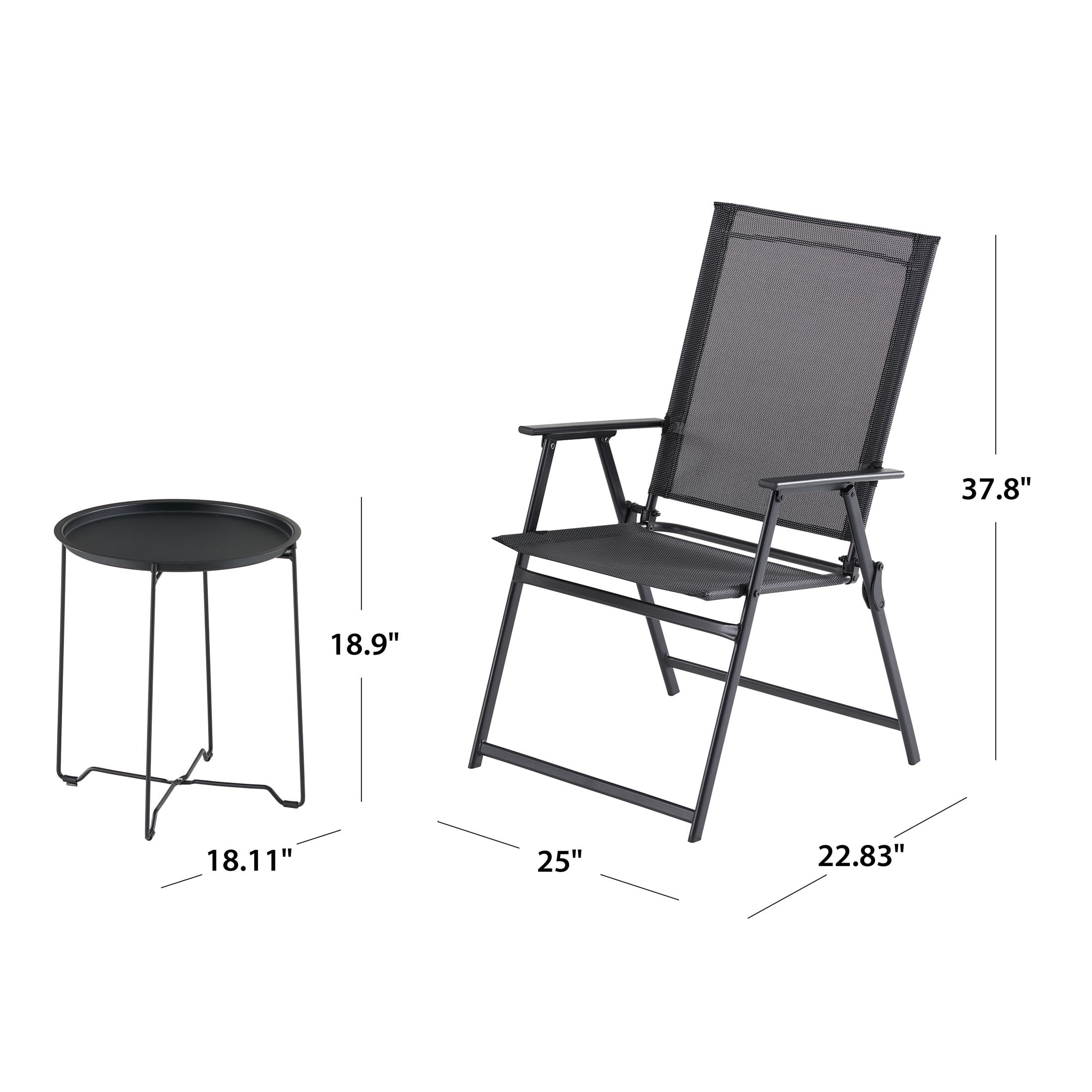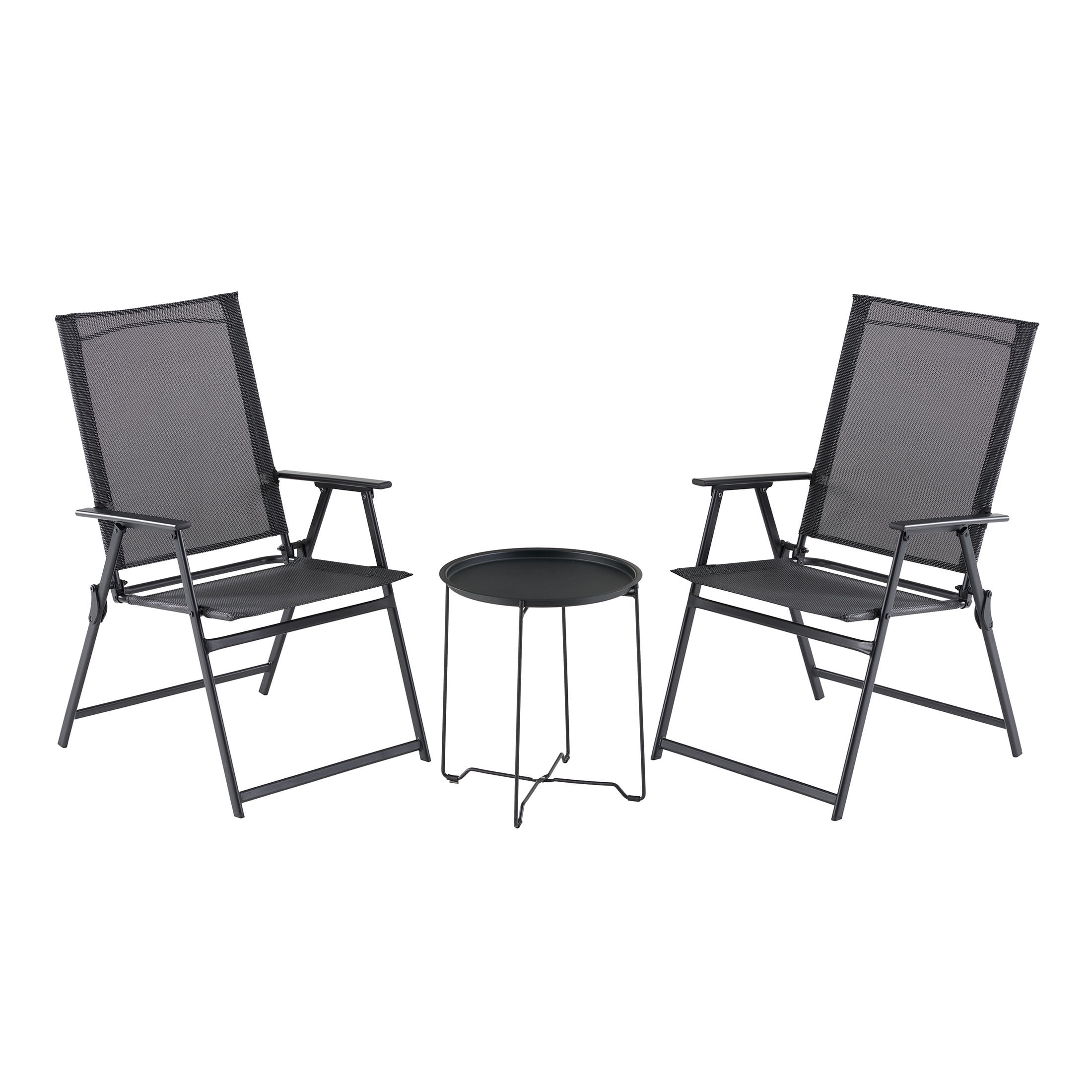 Mainstays Greyson 3-Piece Steel and Sling Folding Outdoor Patio Bistro Set, Black