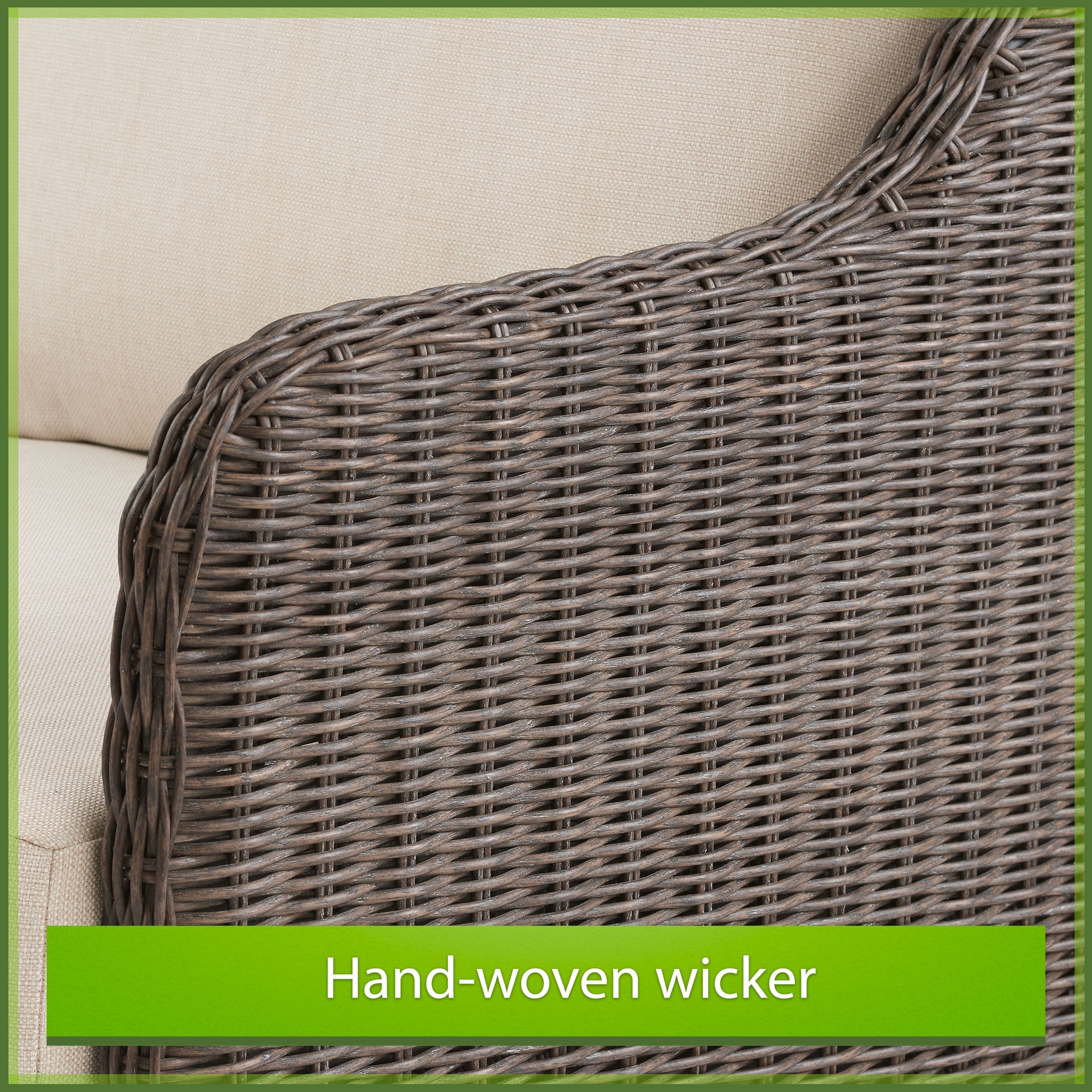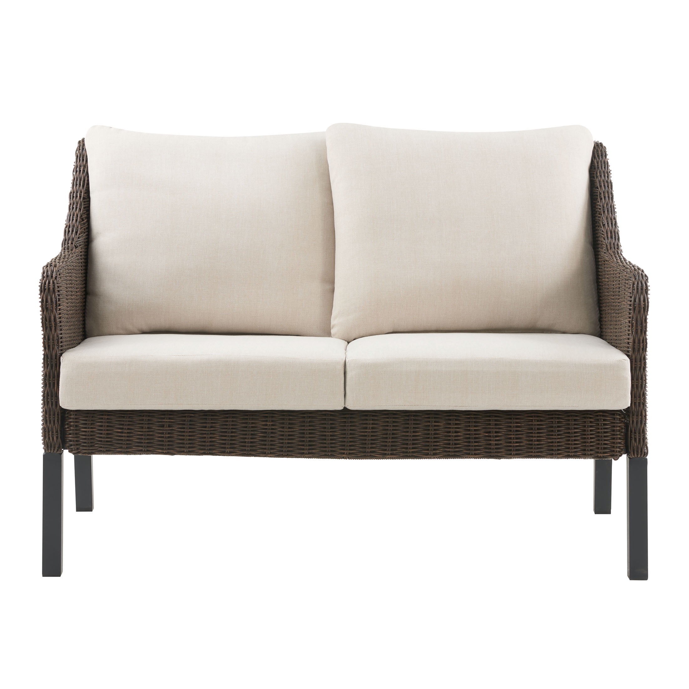 Mainstays Henderson 4-Piece Outdoor Conversation Set, Beige Ideal for defining your outdoor lounge area Crafted for entertaining Includes a cushioned loveseat, 2 cushioned chairs, a metal embossed top coffee table and tools for easy assembly All-season, all-weather ensemble is built to withstand the elements with espresso, hand-woven wicker, heavy-duty steel frames, and light beige cushions featuring weather-resistant Olefin fabric Designed with classic style and durability to complement any outdoor setting for years of enjoyment Materials: Steel, polyethylene wicker, Olefin fabric, polyester fiber batting Dimensions of each chair: 26.7″W x30.25″D x 33″H Dimensions of loveseat: 48.6″W x 30.25″D x 33″H Dimensions of coffee table: 37.6″L x 21.3″Wx 19.5″H Each chair supports up to 250 lbs, loveseat supports up to 500 lbs Care: Wipe clean with damp cloth, air dry, do not use bleach or solvent Model number # MSS436241891009 Arrives in 1 box