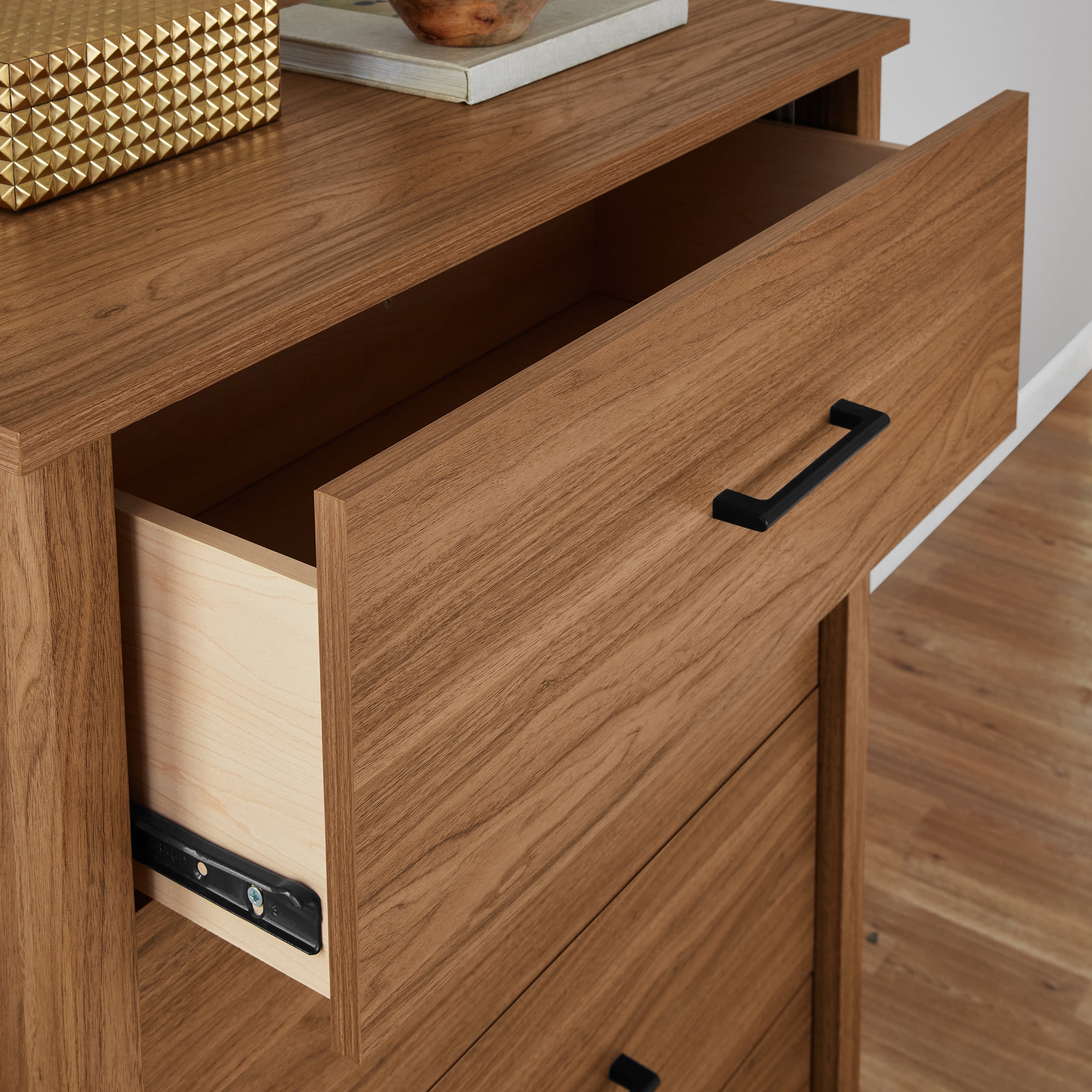 Mainstays Hillside 4-Drawer Dresser, Warm Walnut Finish