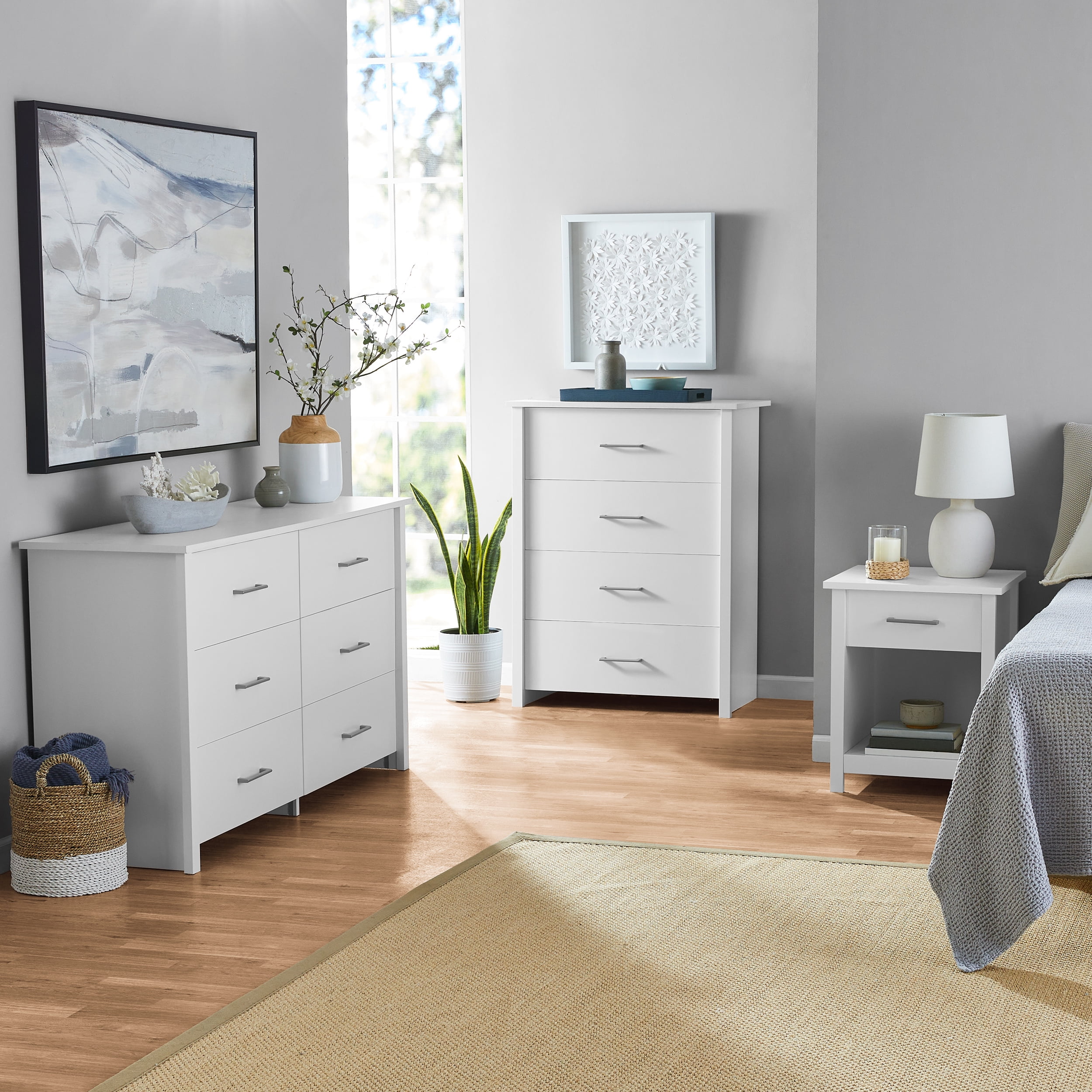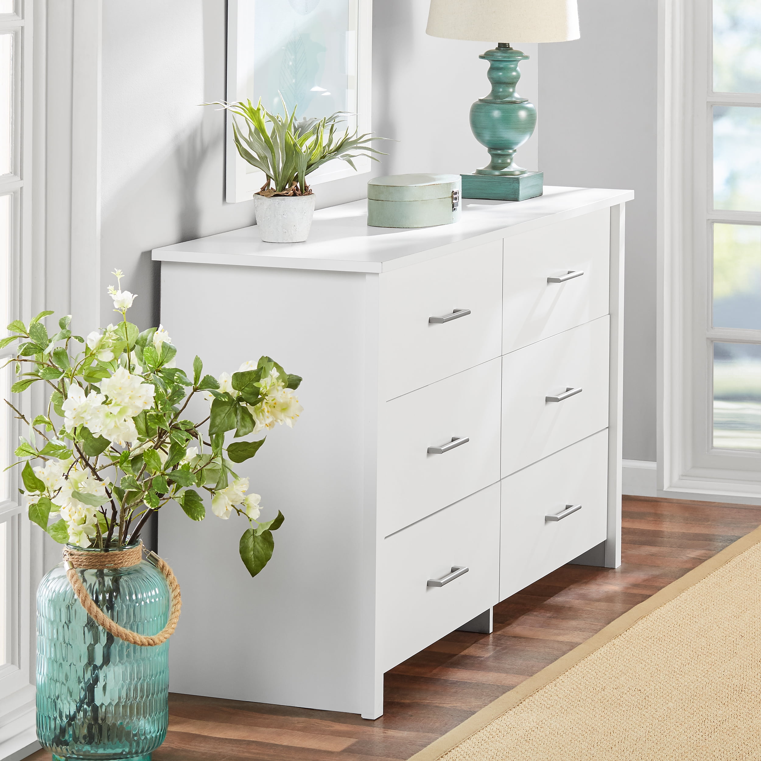 Mainstays Hillside 56.8″ Wide 6-Drawer Dresser, Soft White Finish