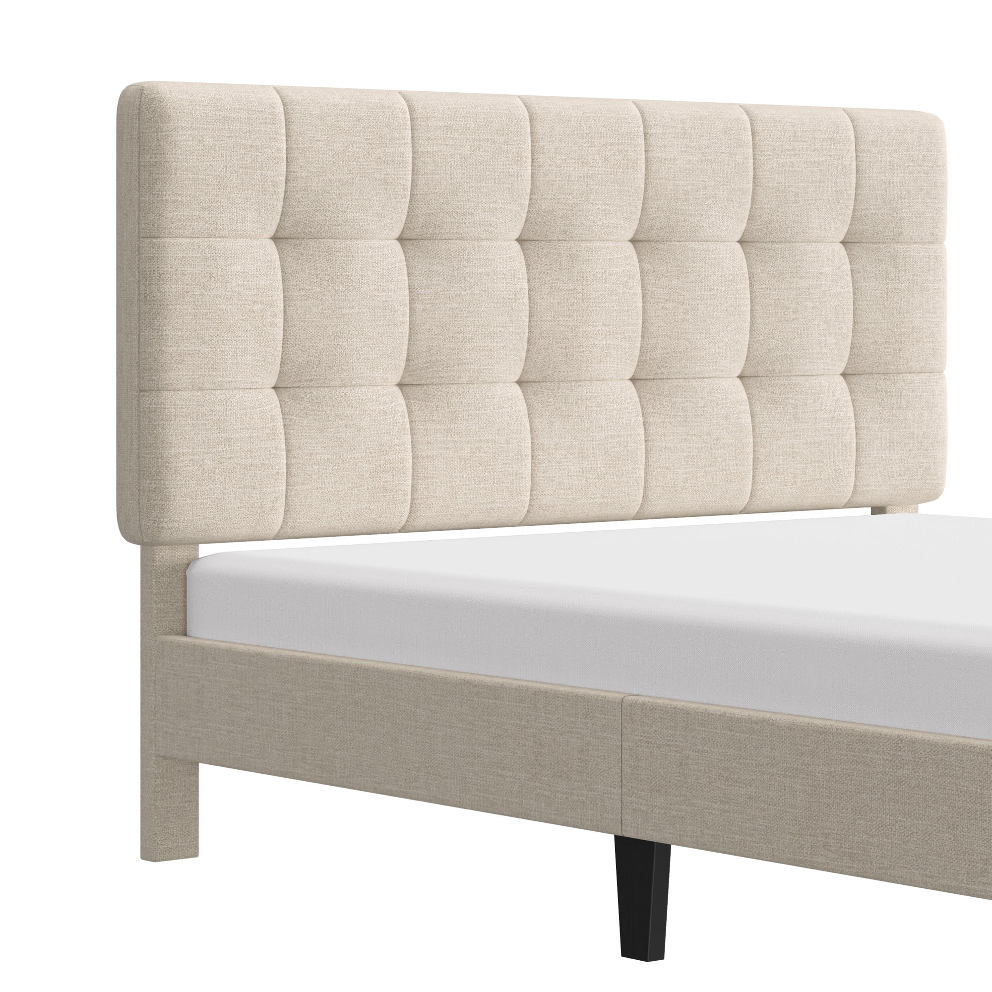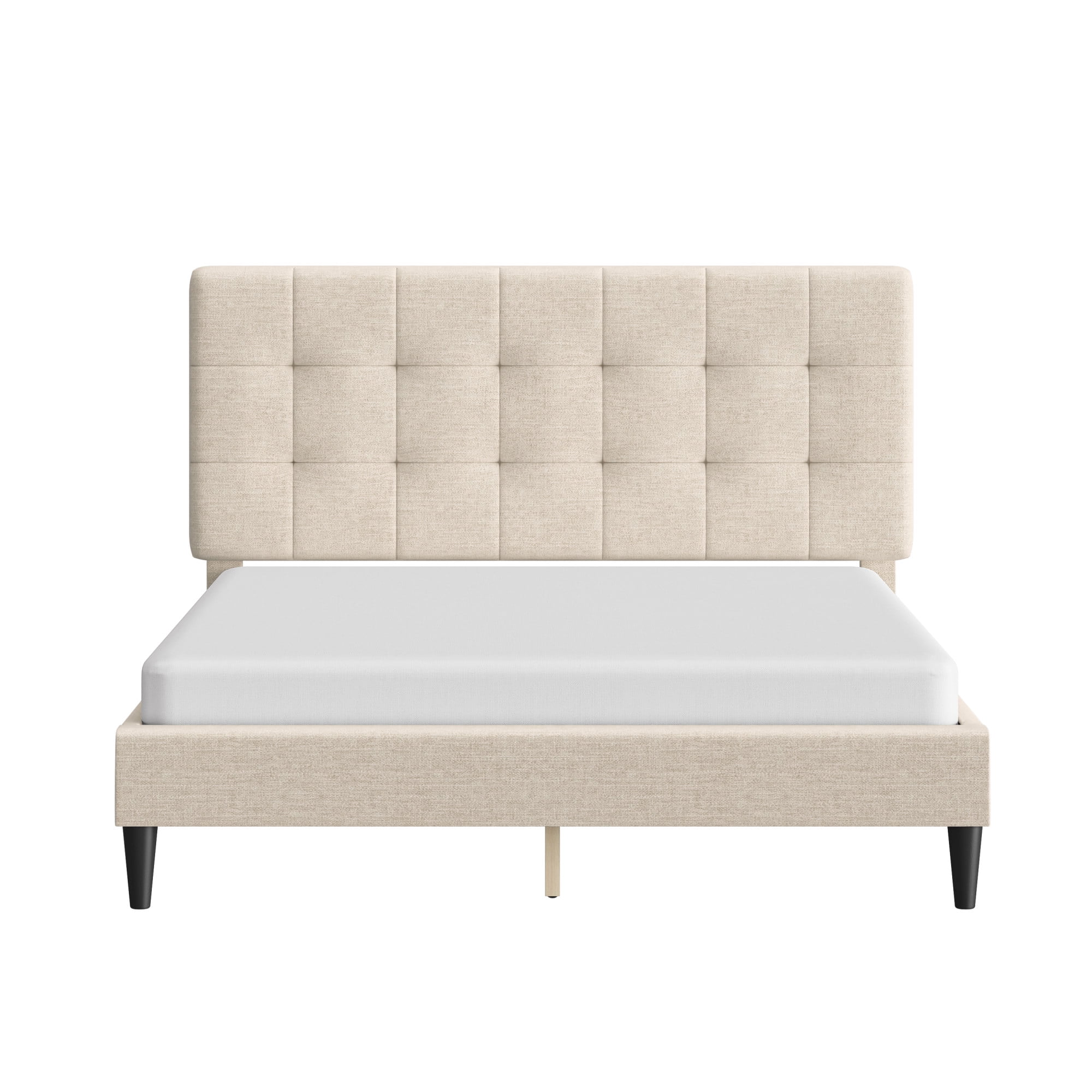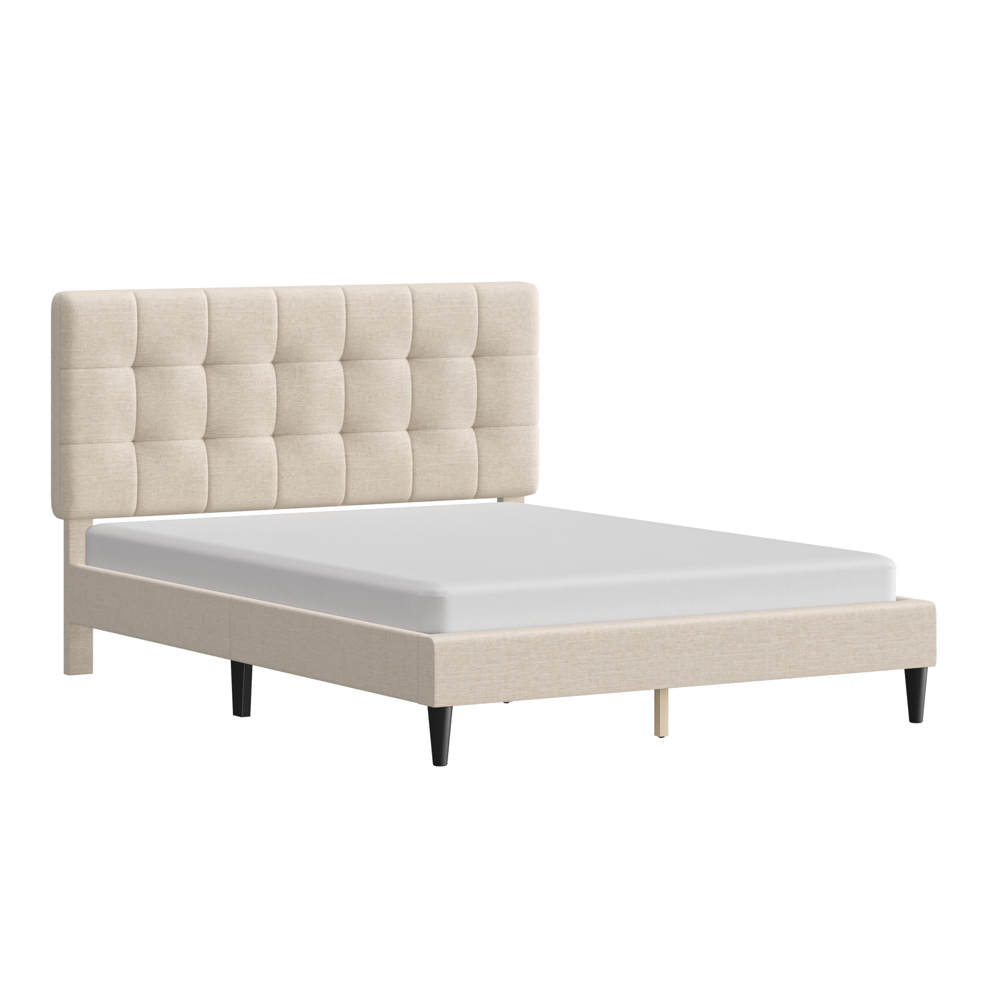 Mainstays Hillside Square Tufted Upholstered Full Platform Bed, Ivory Fabric