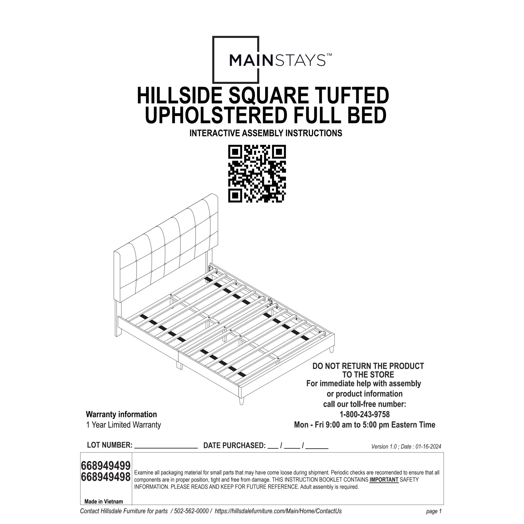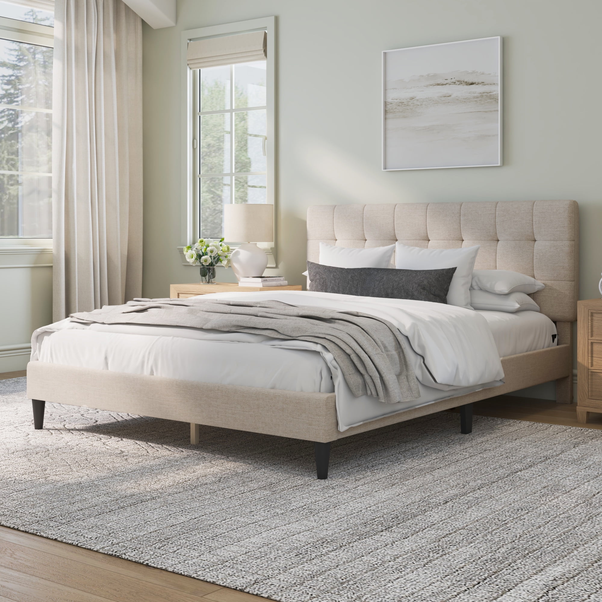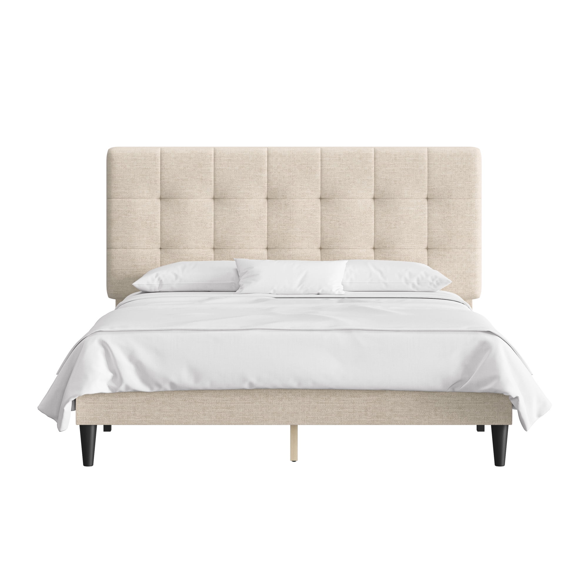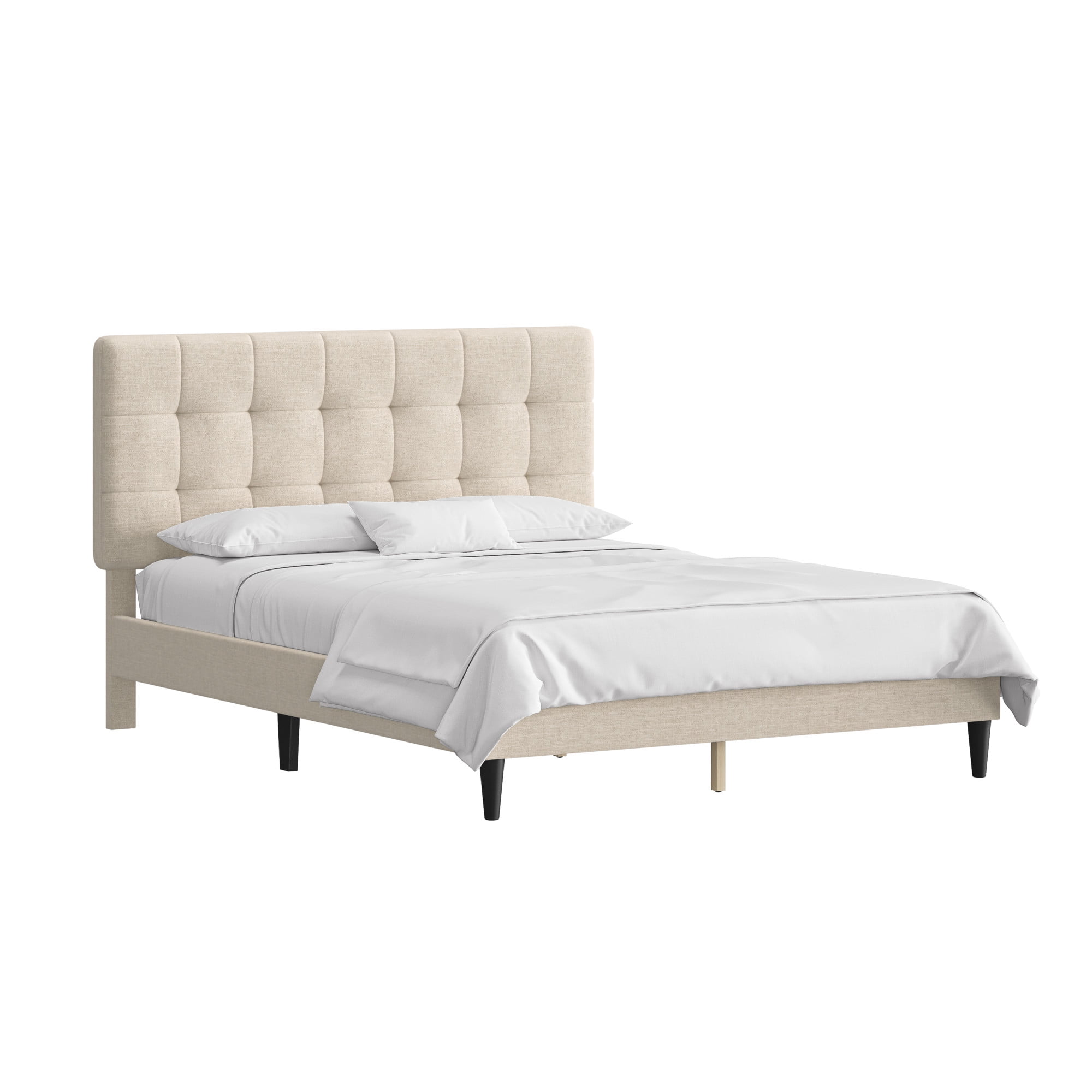 Mainstays Hillside Square Tufted Upholstered Full Platform Bed, Ivory Fabric